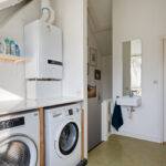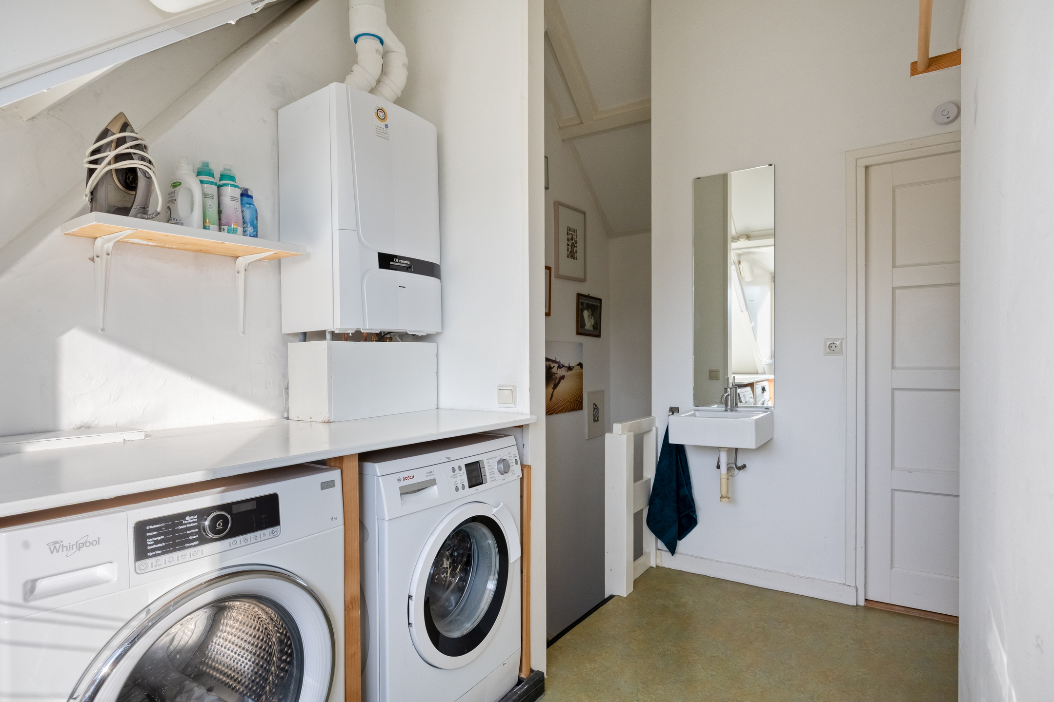 De tweede verdieping heeft een praktische ruime voorzolder met aansluitingen voor wasmachine, droger, wastafel en de (nieuwe) c.v.-combi-ketel. Daarnaast zijn er twee royale en