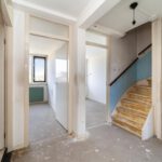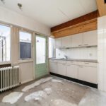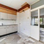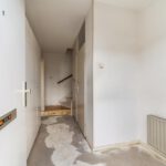 Entree, ruime hal met de meterkast, praktische bergkasten en het toilet met fonteintje. De speelse L-vormige woonkamer met half open keuken zonder keukenblok en vanuit de woonkamer is er toegang…