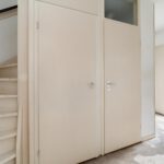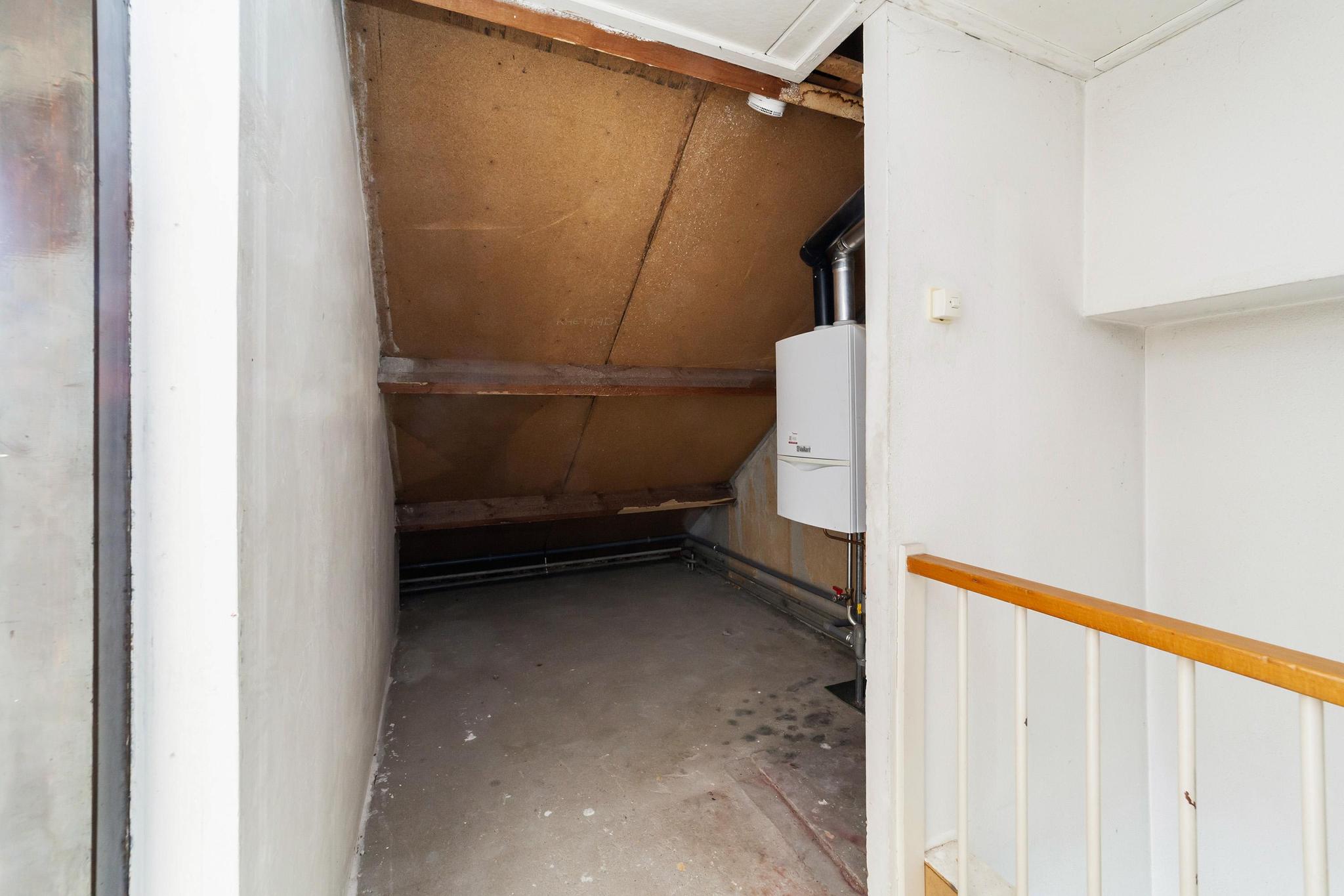 Overloop met de opstelling van de wasapparatuur, de cv-ketel en bergmogelijkheden en de 5e slaapkamer.