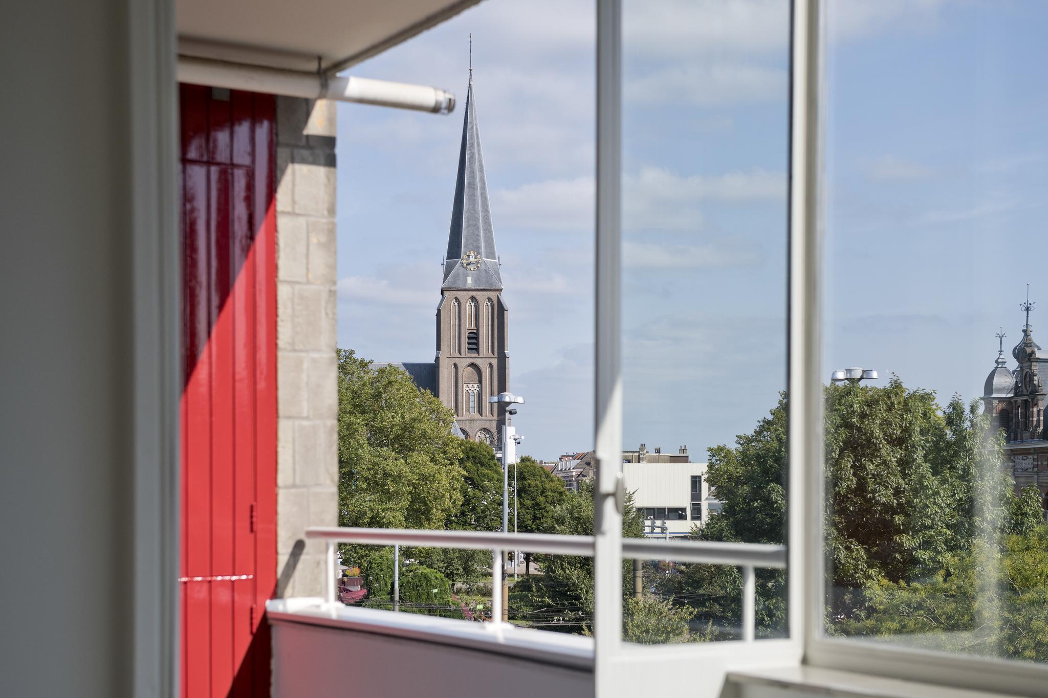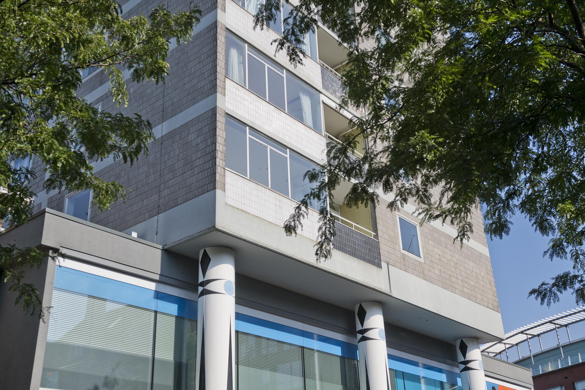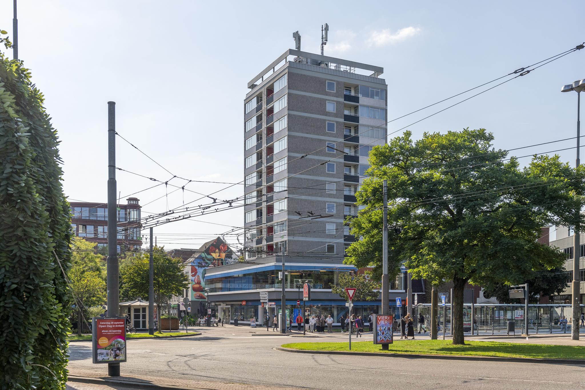 Midden in de stad, ingang city centrum, kun je niet centraler wonen dan in dit appartementengebouw op de hoek van de Looierstraat en de Roggestraat. Het gebouw uit 1956 is een gemeentelijk monument. Ondanks de zeer centrale ligging woon je er rustig en geniet je van alle privacy. Het beste van twee werelden dus!