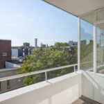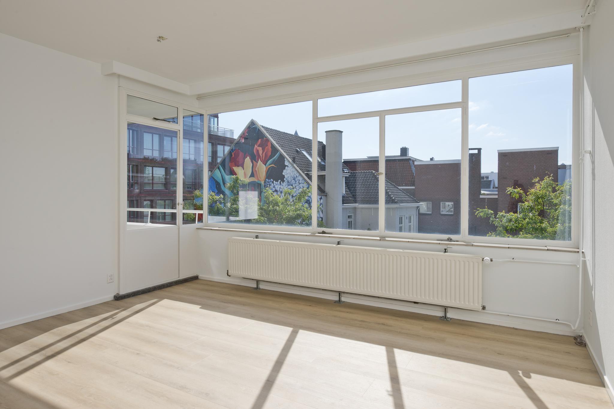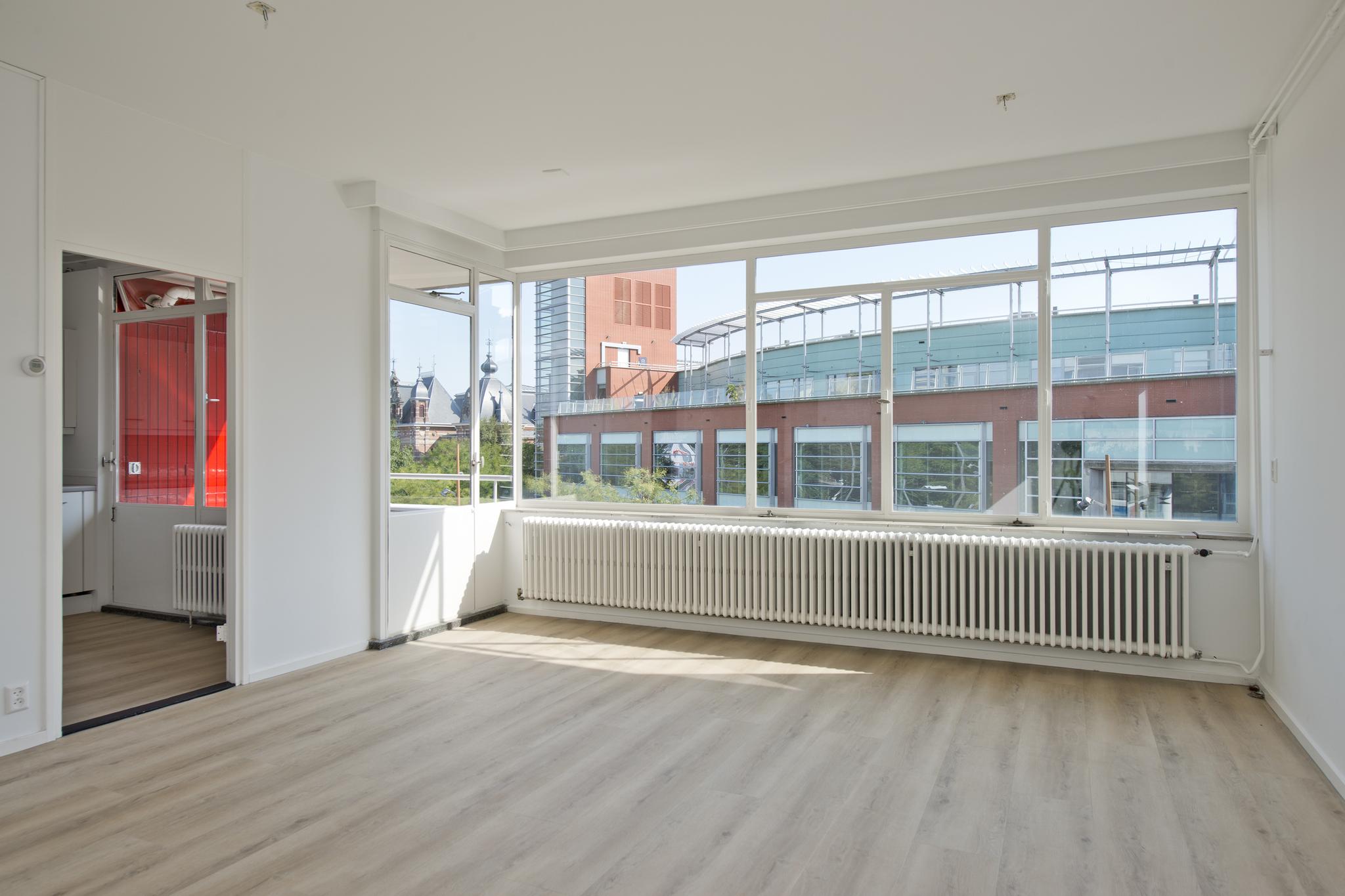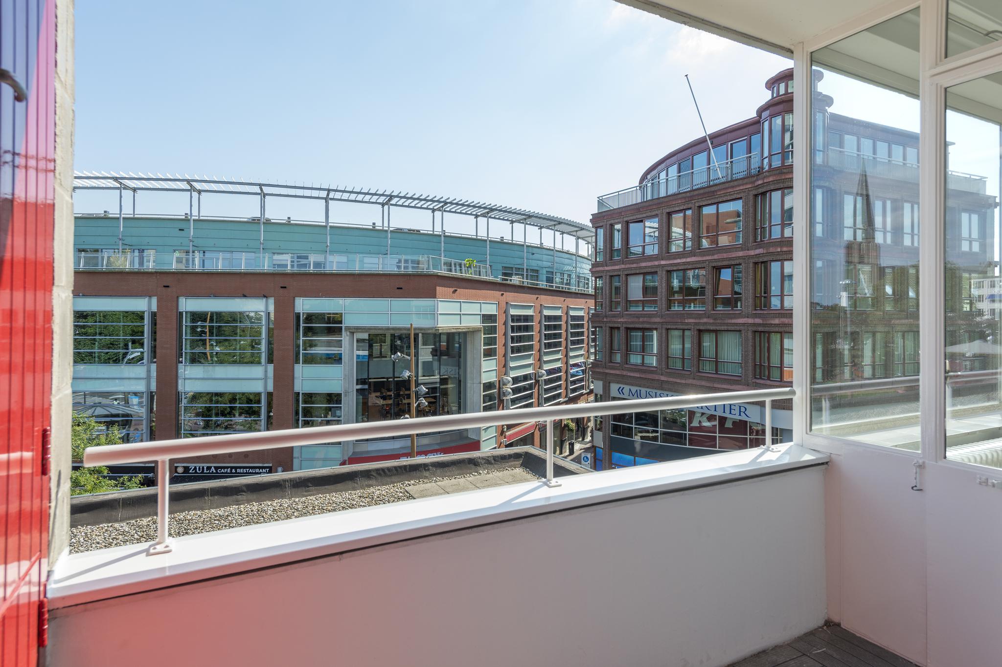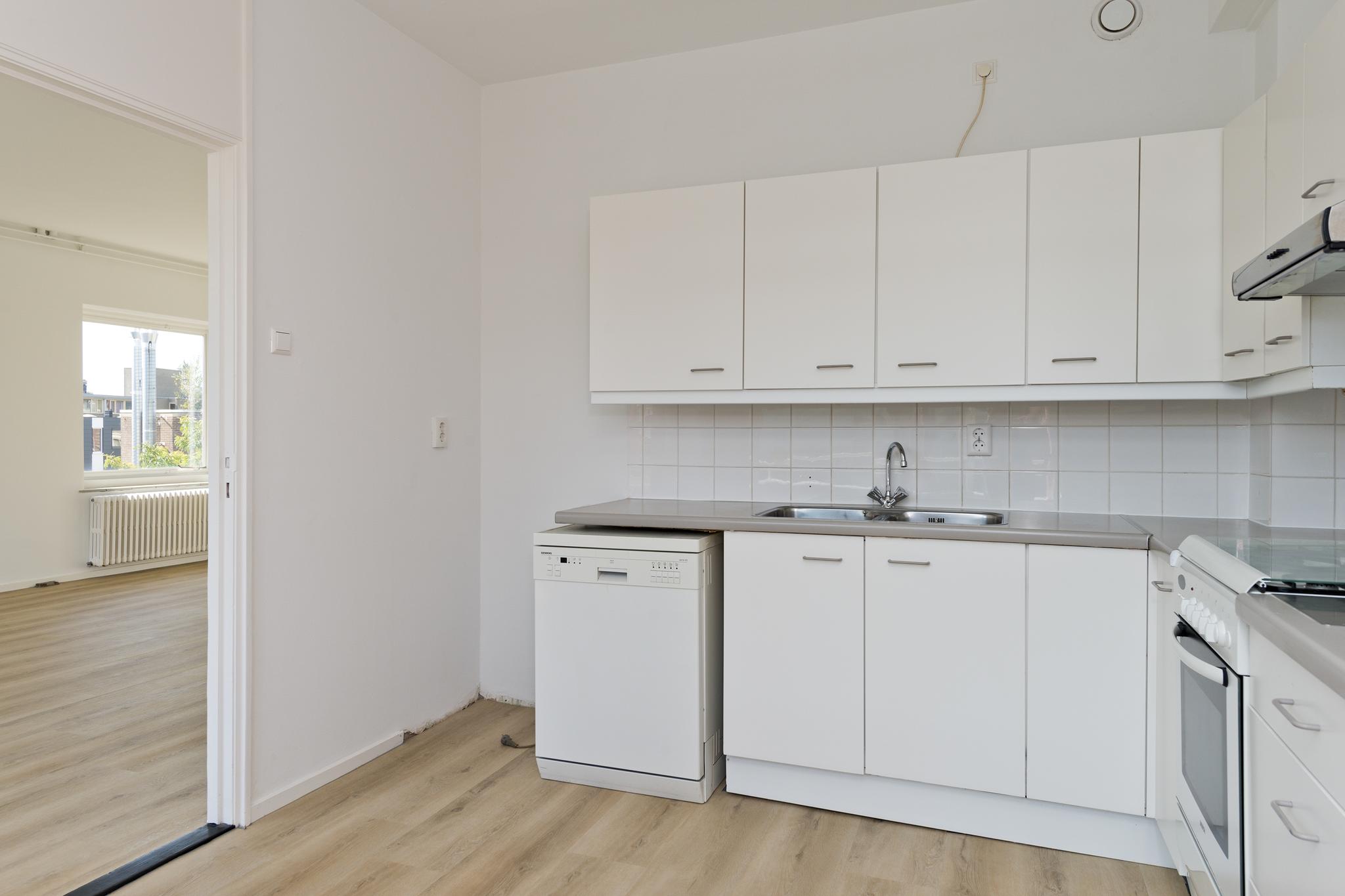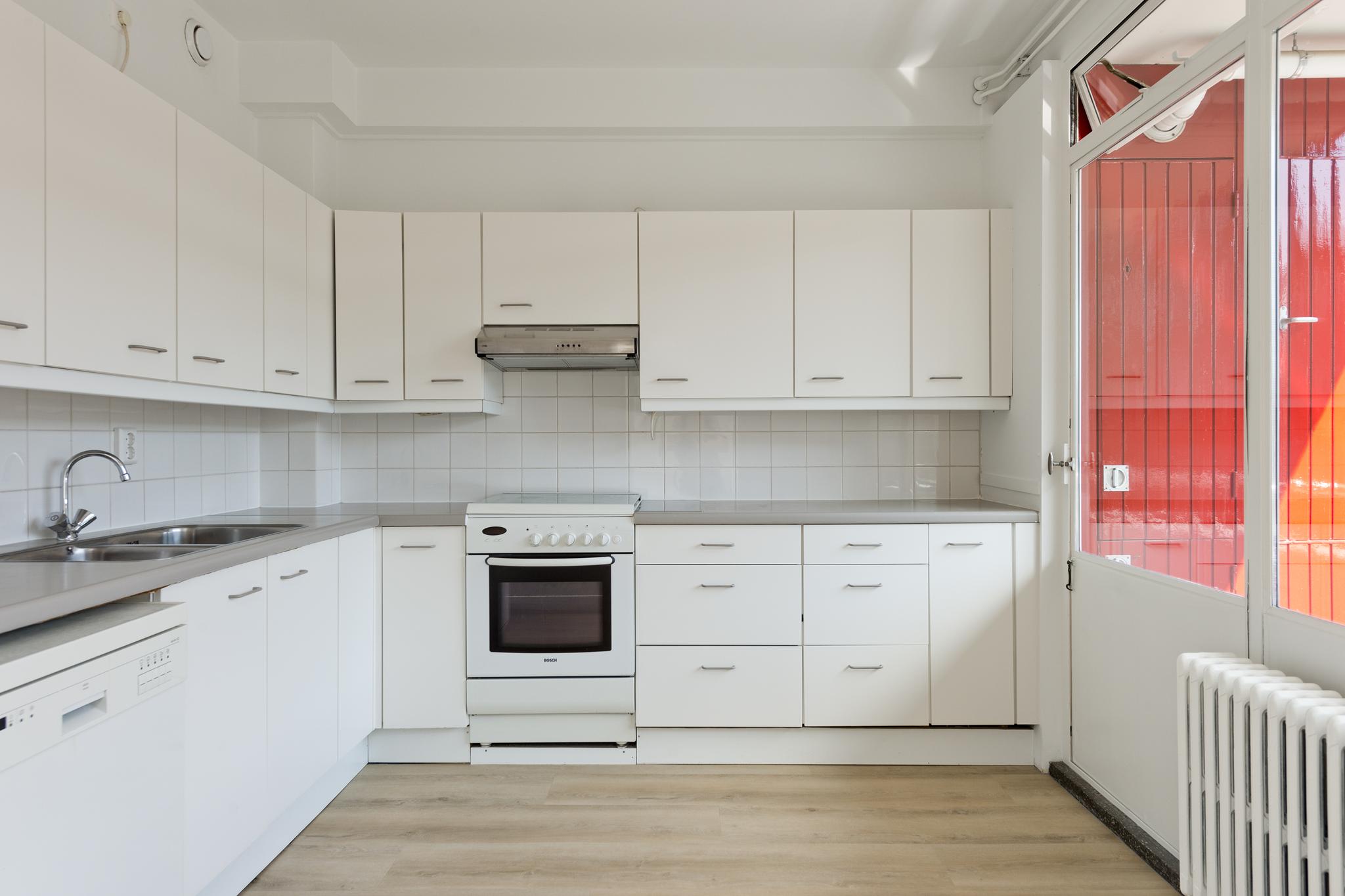 De keuken heeft een net keukenblok met apparatuur. Een deur leidt naar het inpandige balkon. De woonkamer, naast de keuken, is prachtig licht dankzij grote ramen en een glazen deur naar het balkon. Vanuit zowel de woonkamer als het balkon geniet je van het uitzicht van het stadscentrum van Arnhem.