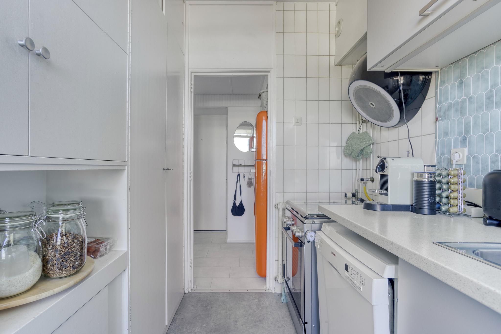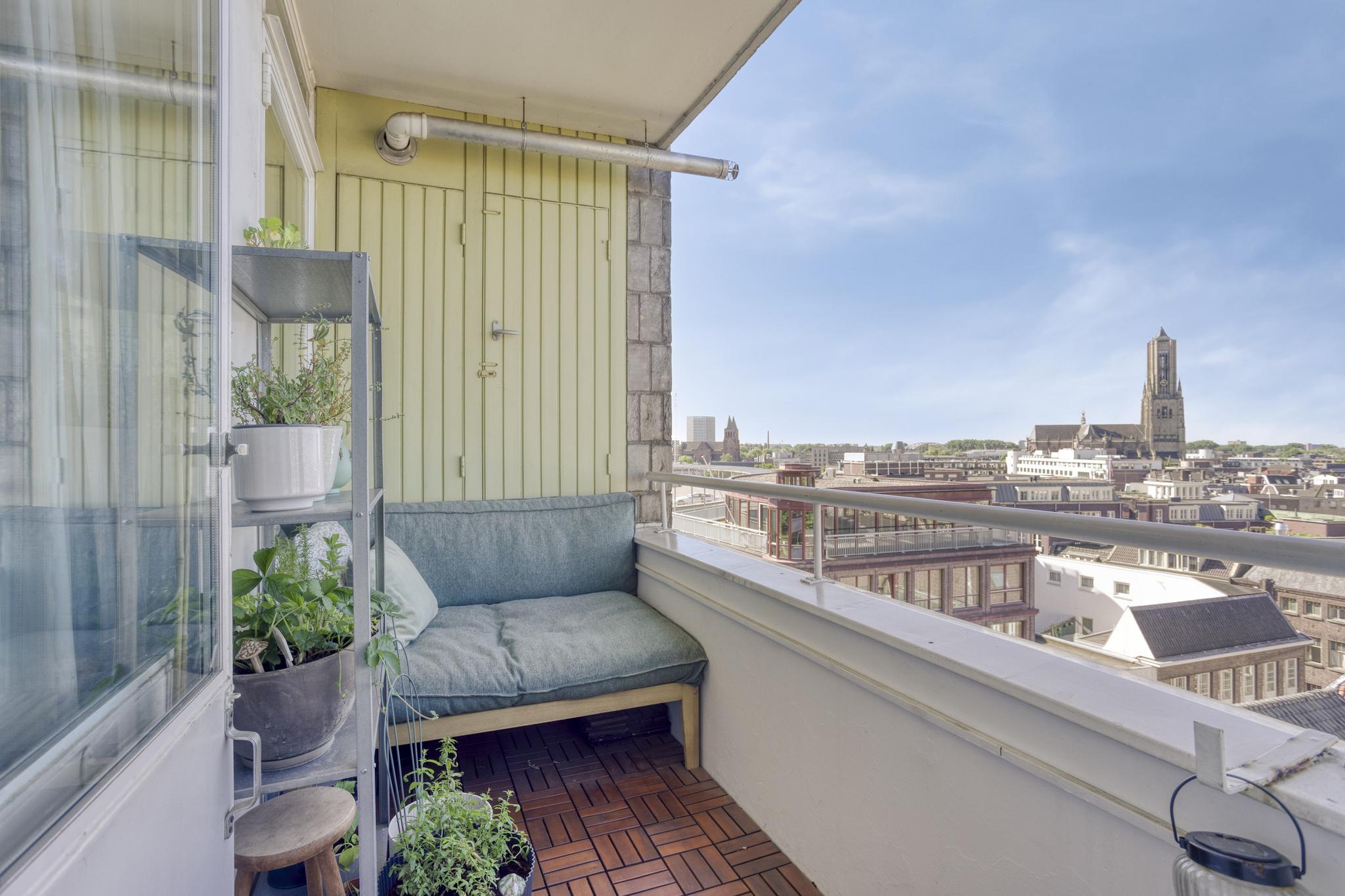 Via de nette centrale entree met postvakken, trap en lift bereik je de 7e verdieping waar de woning zich bevindt. Bij binnenkomst in de hal, die toegang geeft tot alle ruimtes, vind je aan de rechterzijde de meterkast, gevolgd door de badkamer met douche, wastafel en toilet. De grote slaapkamer heeft een vaste kastenwand. De woonkamer met veel lichtinval geeft toegang tot de loggia welke is gelegen op de zonzijde, deze heeft een balkonkast met cv ketel. De keuken heeft een vaste kastenwand en geeft ook toegang tot de loggia. Vanuit zowel de woonkamer, de keuken als het balkon geniet je van het uitzicht van het stadscentrum van Arnhem. In de hal bevindt zich een ruime bergkast waar plaats is voor de wasmachine