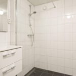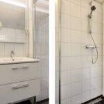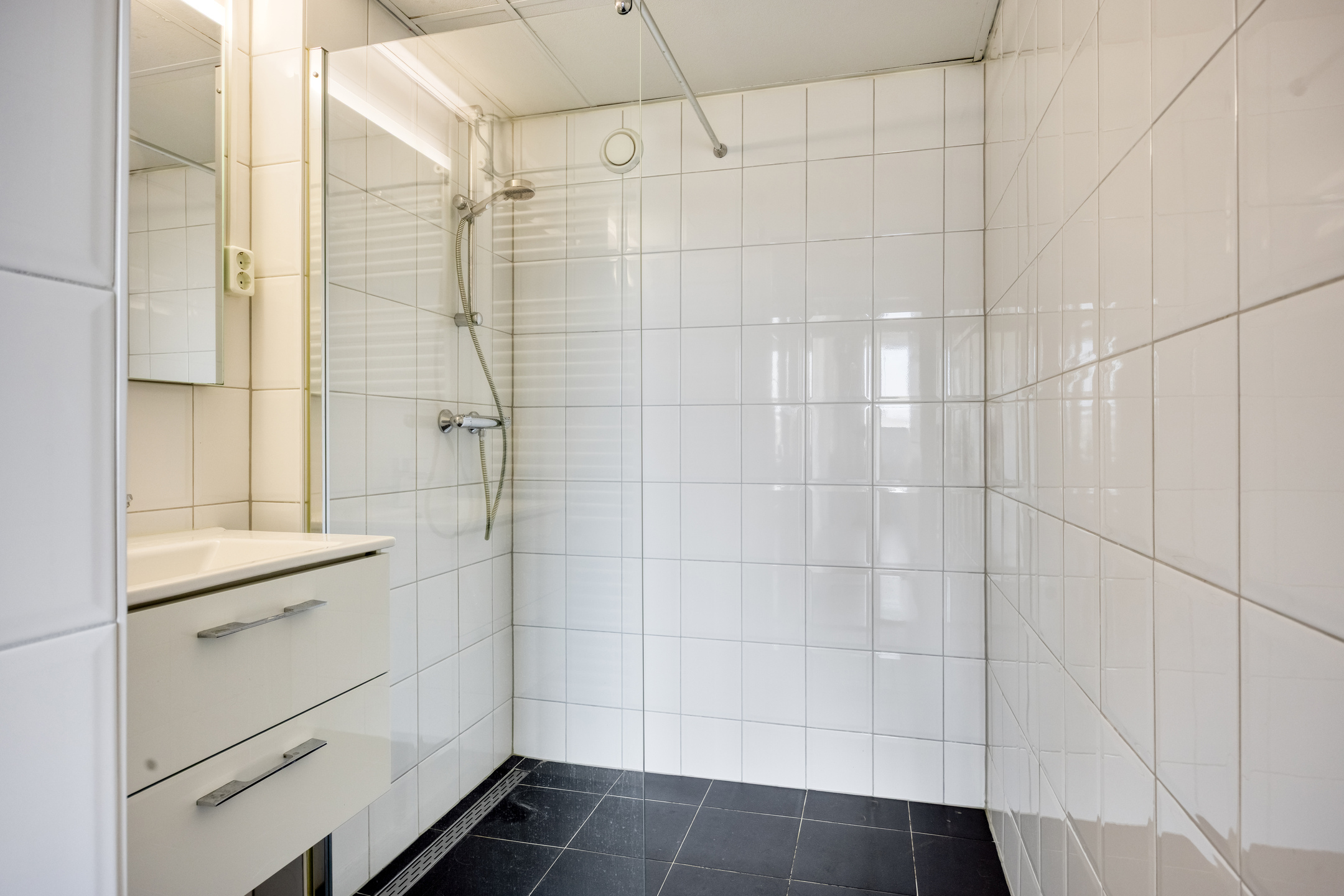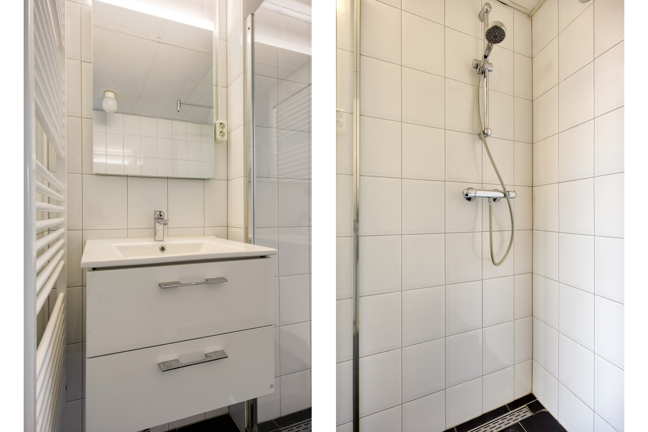 De drie slaapkamers hebben prettige afmetingen van circa 13 m², 18 m² en 9 m² en zijn allen licht door de grote ramen. Twee slaapkamers hebben directe toegang tot het 2e balkon. De badkamer is praktisch ingedeeld, volledig betegeld en voorzien van een douche en wastafel. Daarnaast is er een separaat toilet.