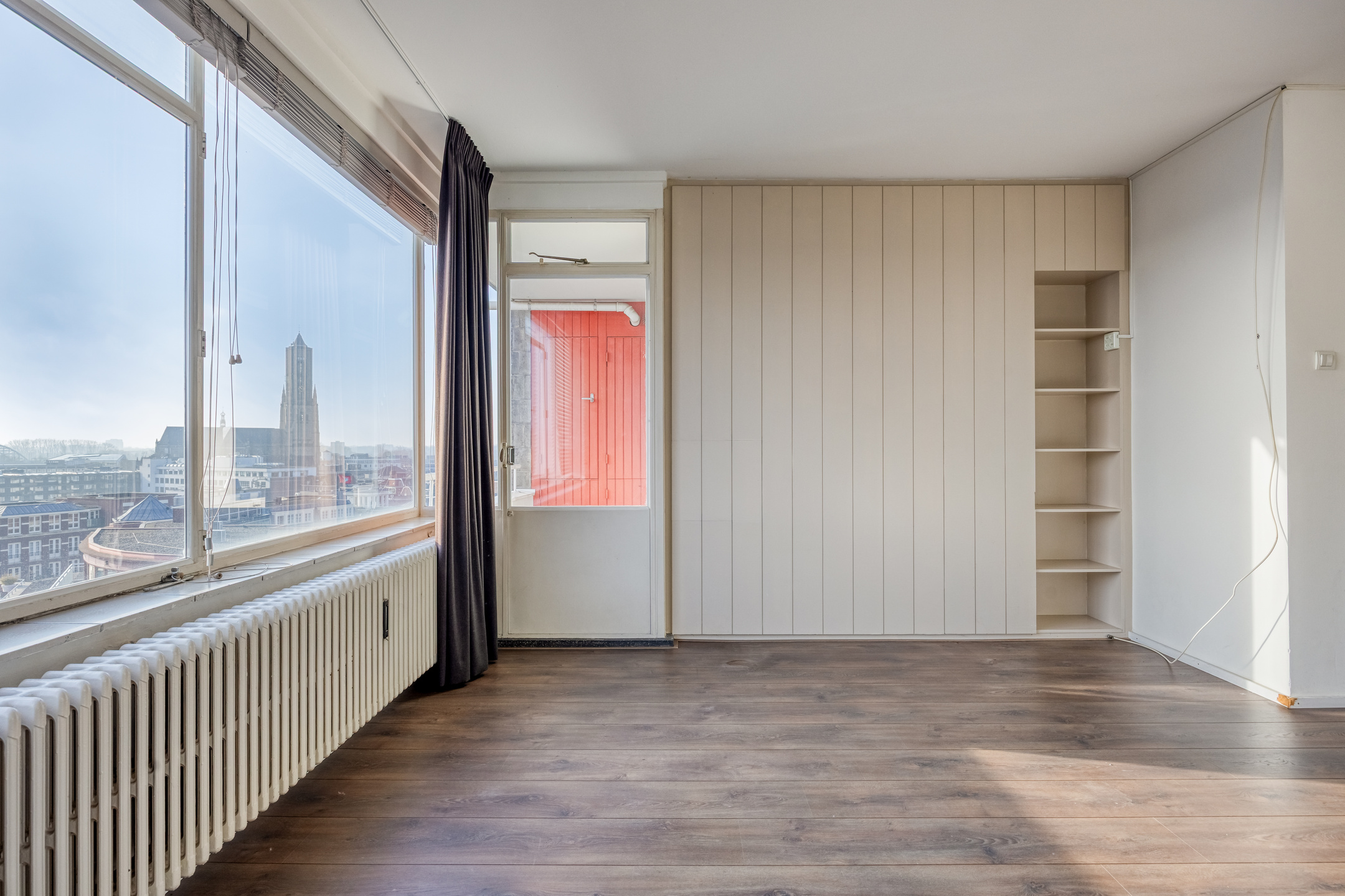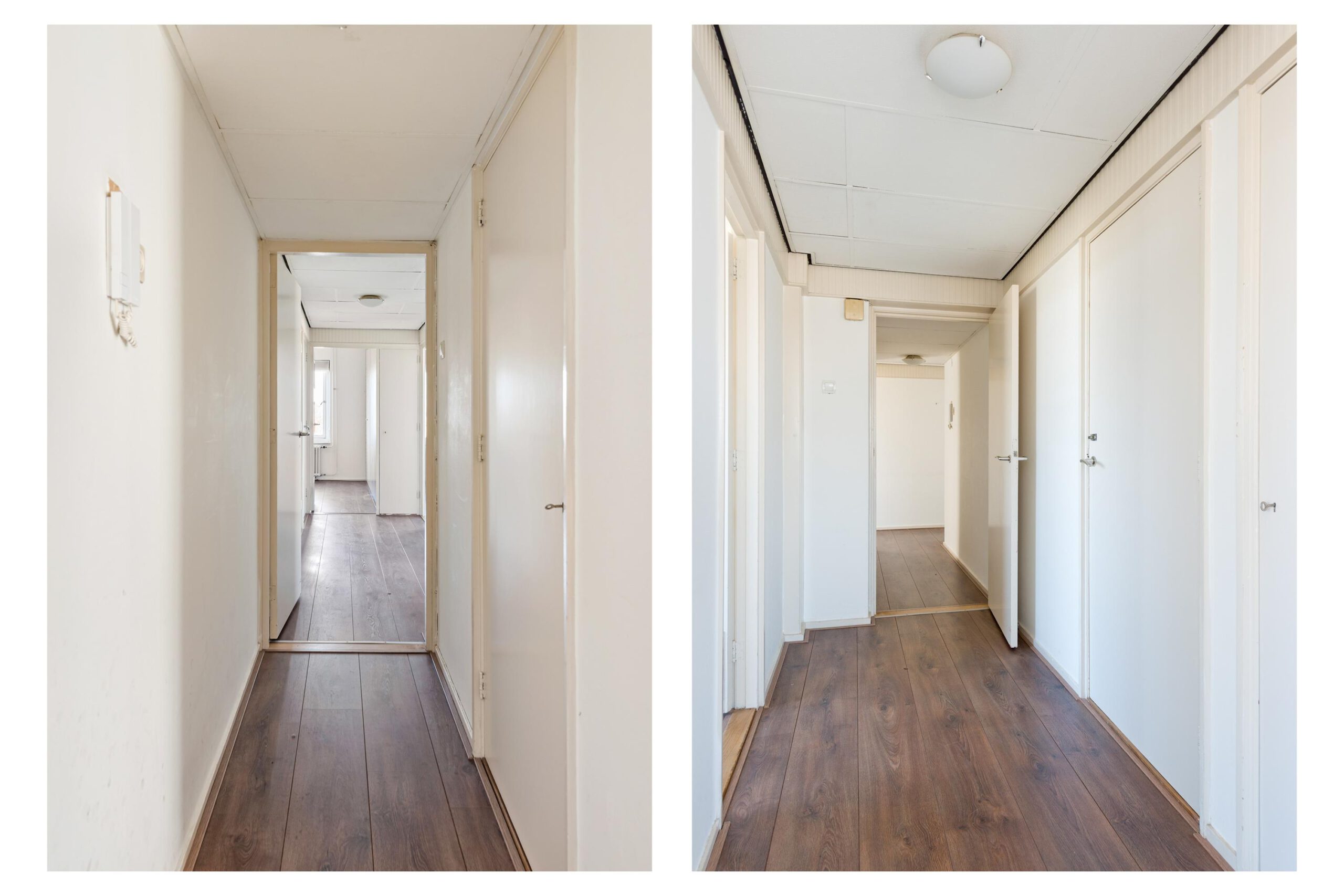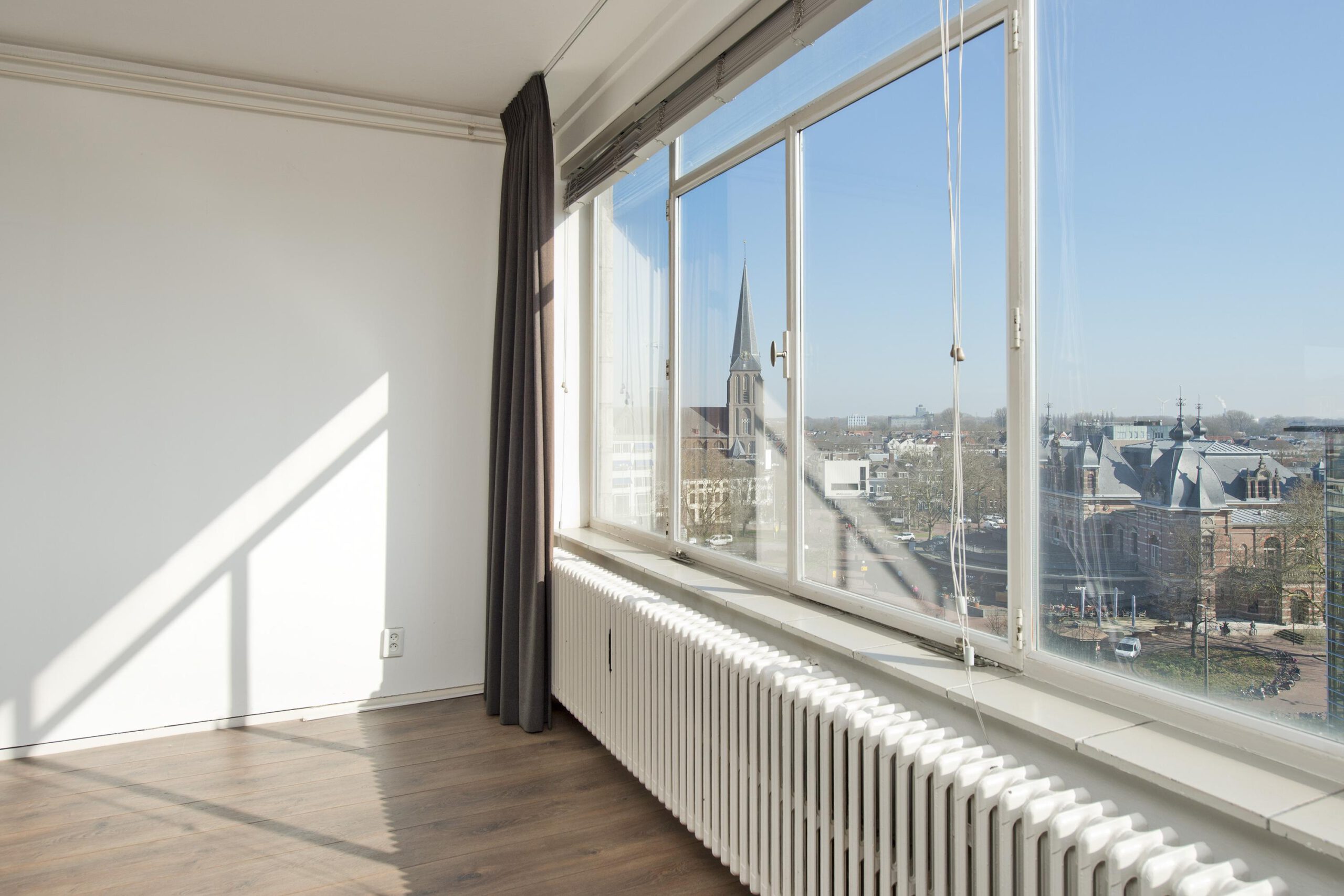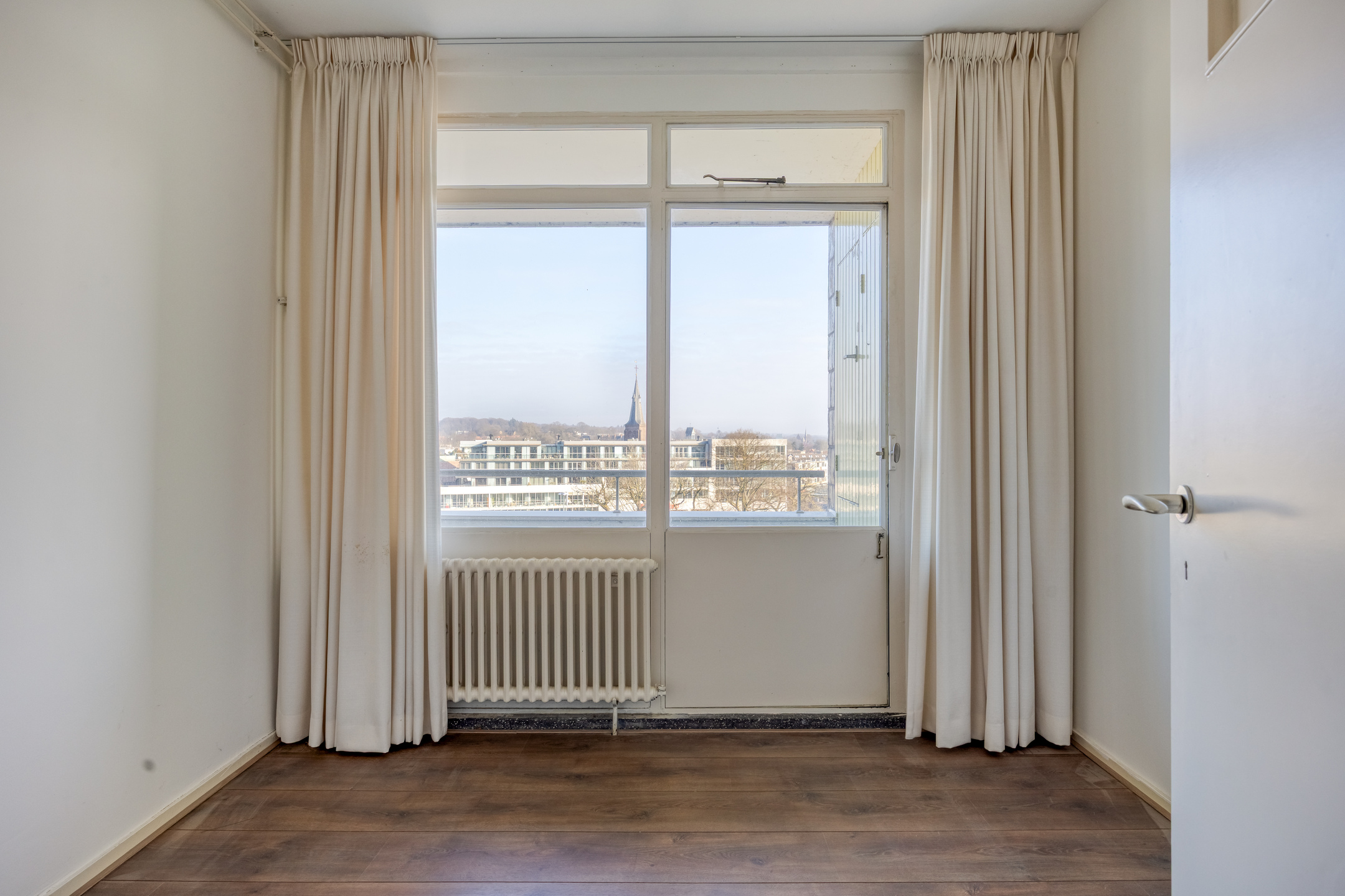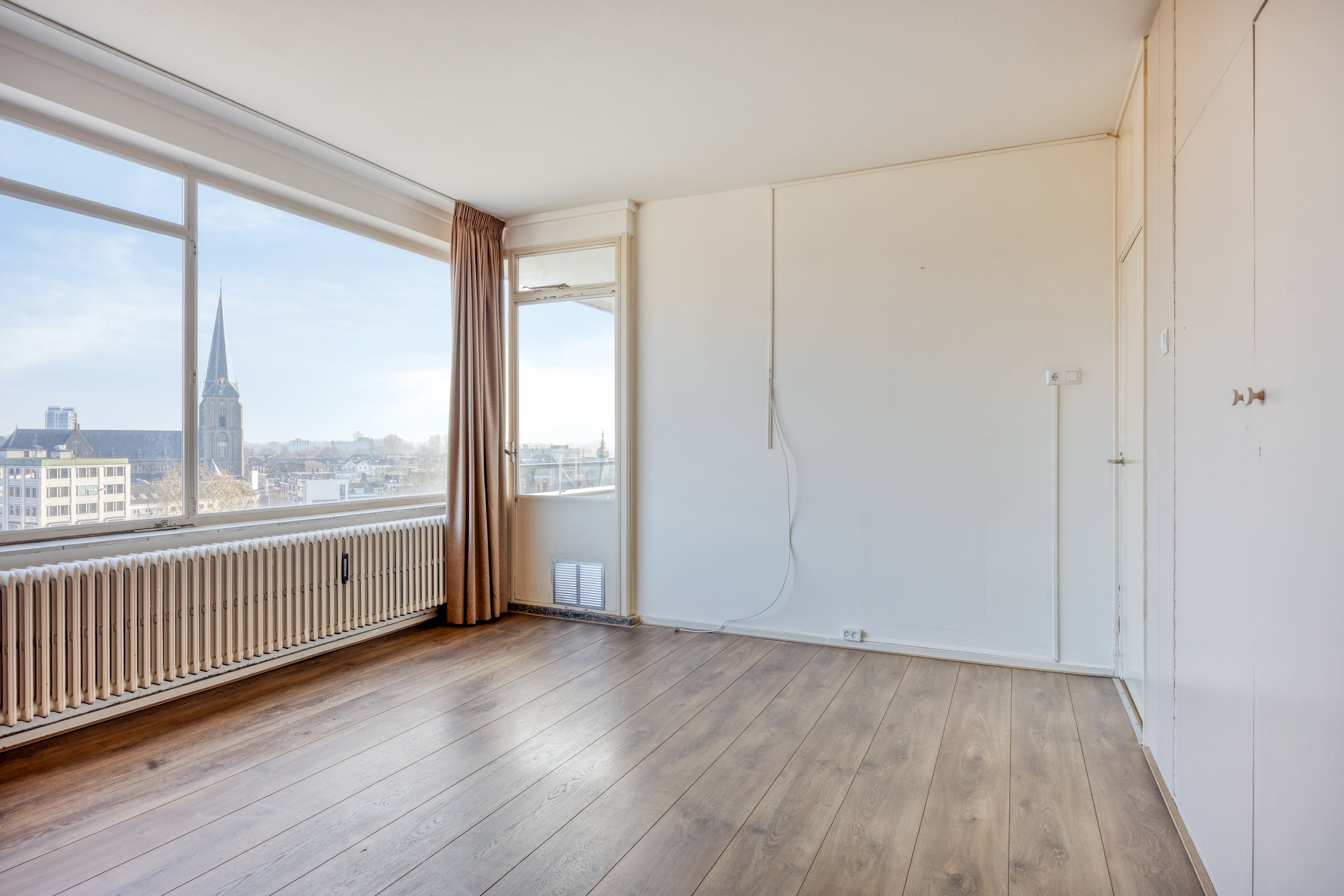 Het appartement heeft een royale woonoppervlakte van circa 106 m² en beschikt over drie volwaardige slaapkamers. Via de verzorgde centrale entree met postvakken, trap en lift bereik je de 8e verdieping, waar het appartement is gelegen.