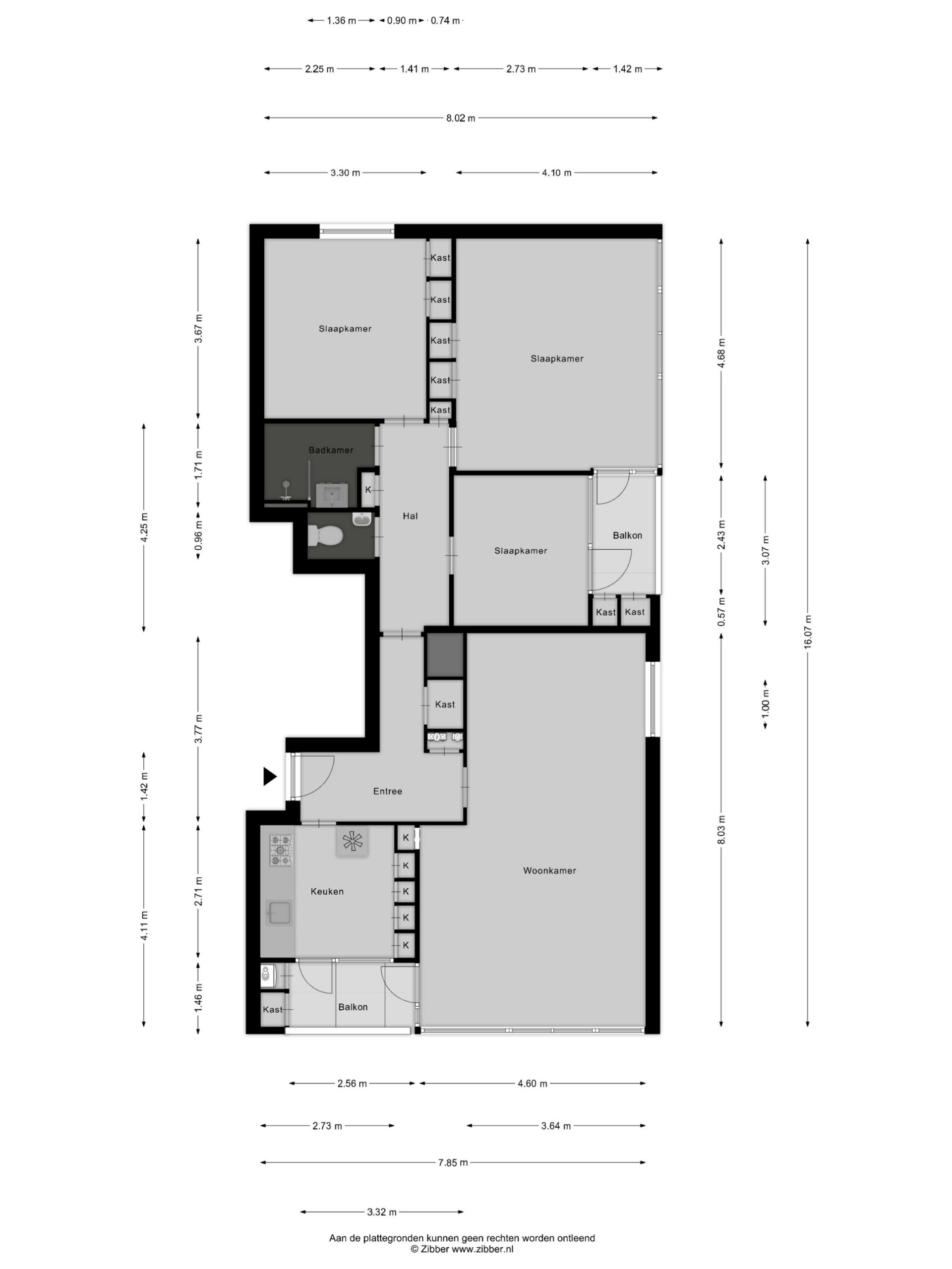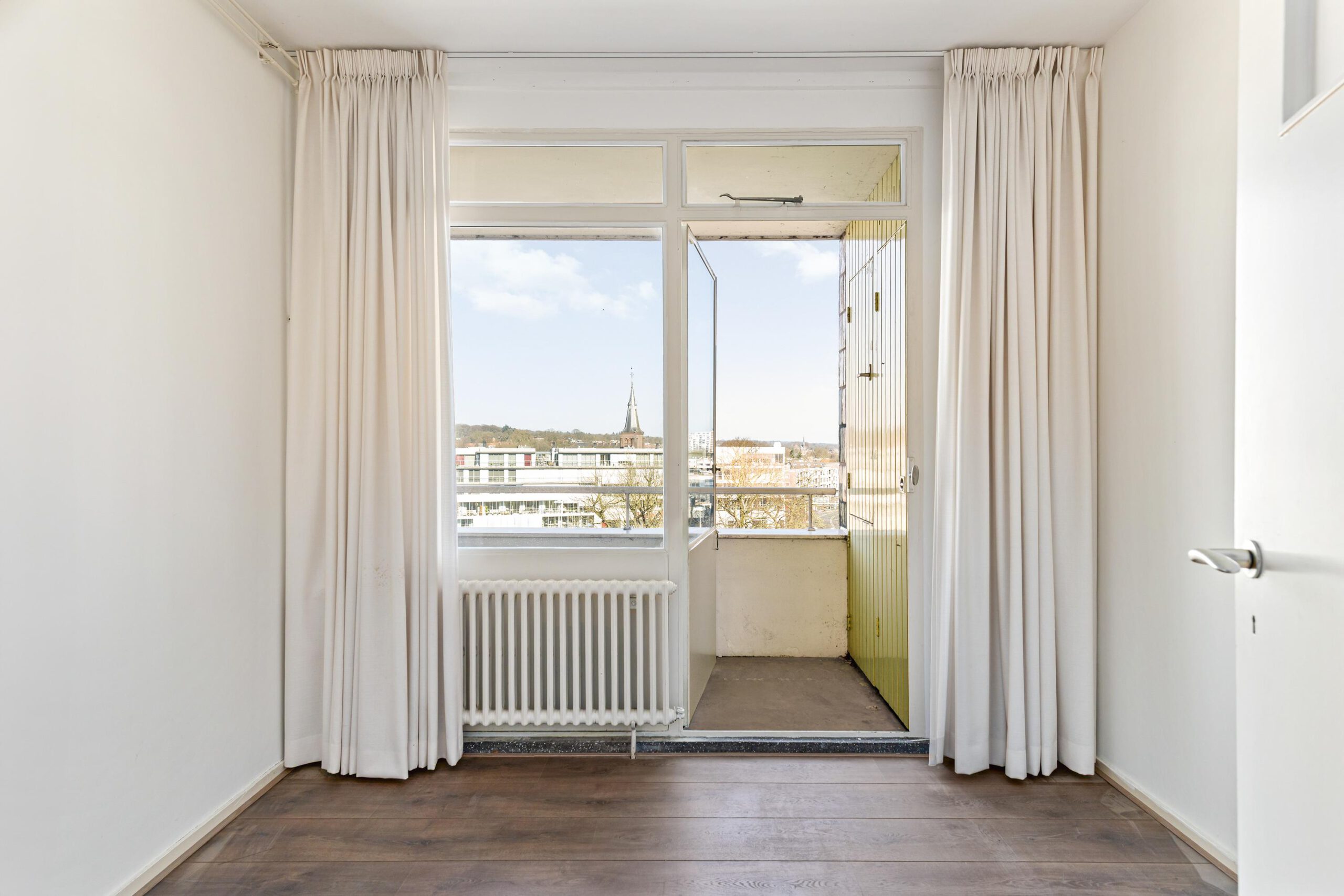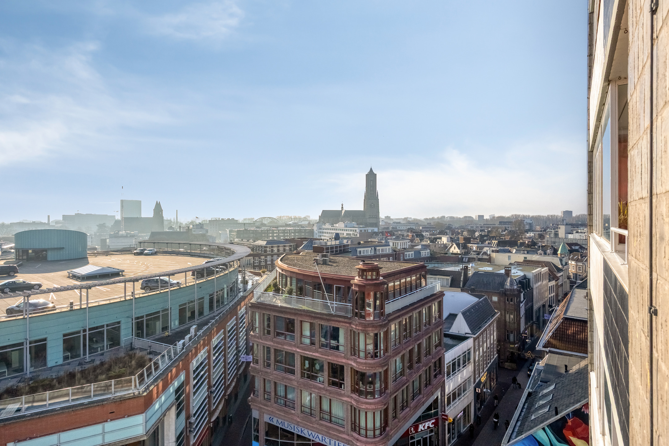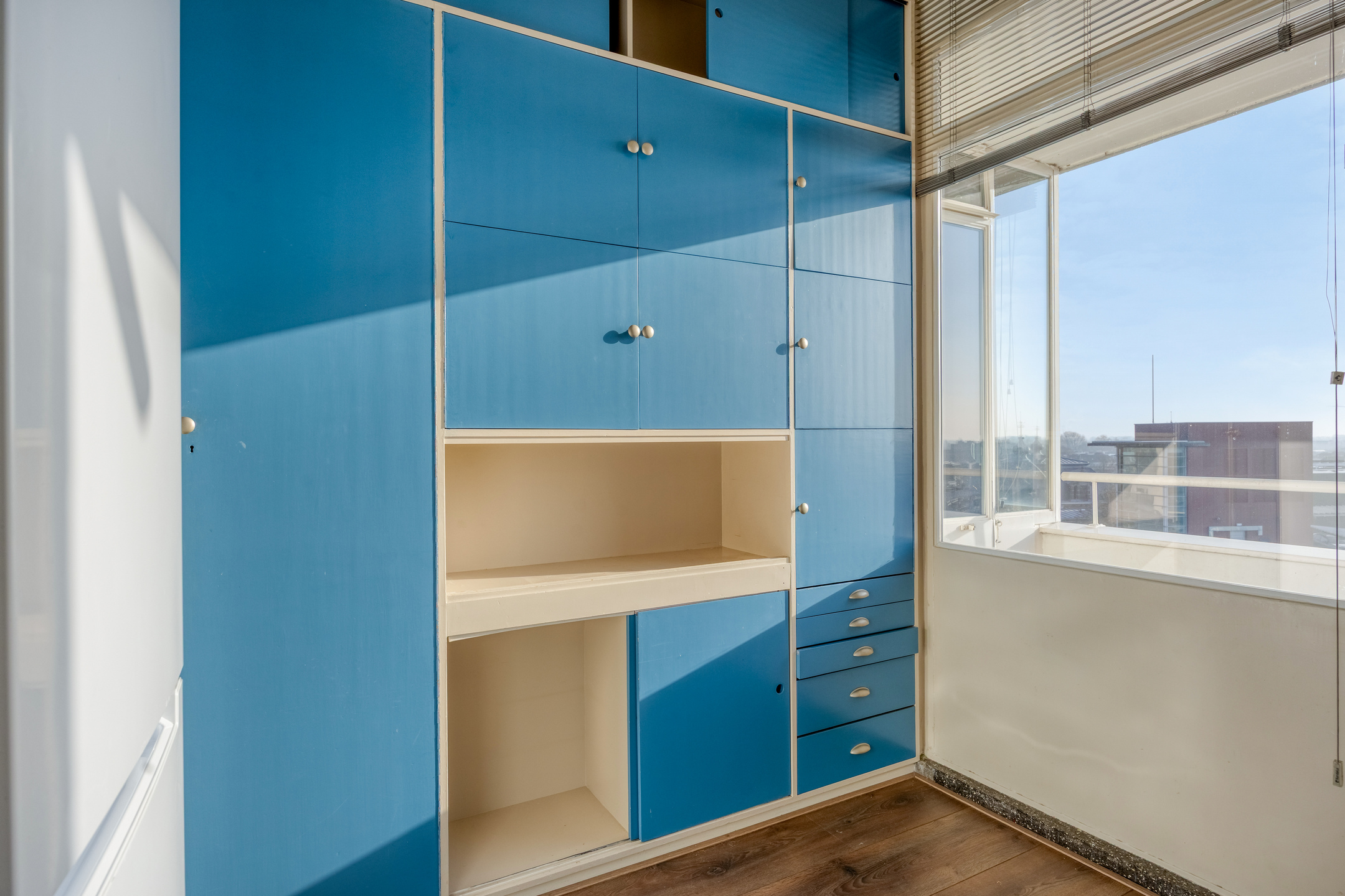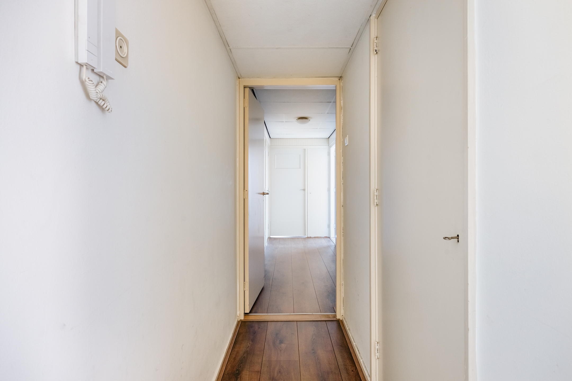 Het appartement heeft een royale woonoppervlakte van circa 106 m² en beschikt over drie volwaardige slaapkamers. Via de verzorgde centrale entree met postvakken, trap en lift bereik je de 8e verdieping, waar het appartement is gelegen.