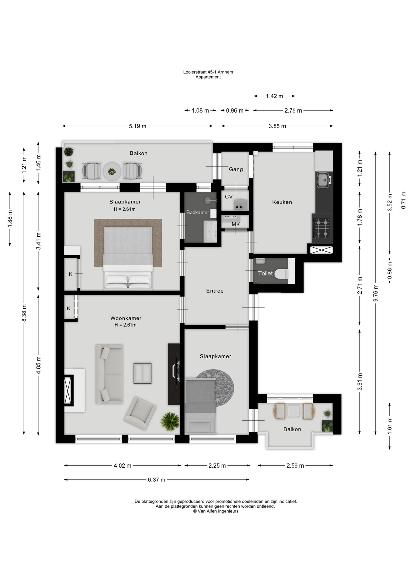 - Twee balkons, waarvan 1 gelegen op het zuiden