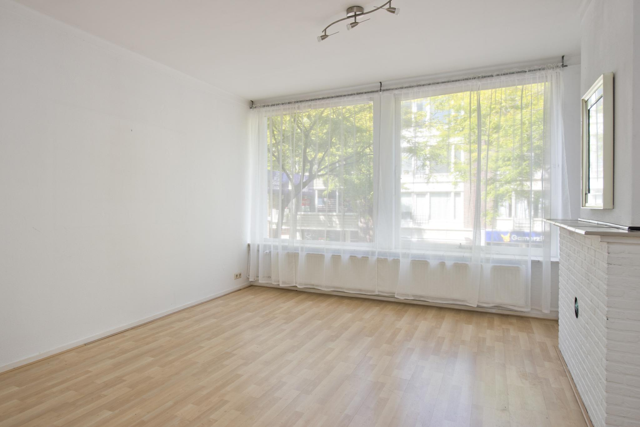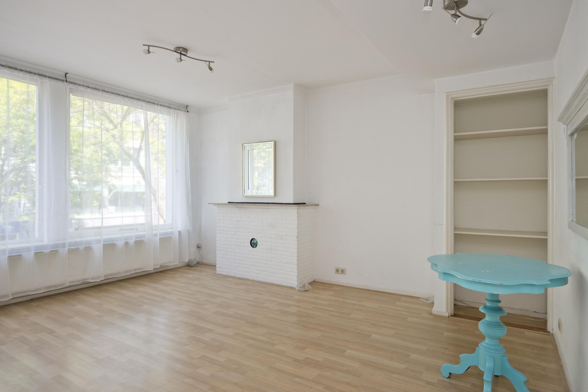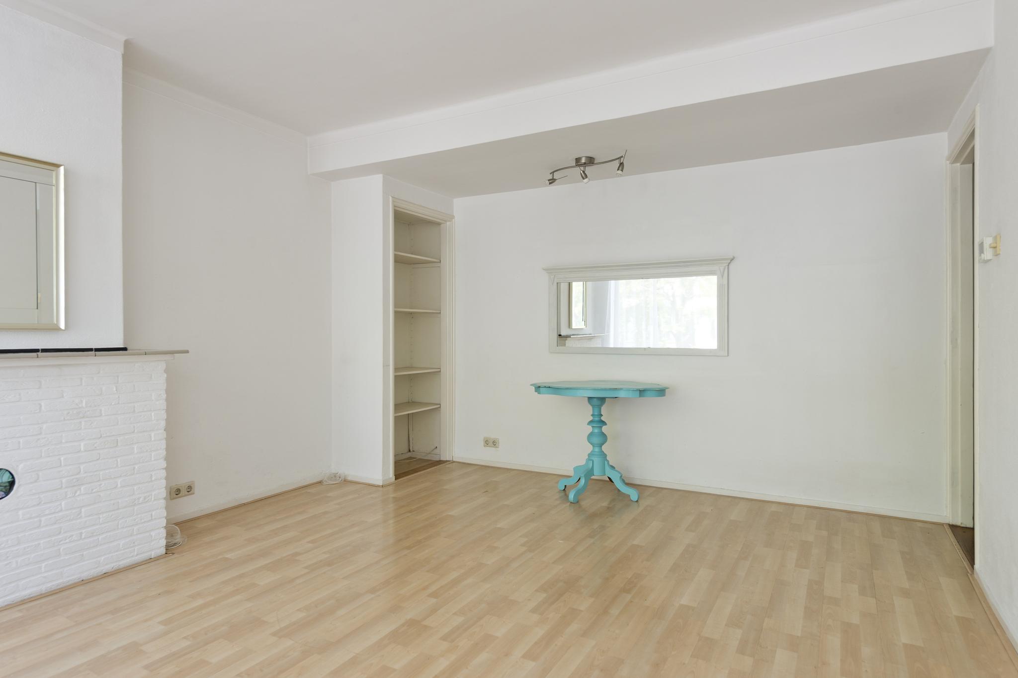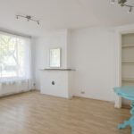 De woonkamer is super licht door de twee grote vierkante ramen, de lichte laminaatvloer en de witte muren en plafonds. De schouw geeft deze ruimte extra sfeer. Vanuit de woonkamer gaat u naar het balkon aan de voorzijde.