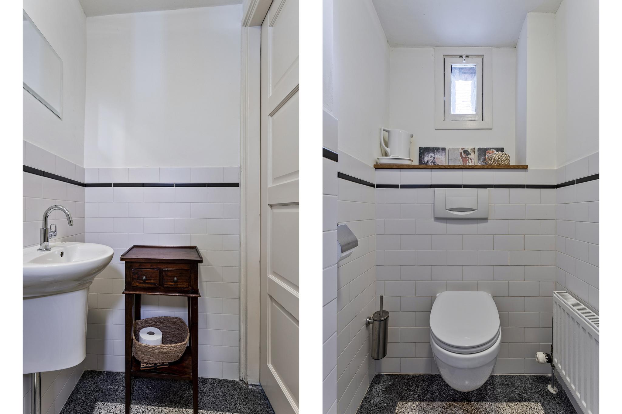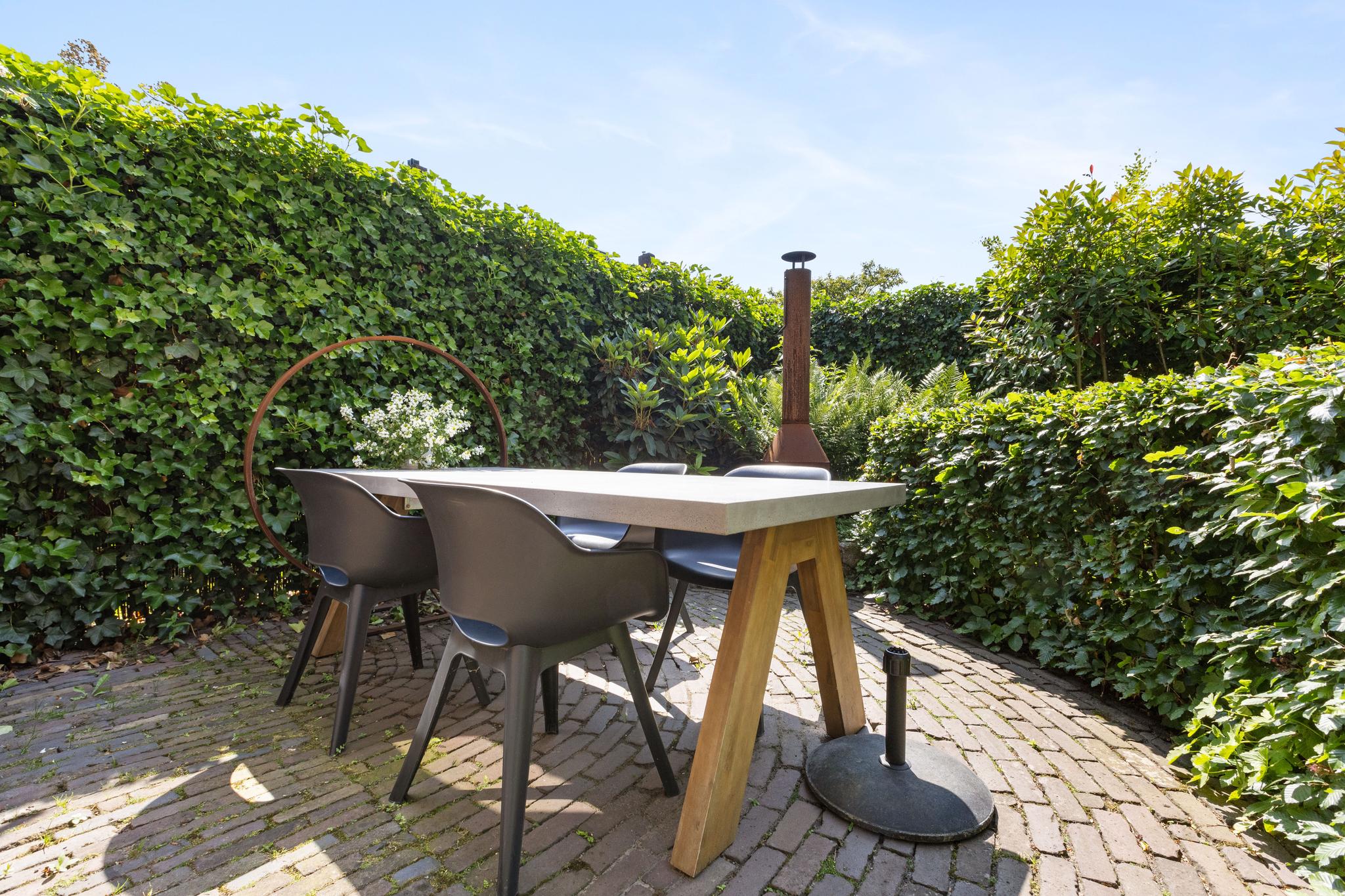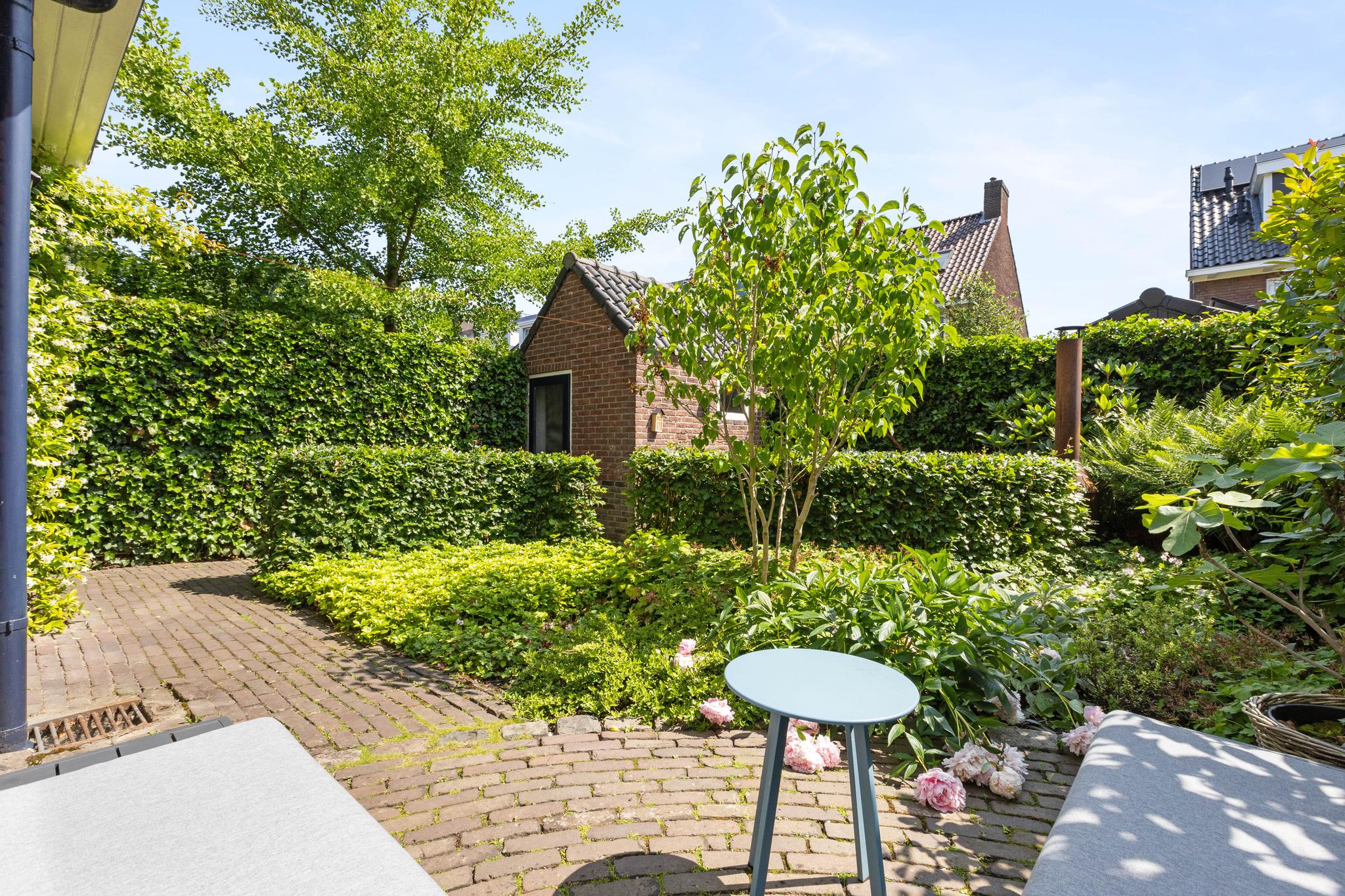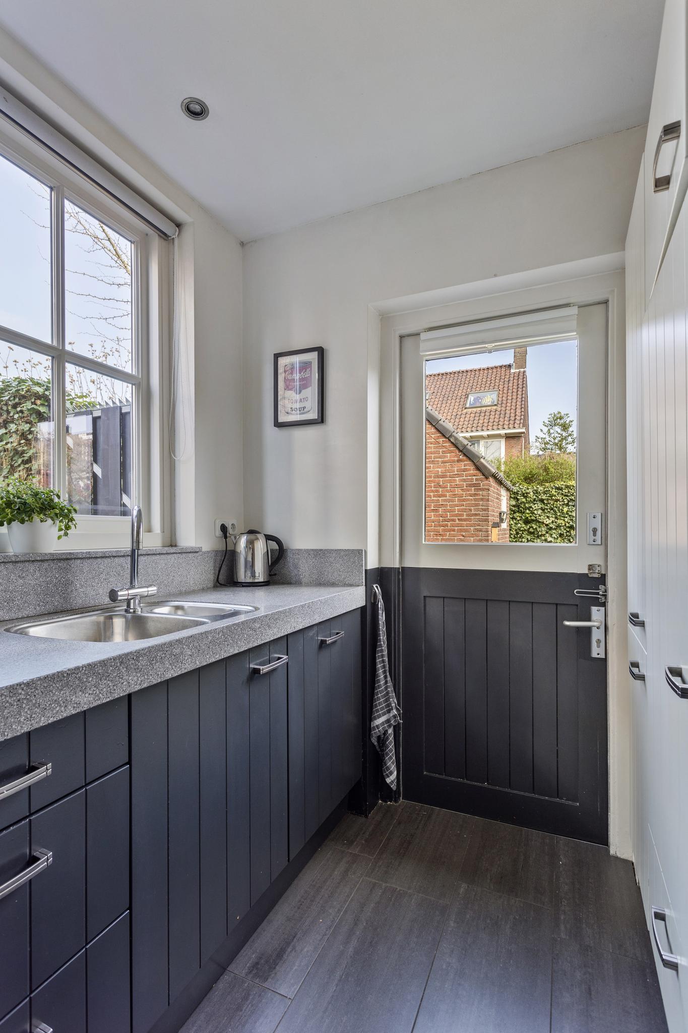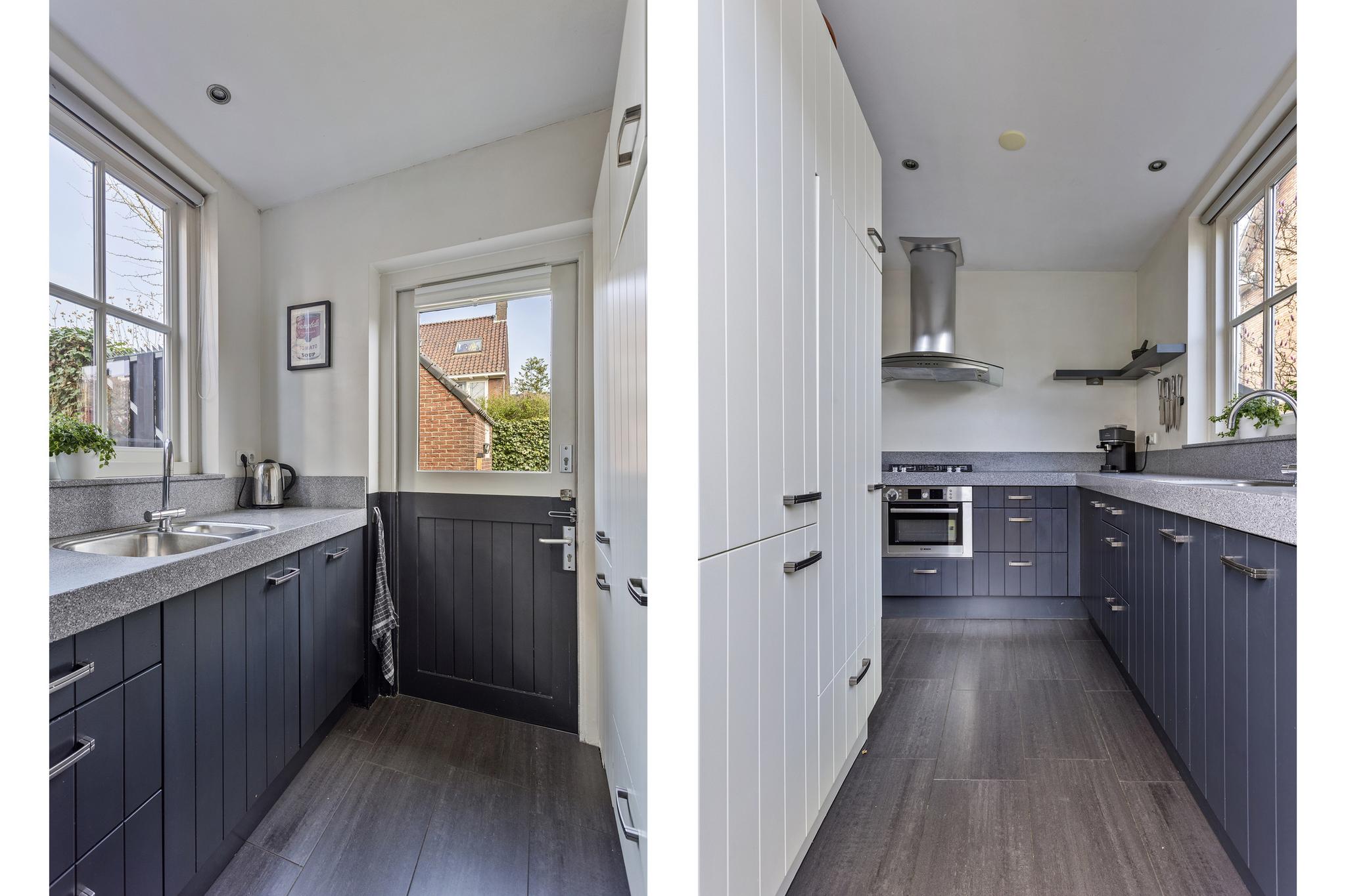 Entree, hal voorzien van de originele granito vloer geeft toegang tot het met modern toilet en provisiekelder met meterkast. Vanuit de hal is er tevens toegang tot de sfeervolle brede en ruime woonkamer voorzien van een visgraat parketvloer, houtkachel en extra kamer aan de voorzijde. Deze extra kamer is ideaal voor kantoor aan huis of thuiswerken. De geweldige open keuken staat helemaal in verbinding met de woonkamer. Deze luxe keuken is voorzien van gasfornuis, vaatwasser, oven en magnetron en koelkast. Daarnaast geeft de keuken toegang naar de afgesloten achtertuin. Deze achtertuin gelegen op het Oosten beschikt over een terras, groen borders en een vrijstaande stenen berging. Tevens is de achtertuin te bereiken vanuit de voorkant van de woning.
