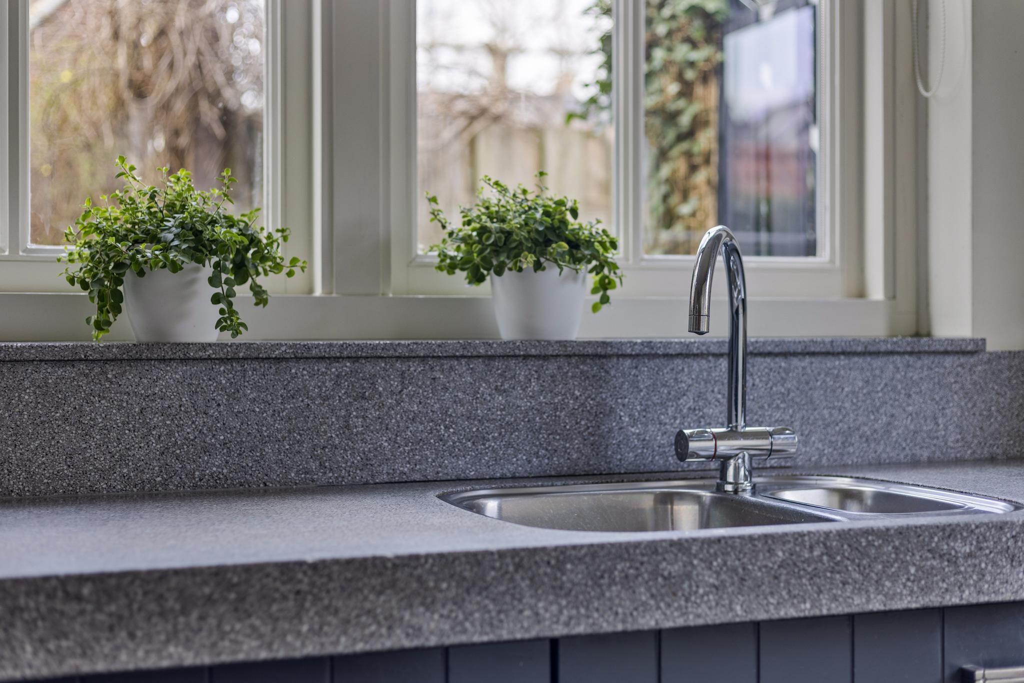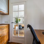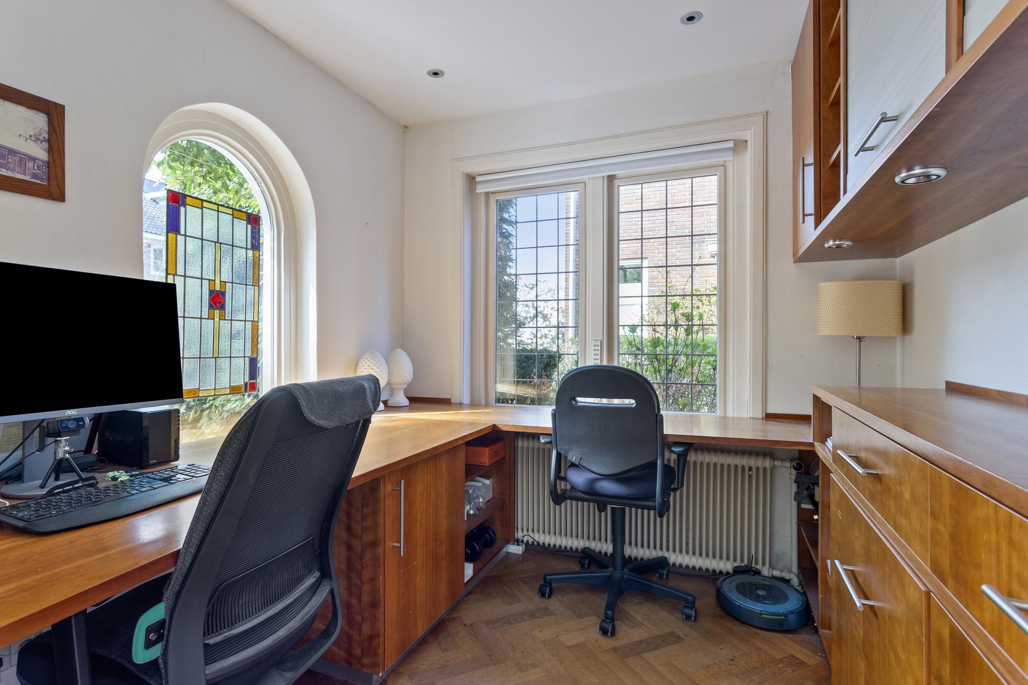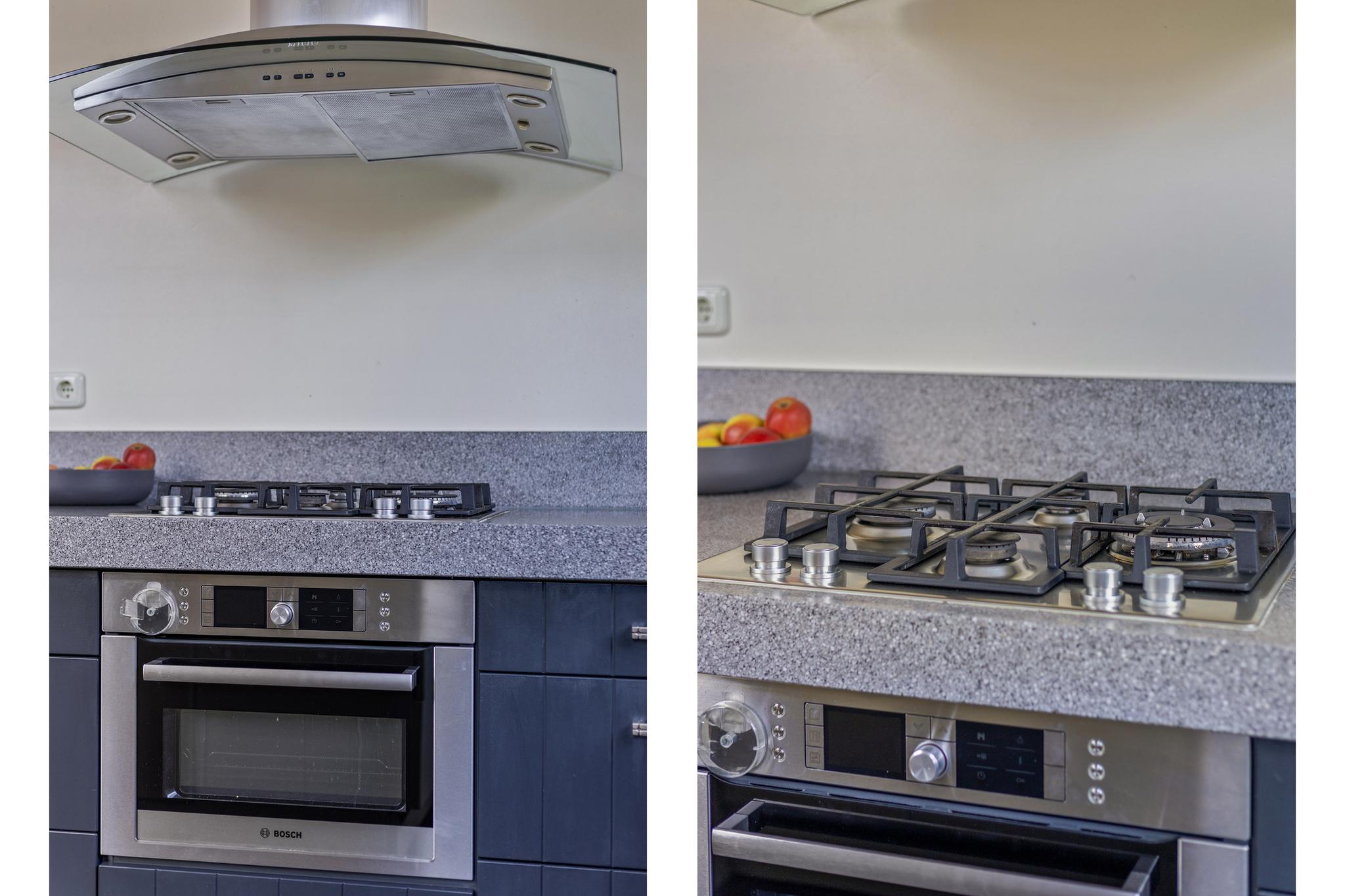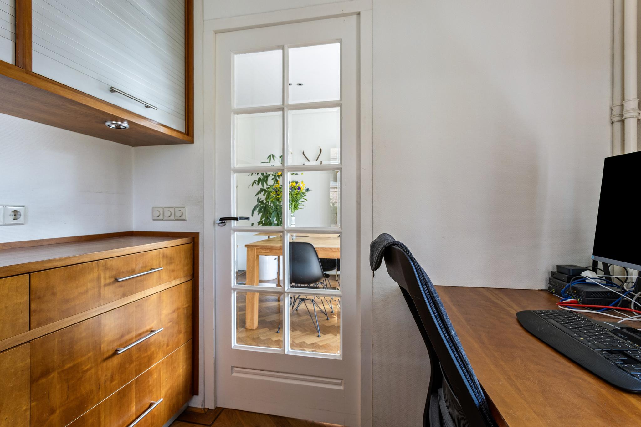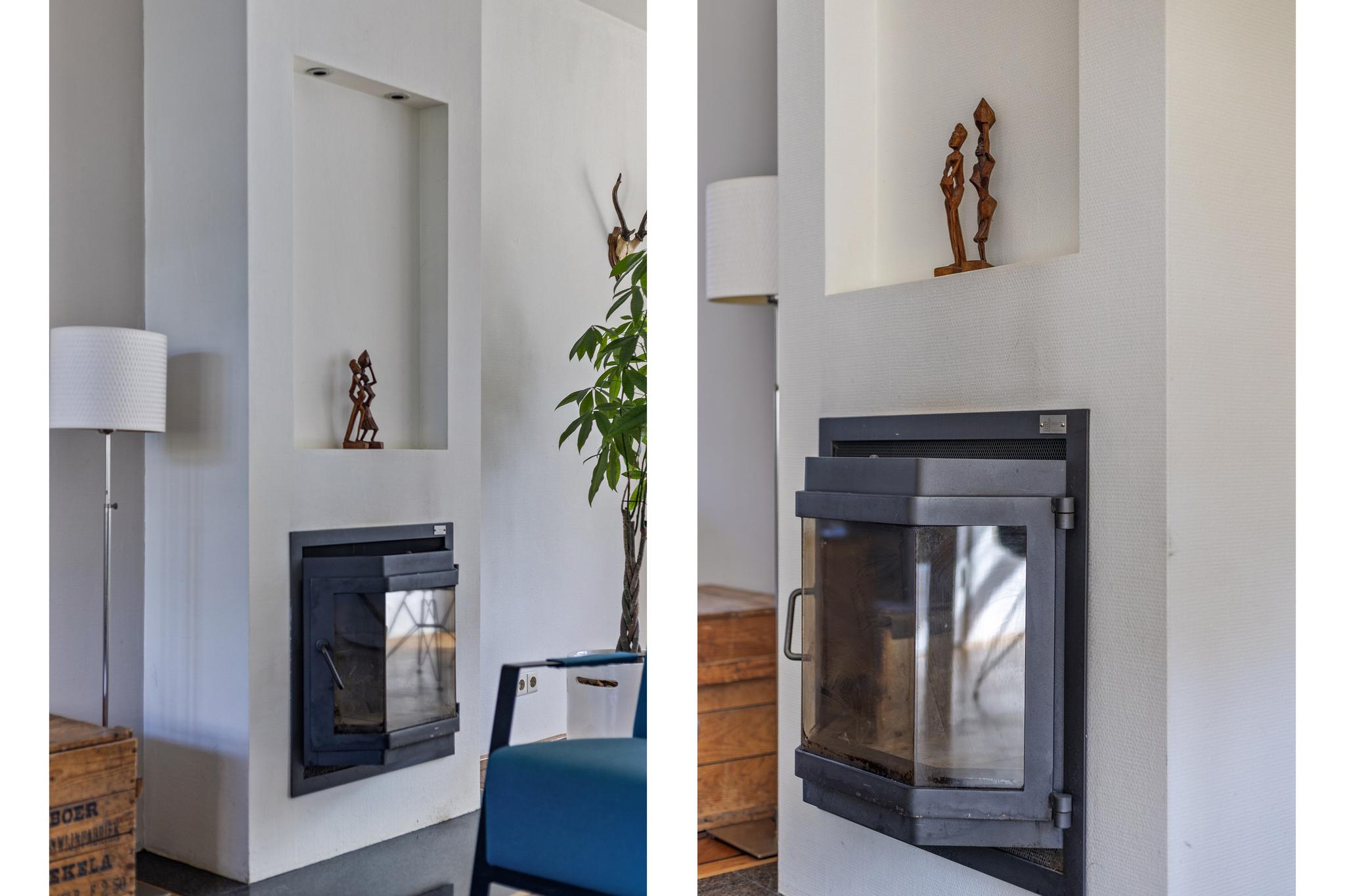 Entree, hal voorzien van de originele granito vloer geeft toegang tot het met modern toilet en provisiekelder met meterkast. Vanuit de hal is er tevens toegang tot de sfeervolle brede en ruime woonkamer voorzien van een visgraat parketvloer, houtkachel en extra kamer aan de voorzijde. Deze extra kamer is ideaal voor kantoor aan huis of thuiswerken. De geweldige open keuken staat helemaal in verbinding met de woonkamer. Deze luxe keuken is voorzien van gasfornuis, vaatwasser, oven en magnetron en koelkast. Daarnaast geeft de keuken toegang naar de afgesloten achtertuin. Deze achtertuin gelegen op het Oosten beschikt over een terras, groen borders en een vrijstaande stenen berging. Tevens is de achtertuin te bereiken vanuit de voorkant van de woning.