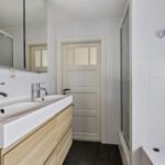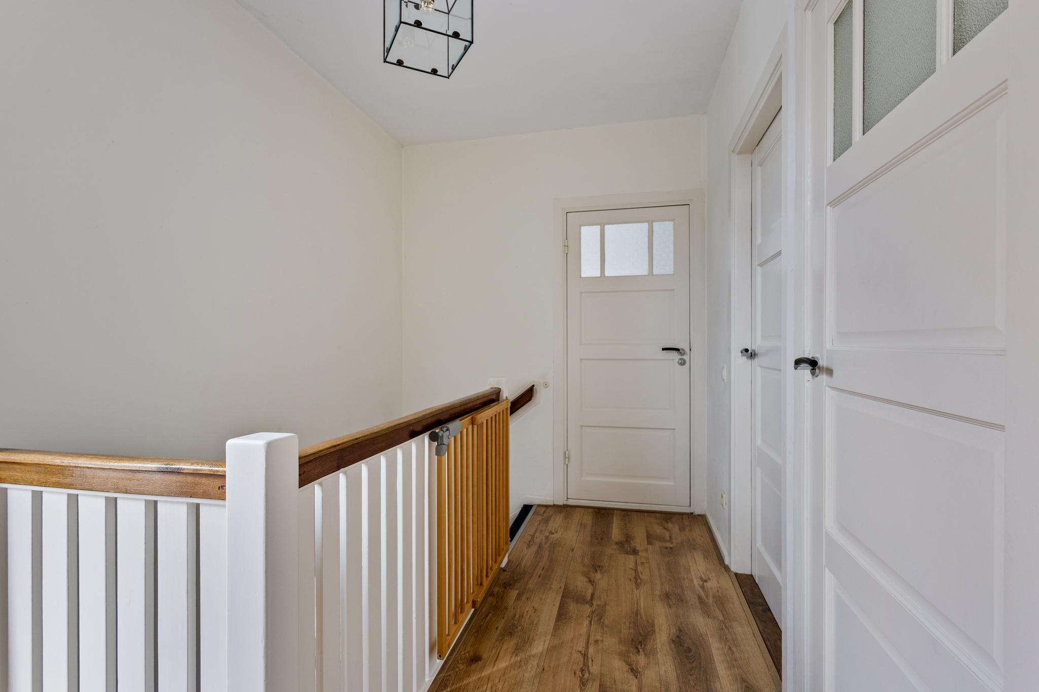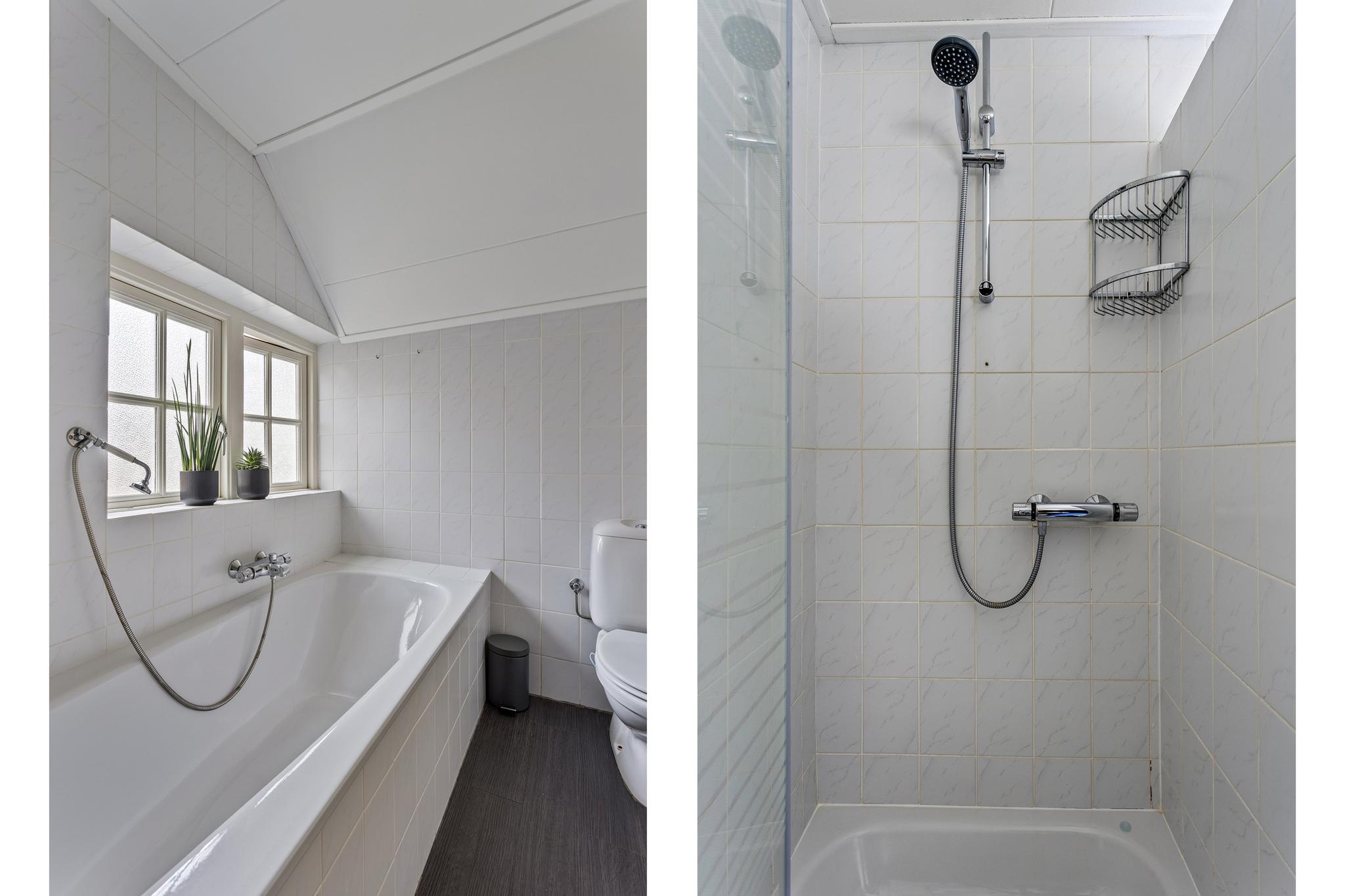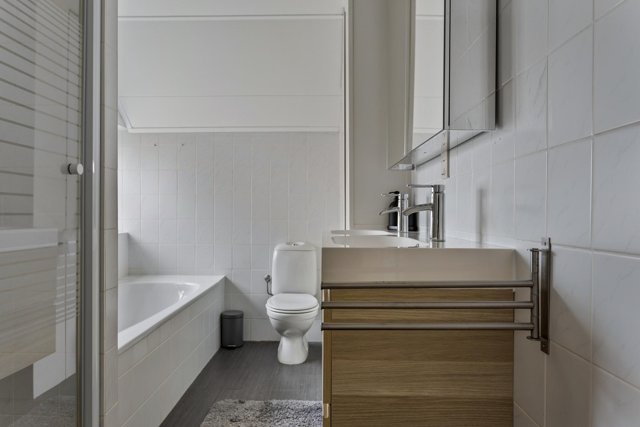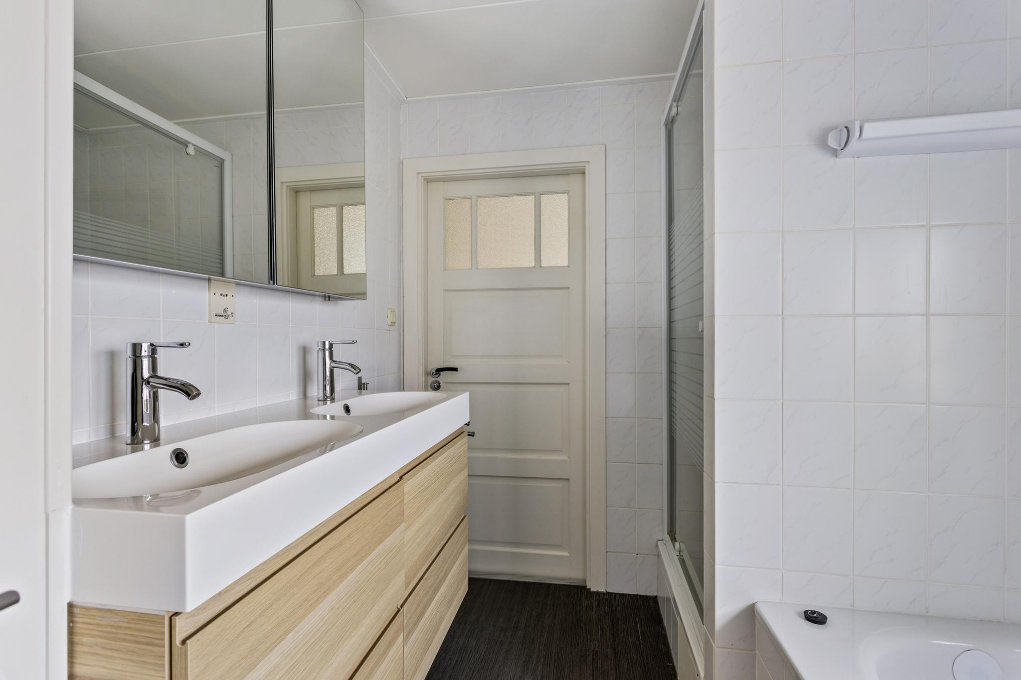 Overloop, 3 slaapkamers en moderne badkamer met dubbele wastafel, ligbad, douche en toilet. Daarnaast is er op deze verdieping toegang tot een ruim balkon.