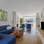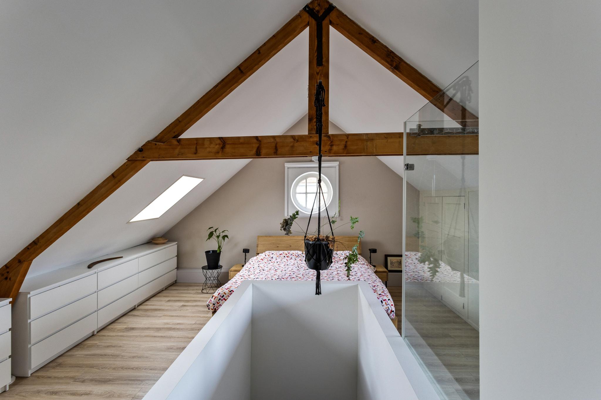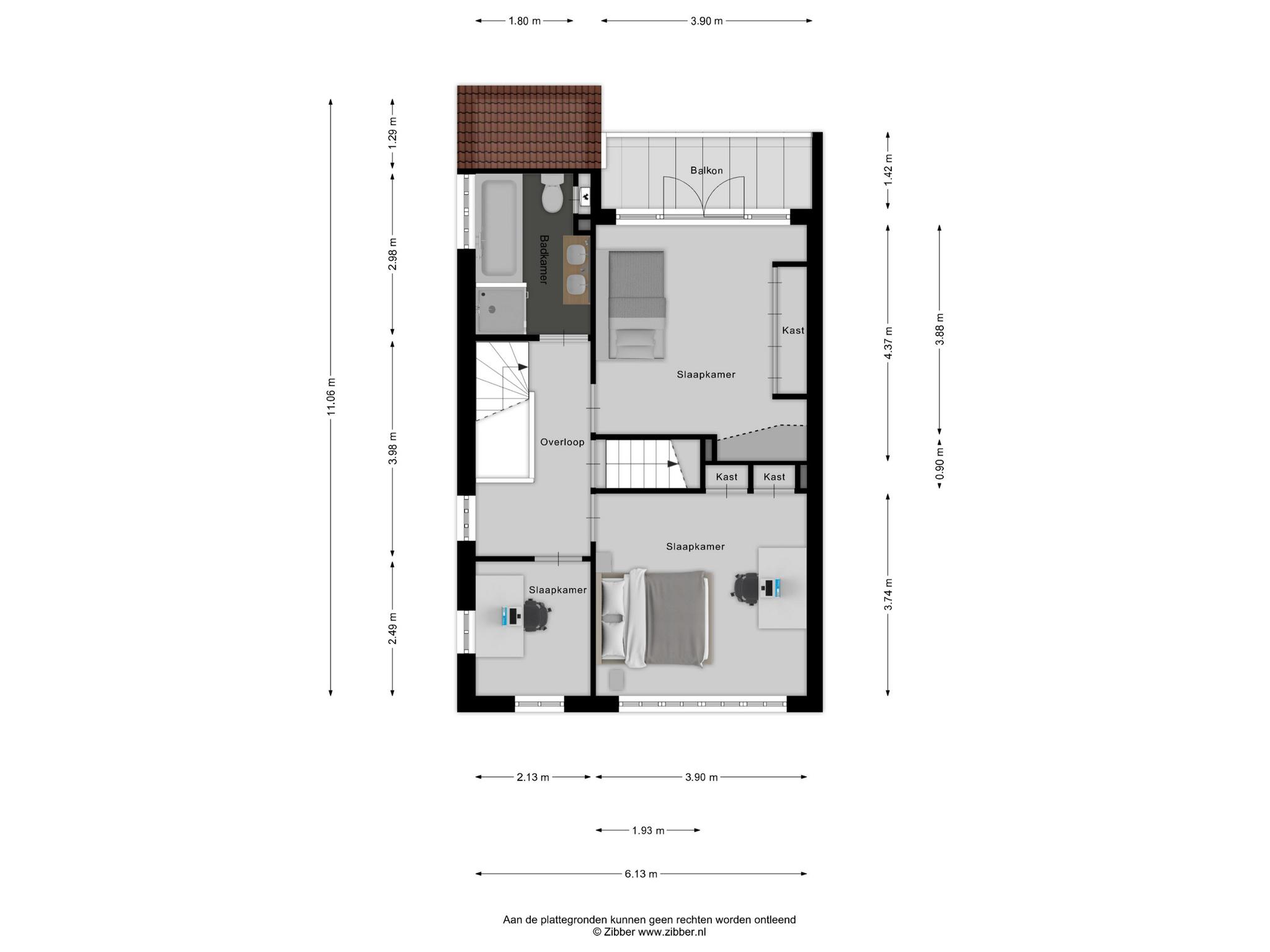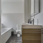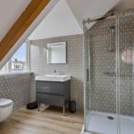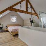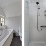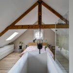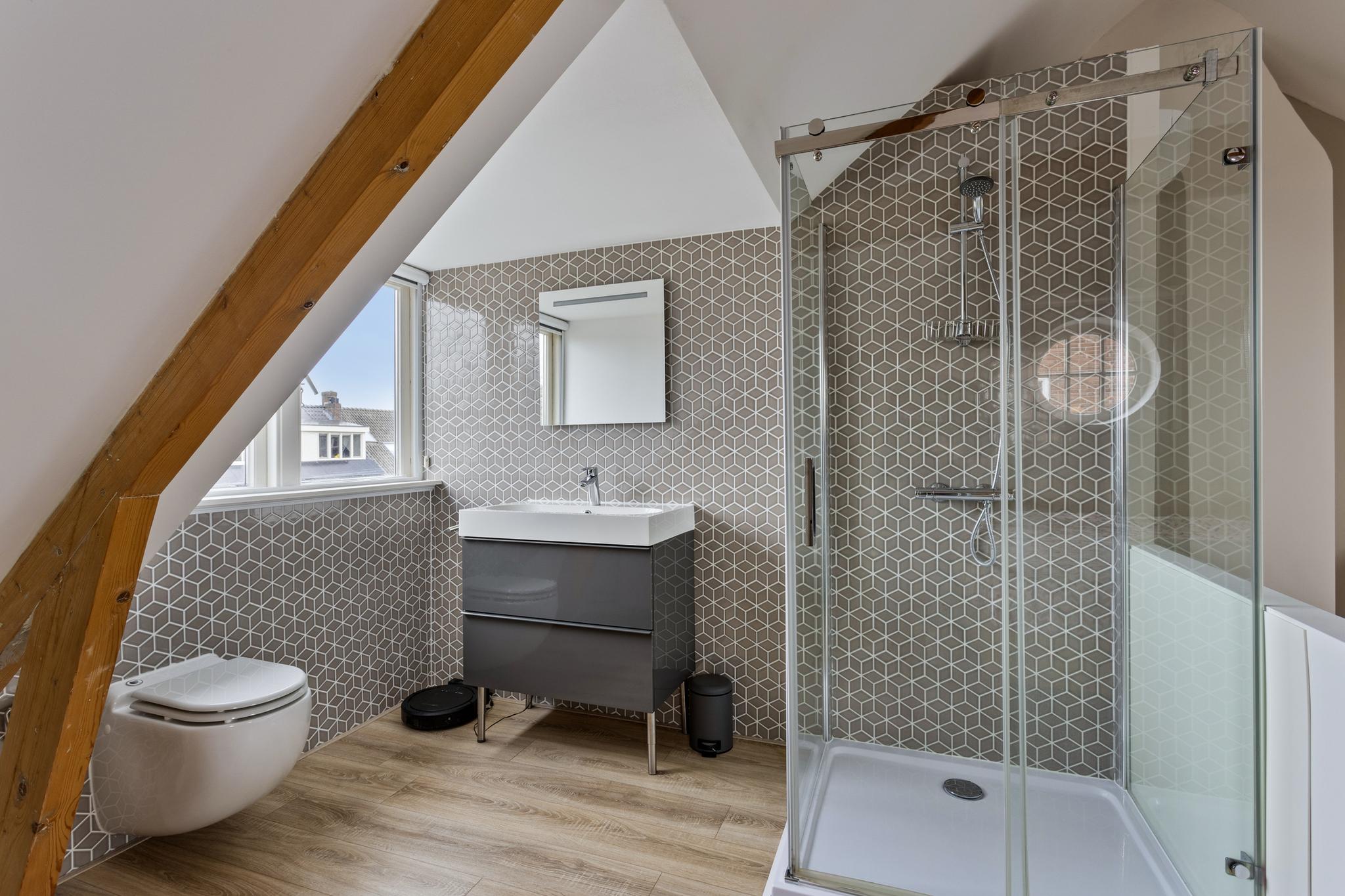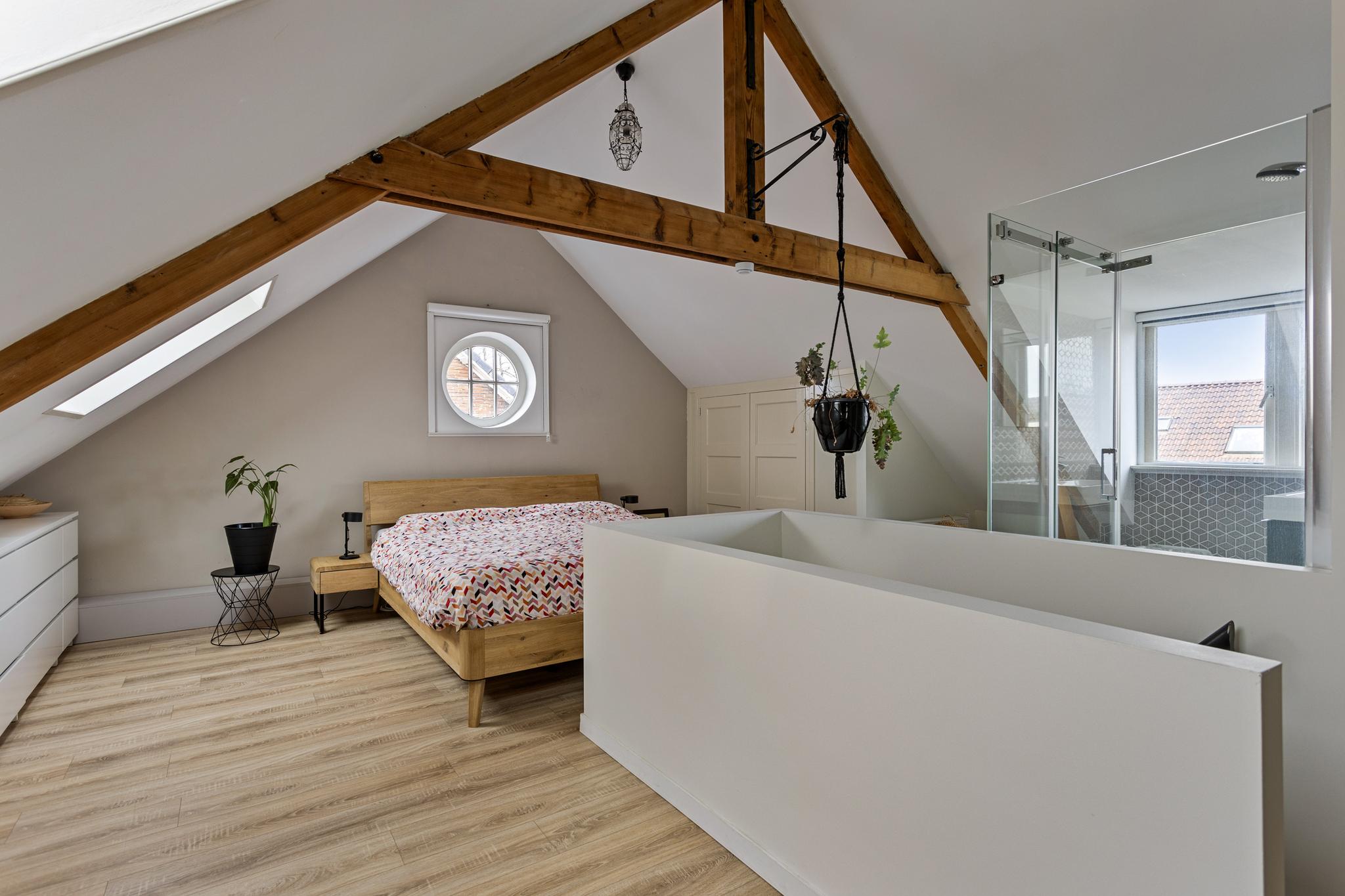 Overloop, 3 slaapkamers en moderne badkamer met dubbele wastafel, ligbad, douche en toilet. Daarnaast is er op deze verdieping toegang tot een ruim balkon.