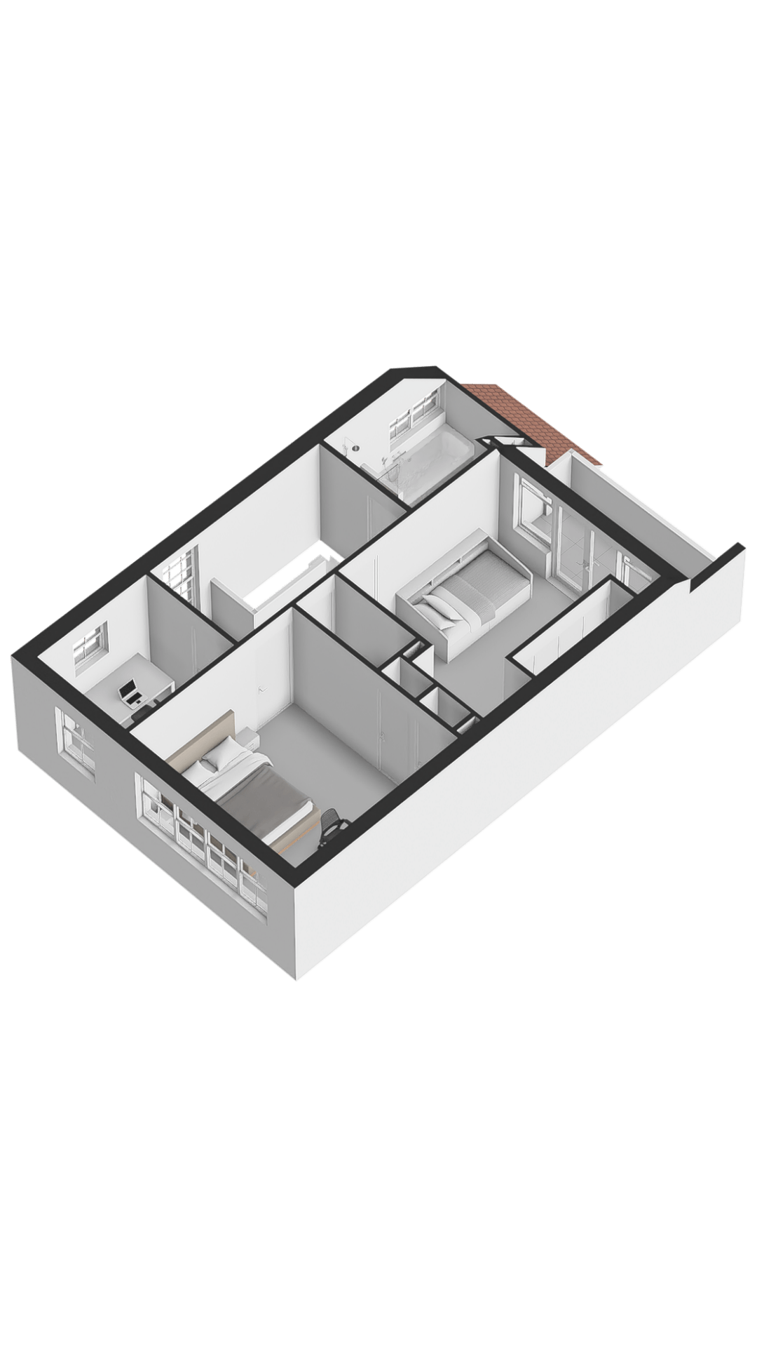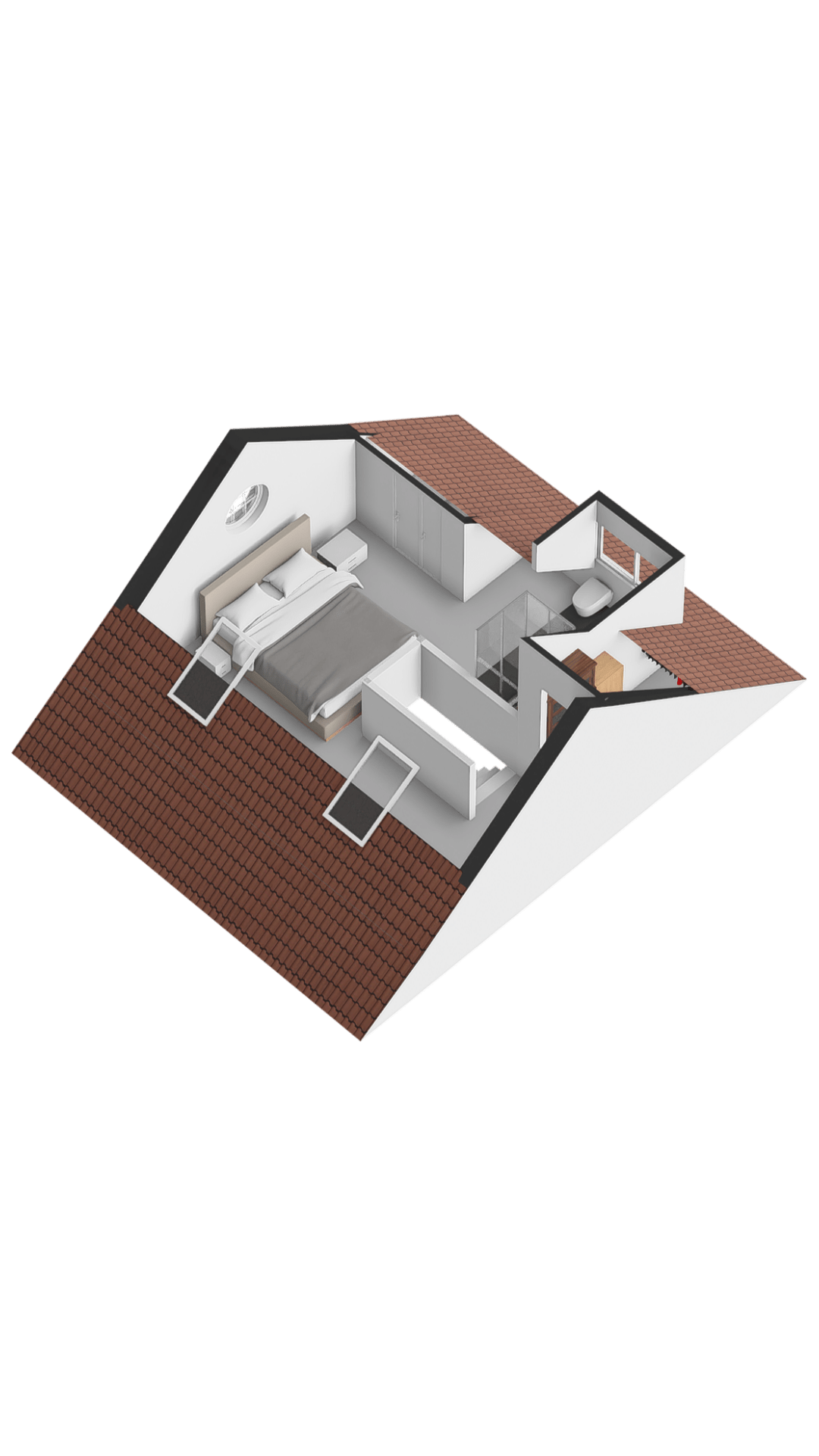 Deze verdieping beschikt over een prachtige ruimte/slaapkamer met airco, welke in verbinding staat met de douche, wastafel en toilet. Tevens is er een bergruimte gemaakt voor de opstelling wasmachine en droger. Ook beschikt deze ruimte over een walk-in-closet.