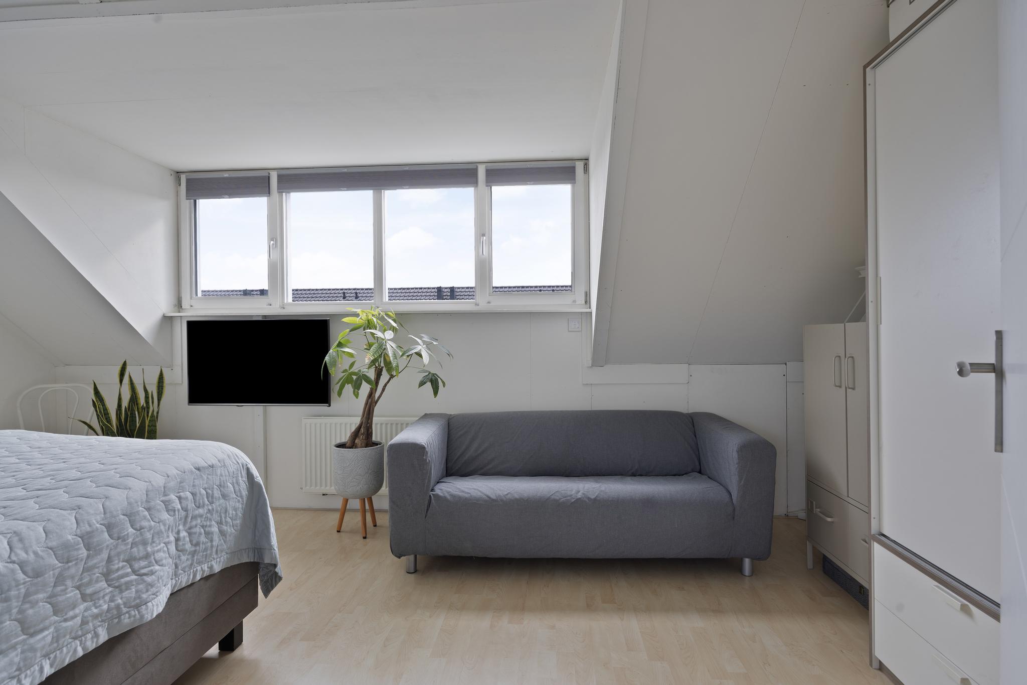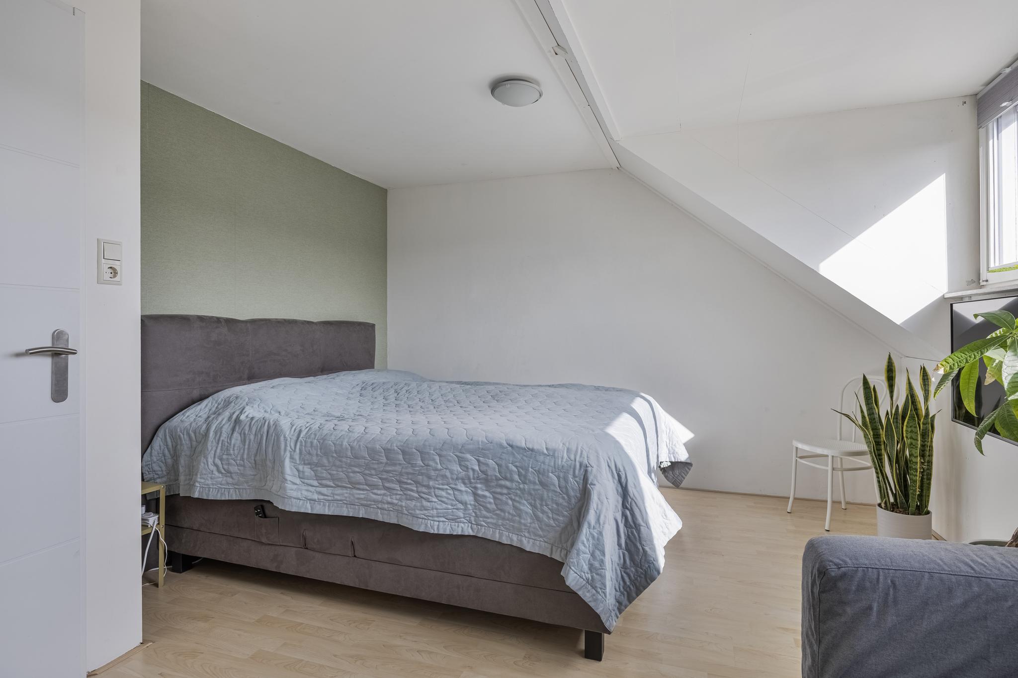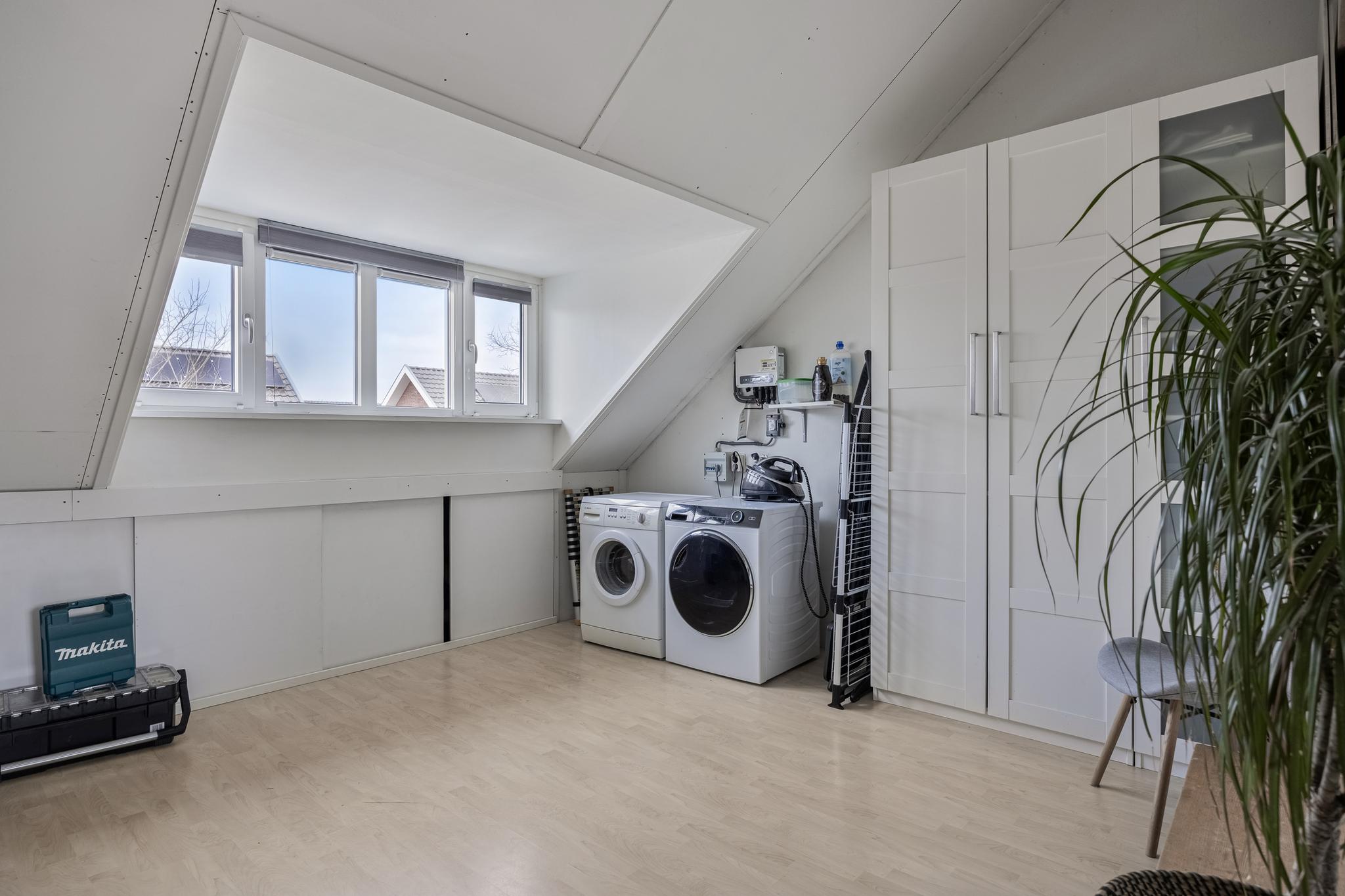 Tweede etage: Ruime zolder overloop met wasruimte en veel extra bergruimte middels een vliering, mooie master bedroom.