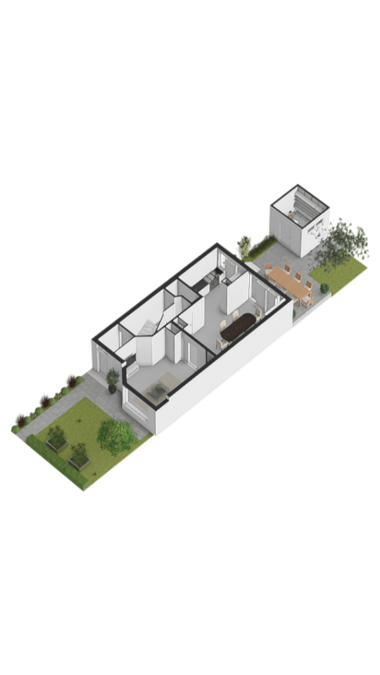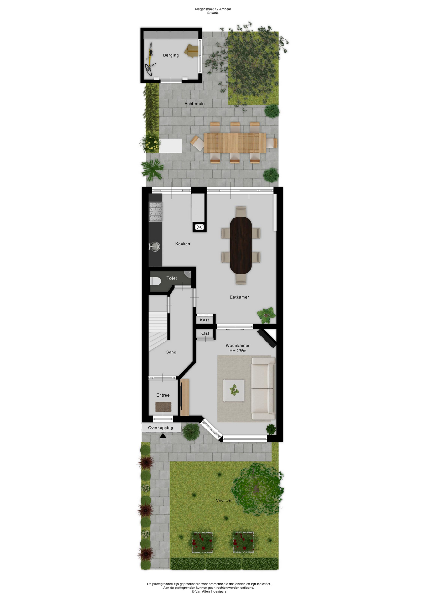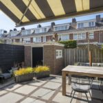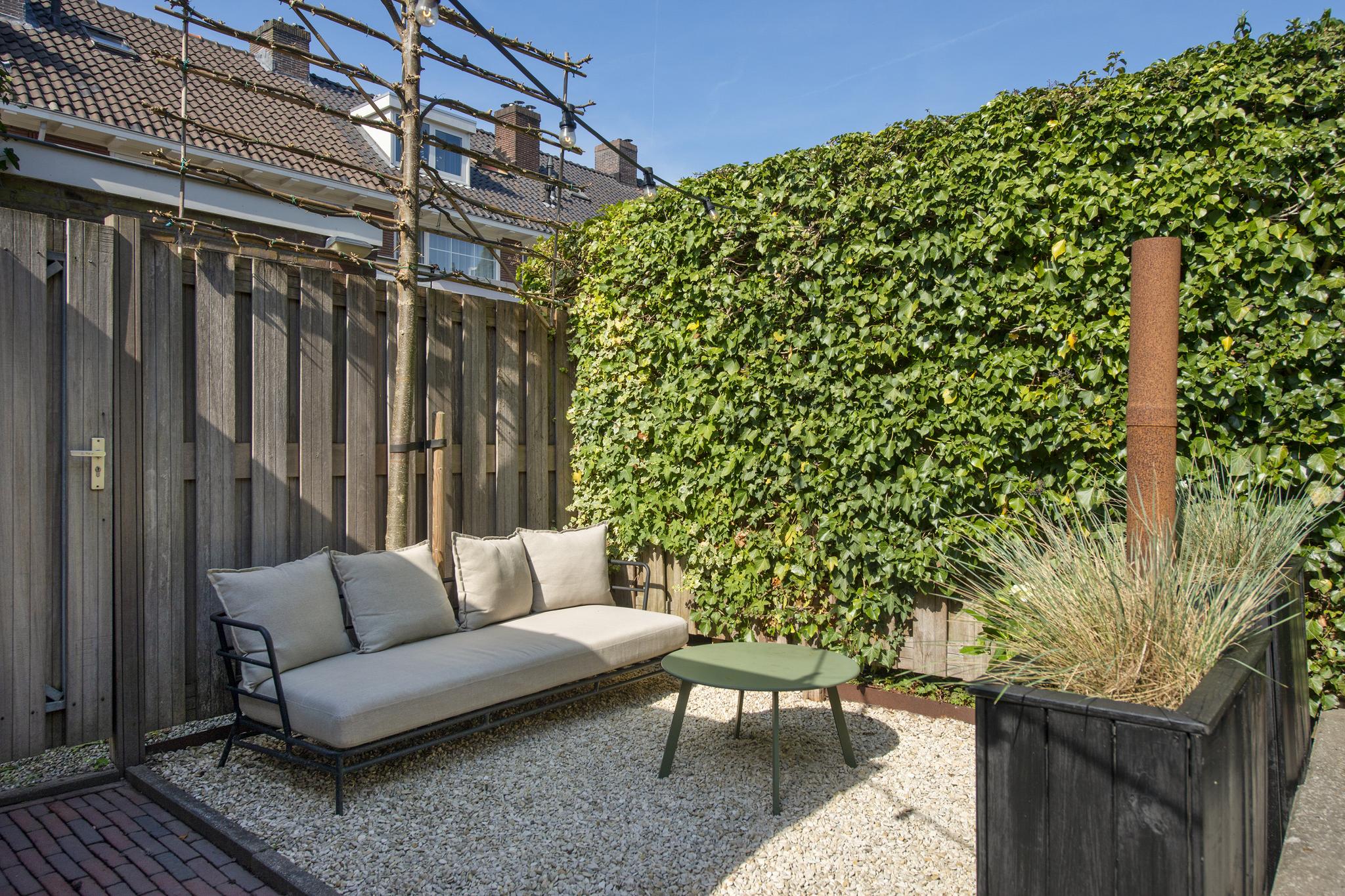 - Zonnige en goed ingedeelde tuin op het westen met stenen berging en achterom