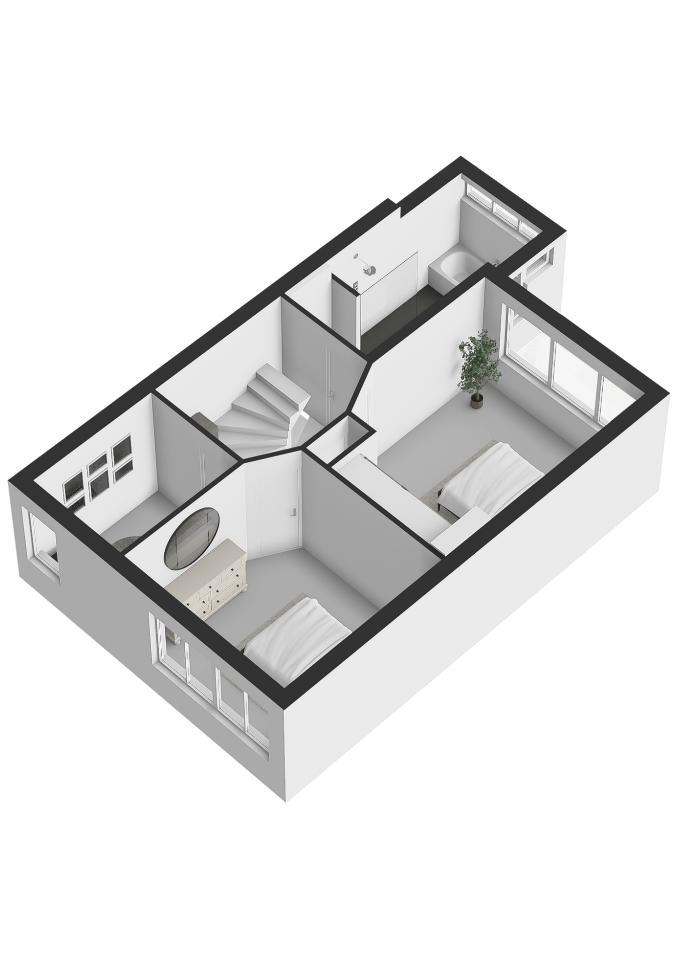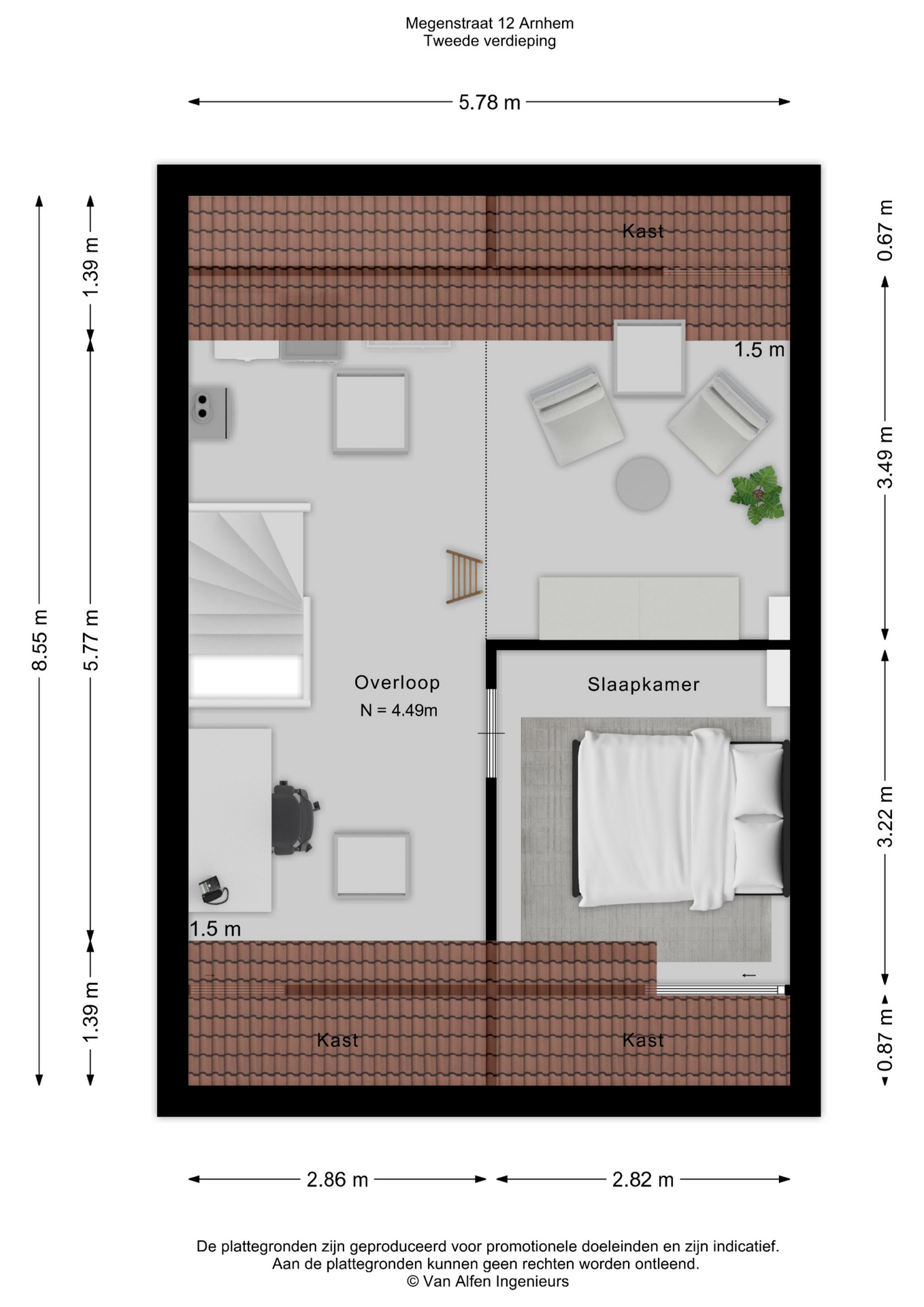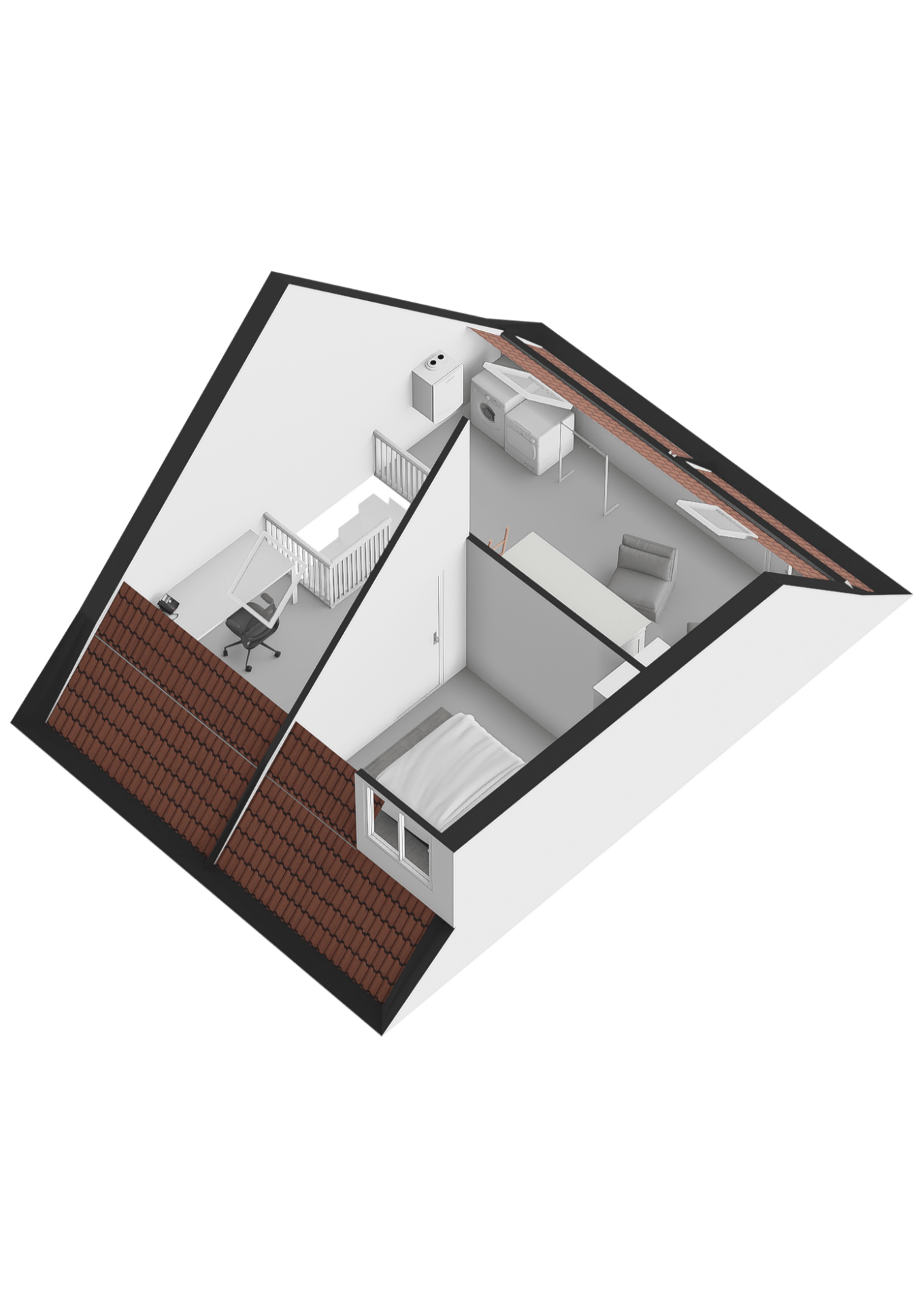 Tweede verdieping: via de vaste trap bereik je een hoge en lichte zolderruimte. Op deze verdieping vind je de 4e slaapkamer met dakkapel, een kleedruimte, een kantoor en een wasruimte met wasmachine en droger. Deze verdieping biedt veel bergruimte en tevens de mogelijkheid tot het creëren van een 5e slaapkamer. Toegang tot vliering met nog meer bergruimte.