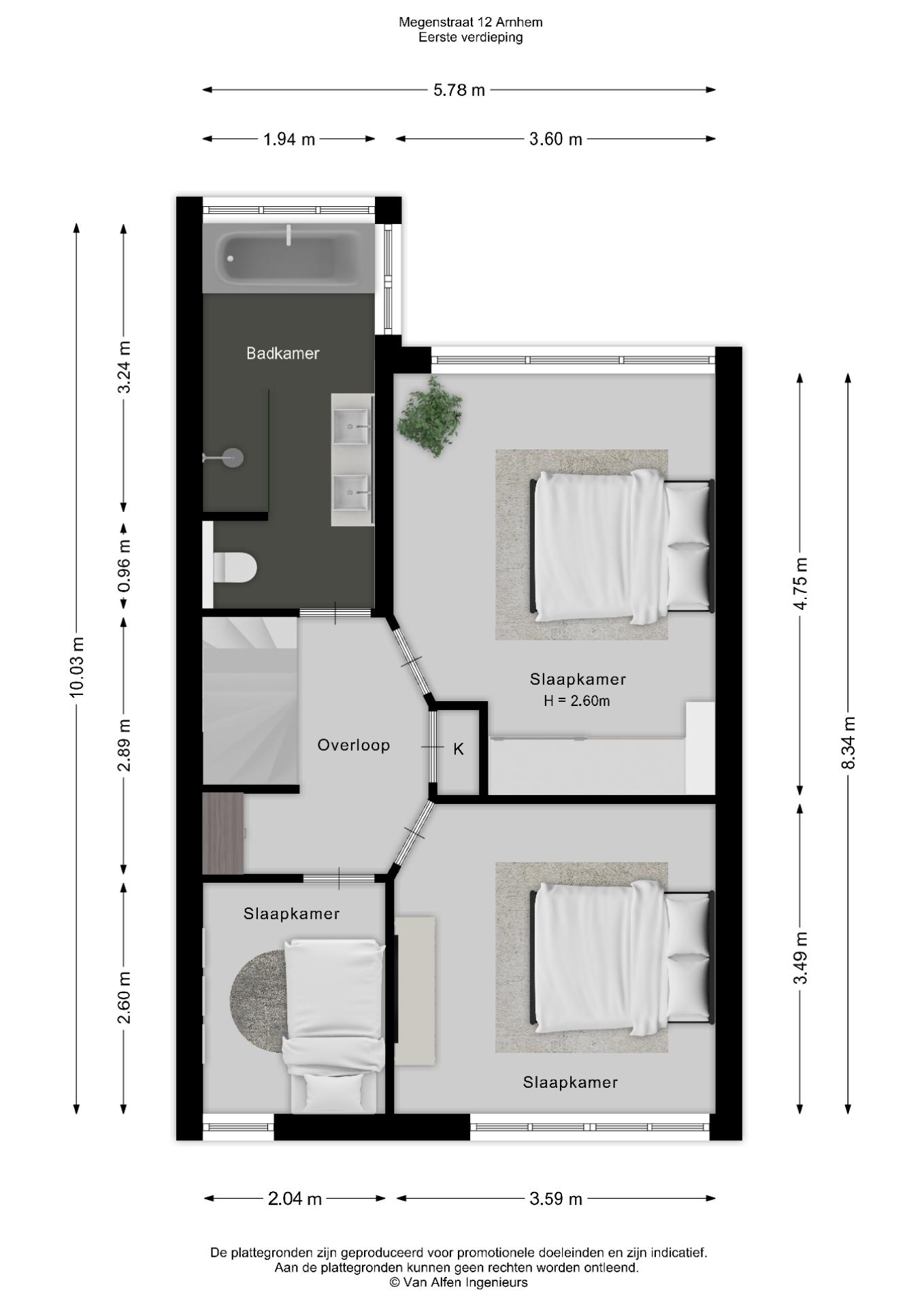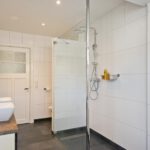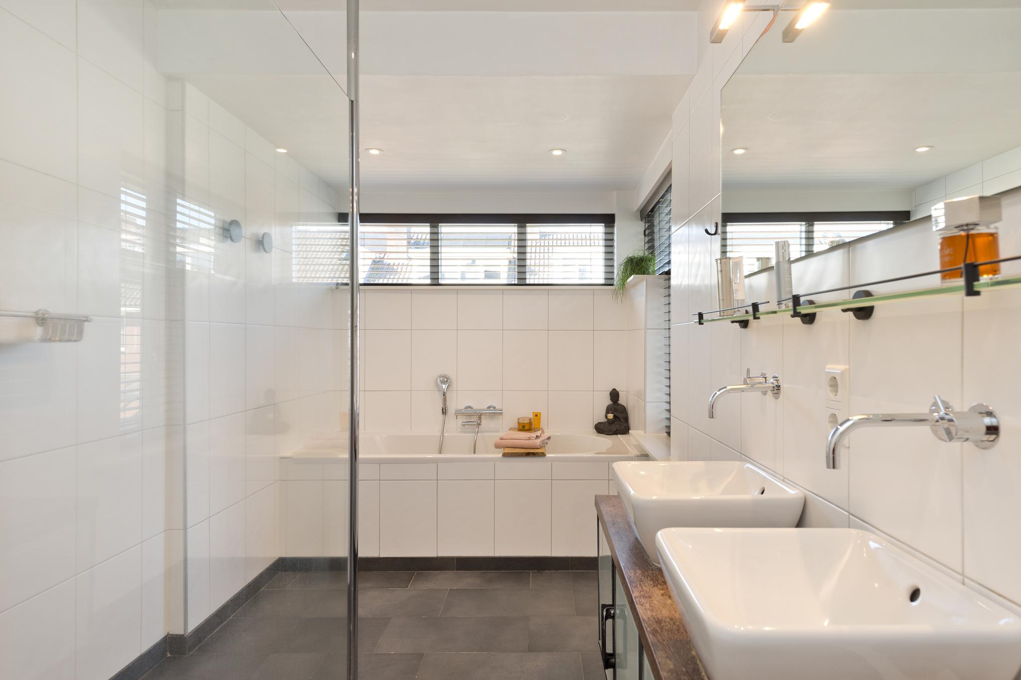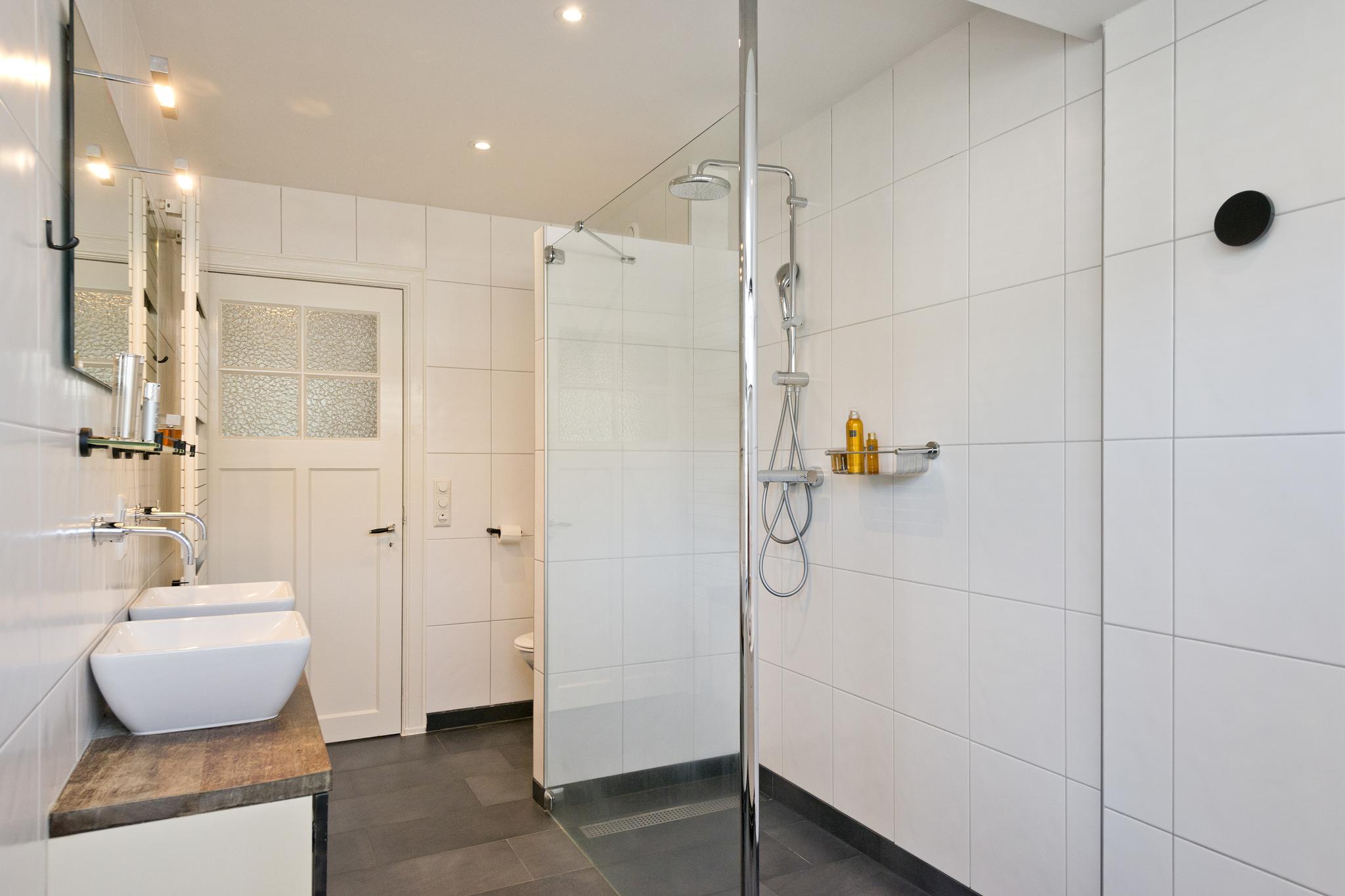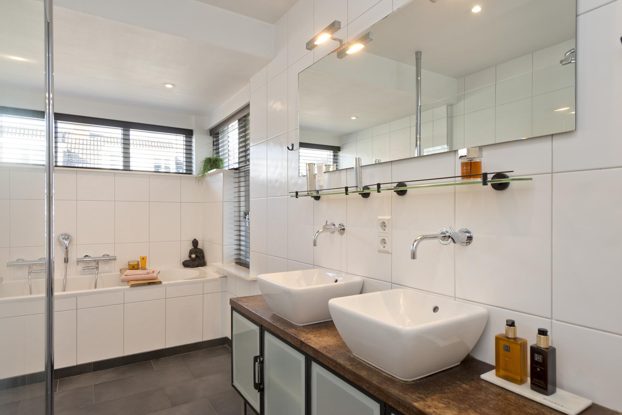 Eerste verdieping: via het trappenhuis naar de eerste verdieping. Aan de overloop bevinden zich 3 slaapkamers, een vaste kast en een riante badkamer met ligbad, separate inloopdouche, wandtoilet en badmeubel met dubbele wastafel. Deze ruime badkamer is gerealiseerd met een uitbouw in 2006 aan de achterzijde van de woning.