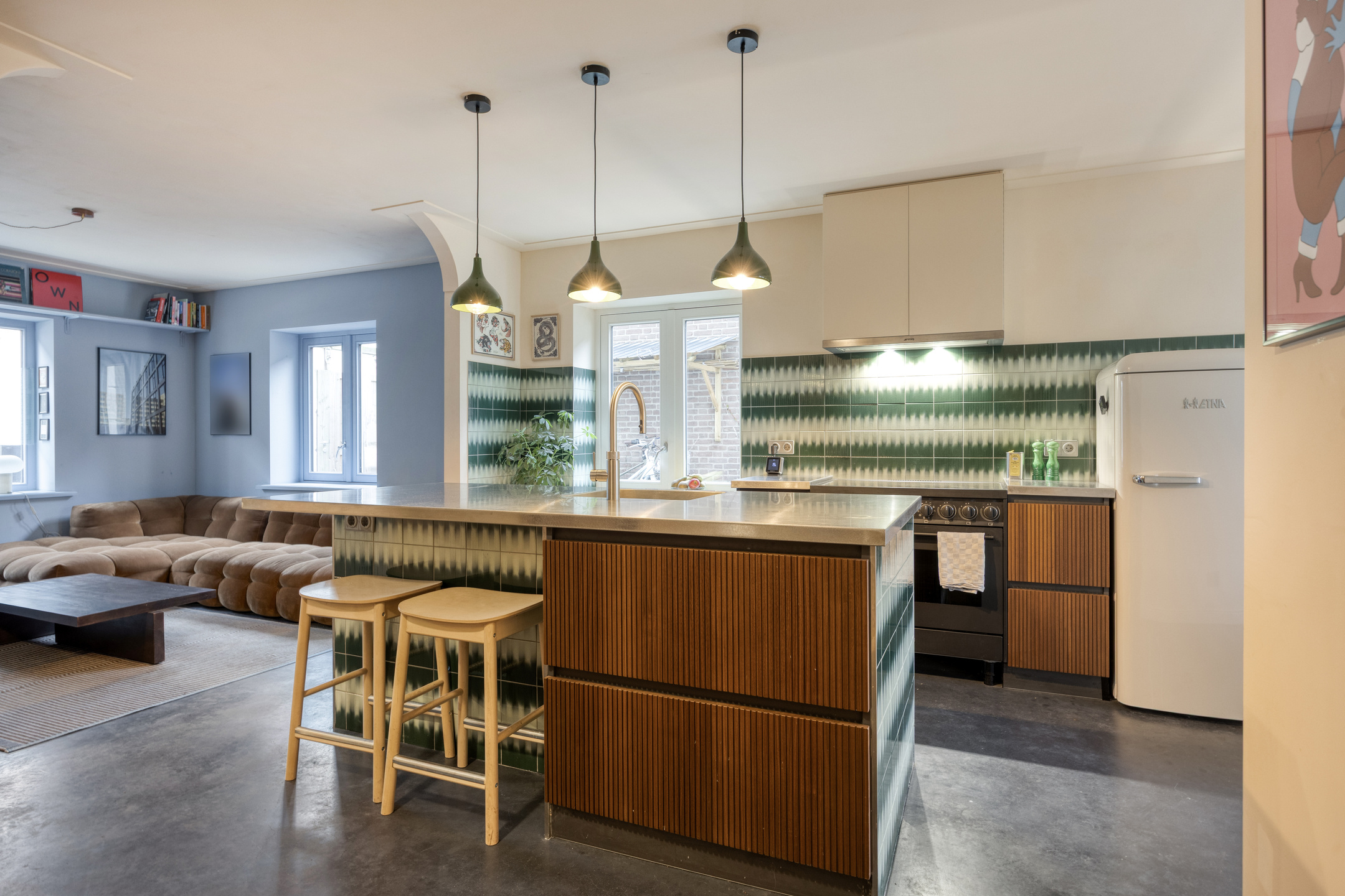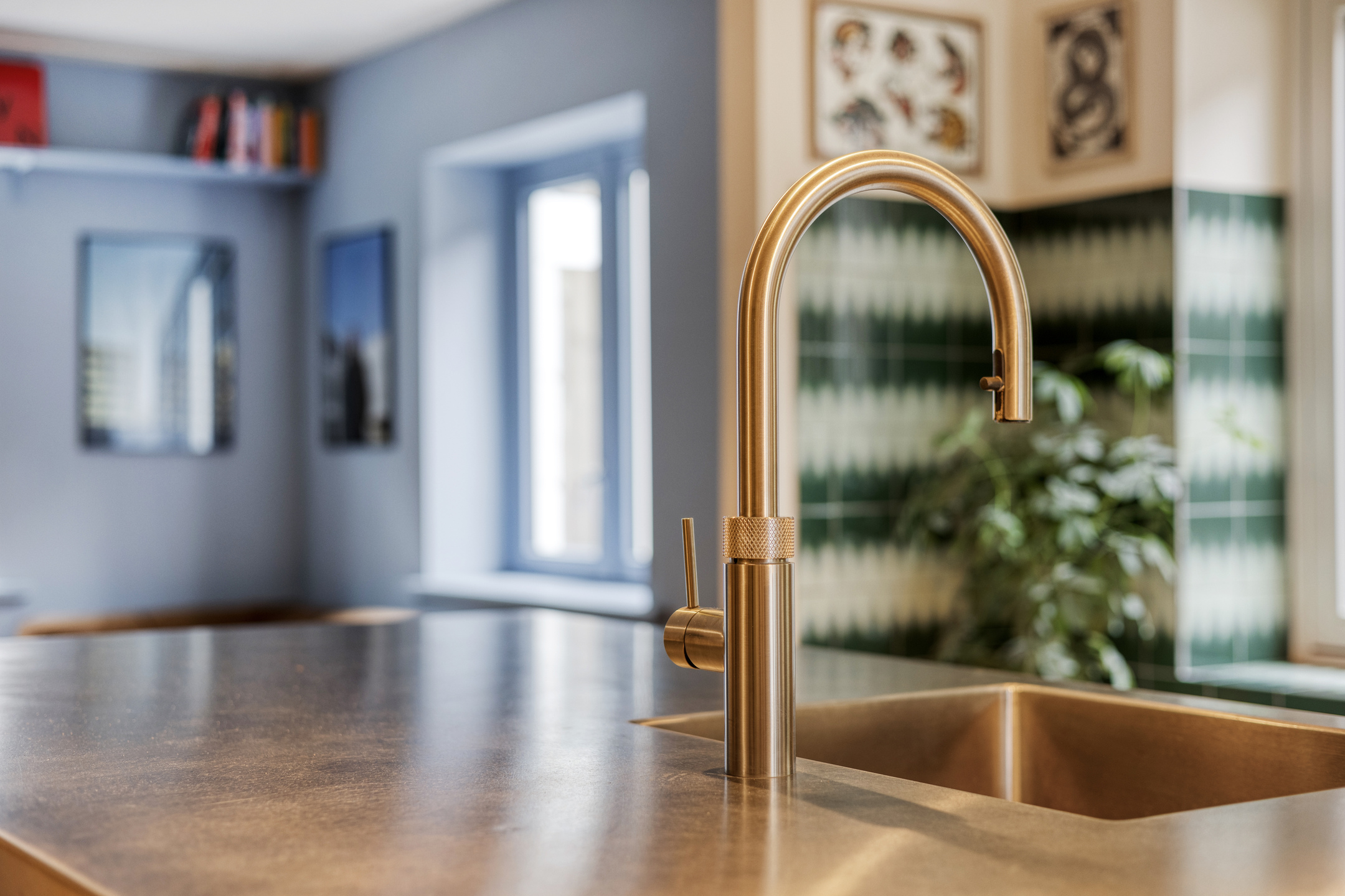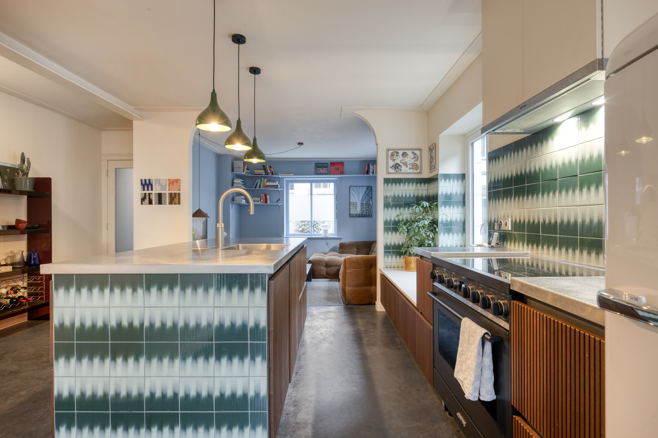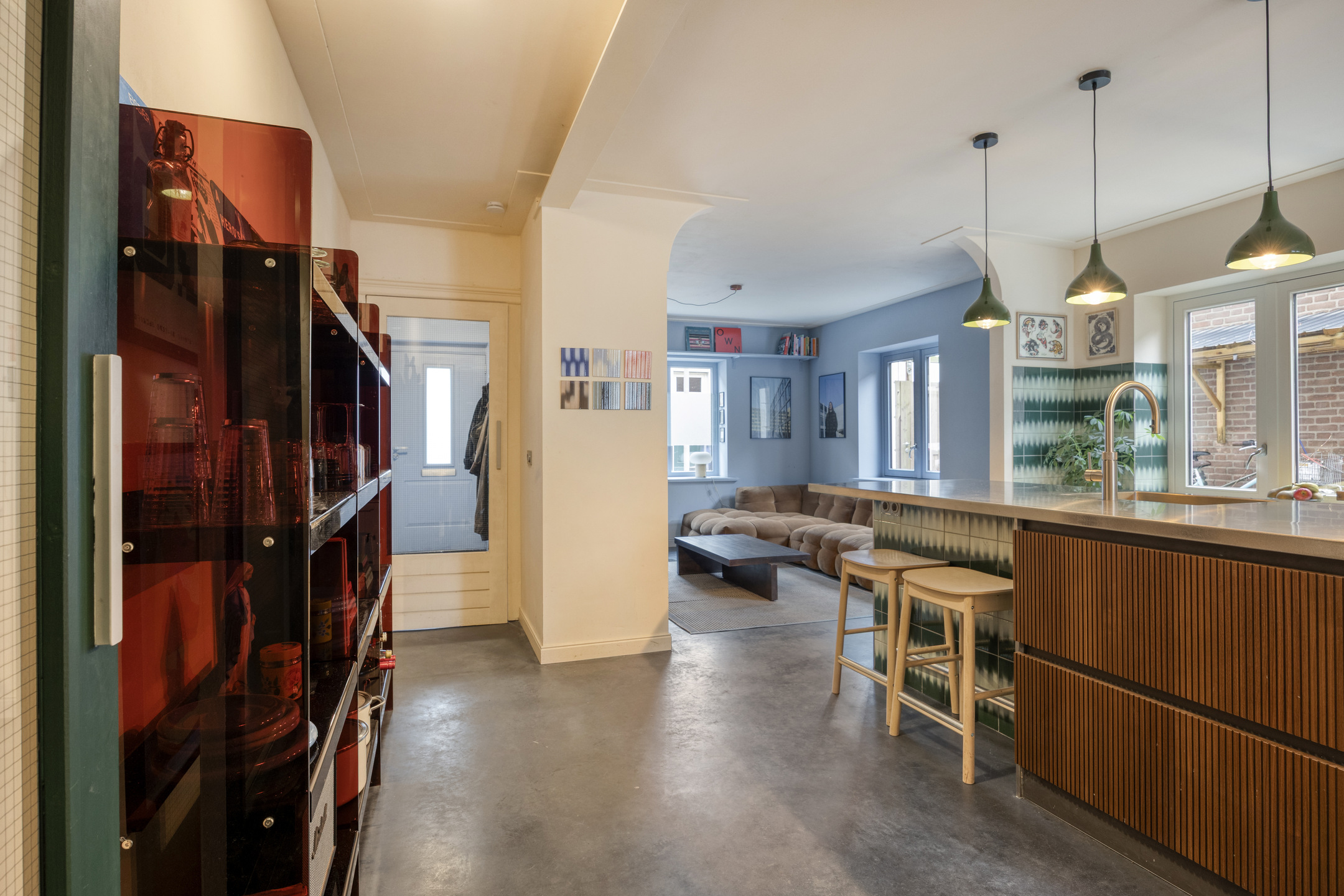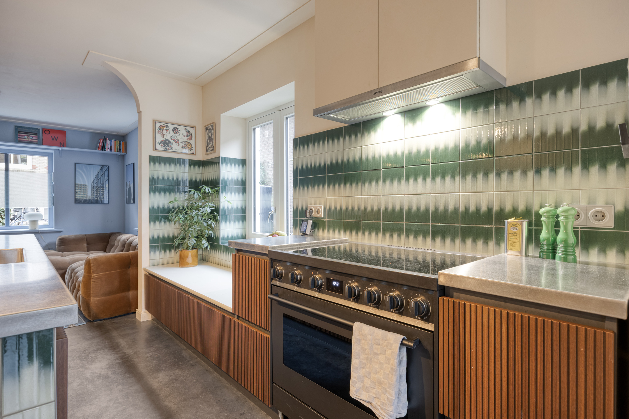 De open keuken vormt het hart van de woning en is modern en compleet uitgerust met hoogwaardige inbouwapparatuur, waaronder een inductiekookplaat, vaatwasser, spoelbak en een Quooker. De keuken biedt daarnaast volop bergruimte en is ontworpen met zowel functionaliteit als de moderniteit van nu.