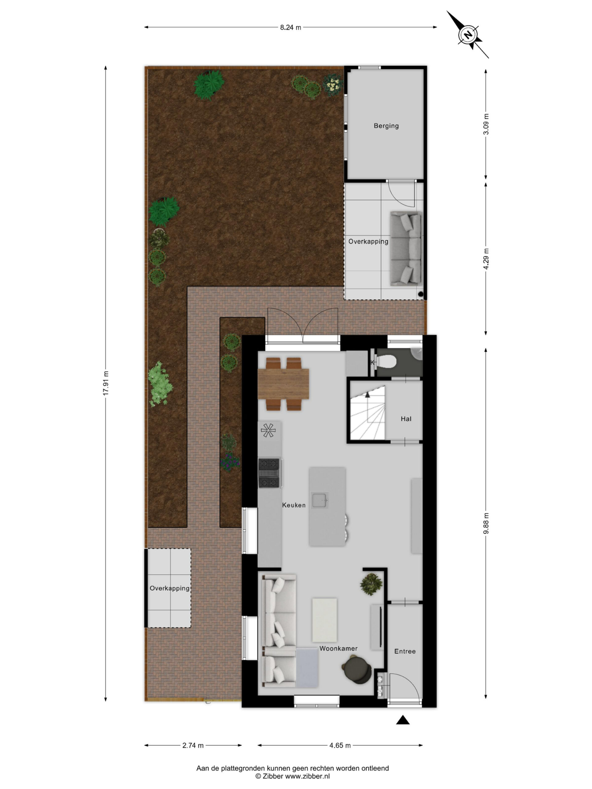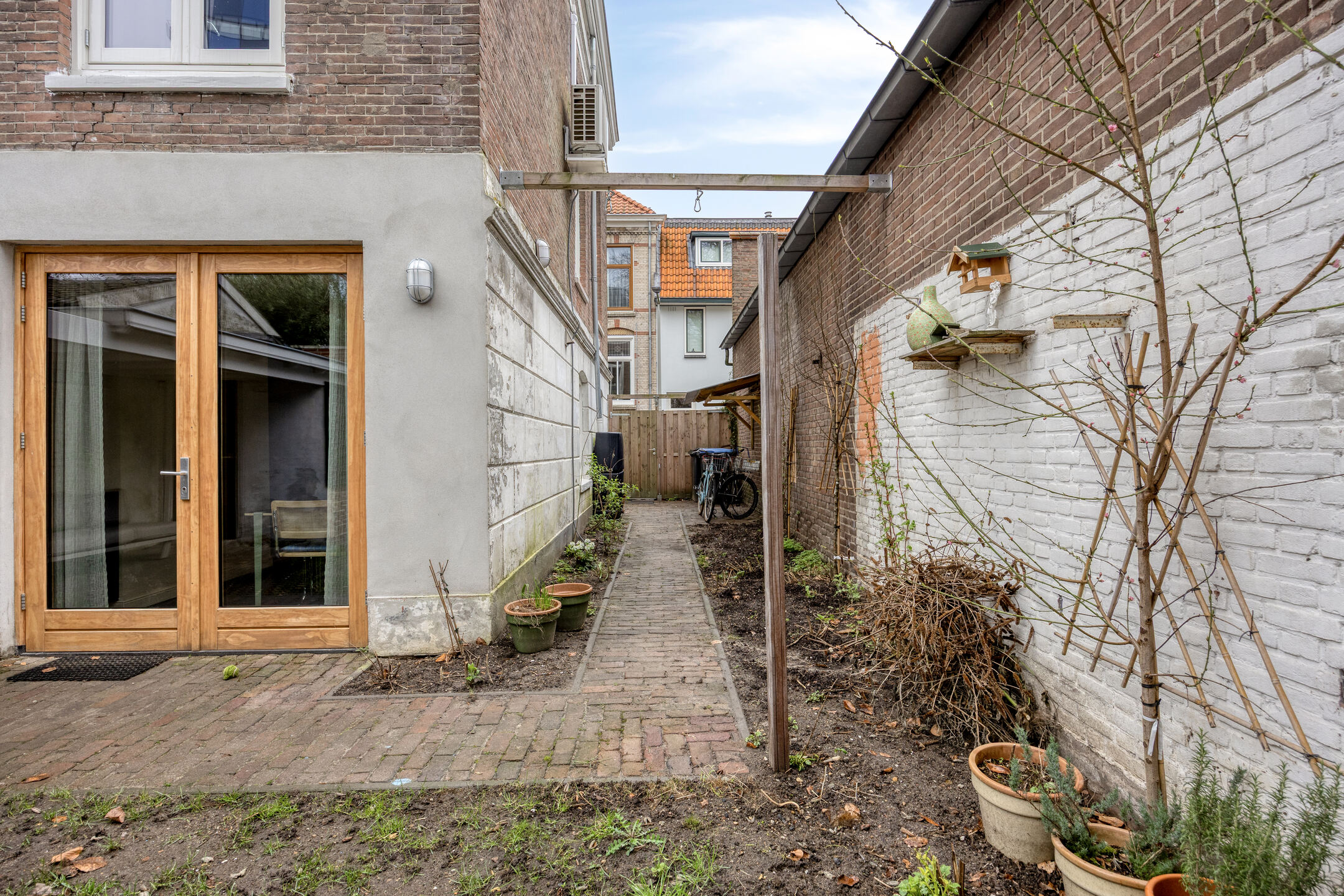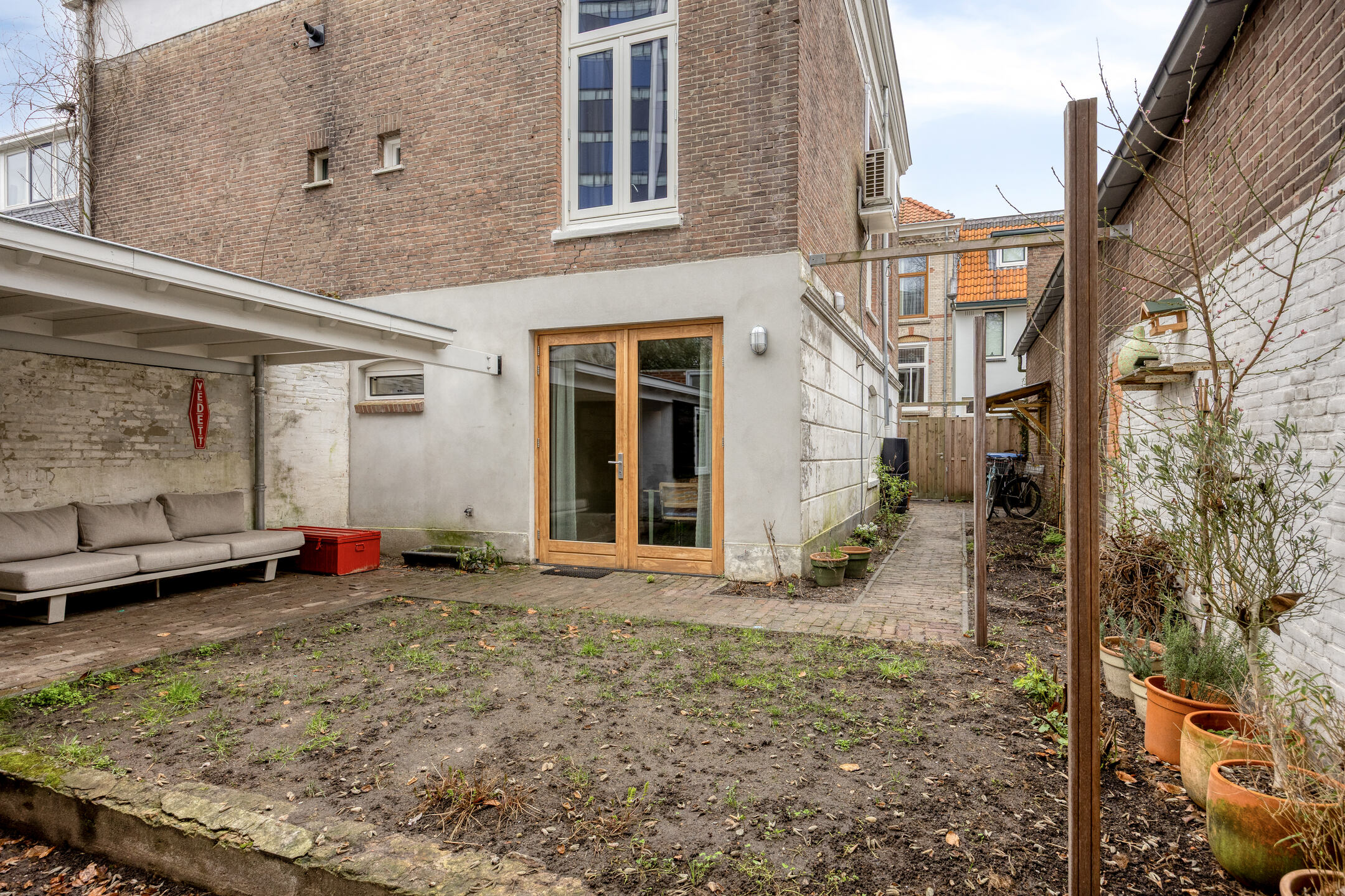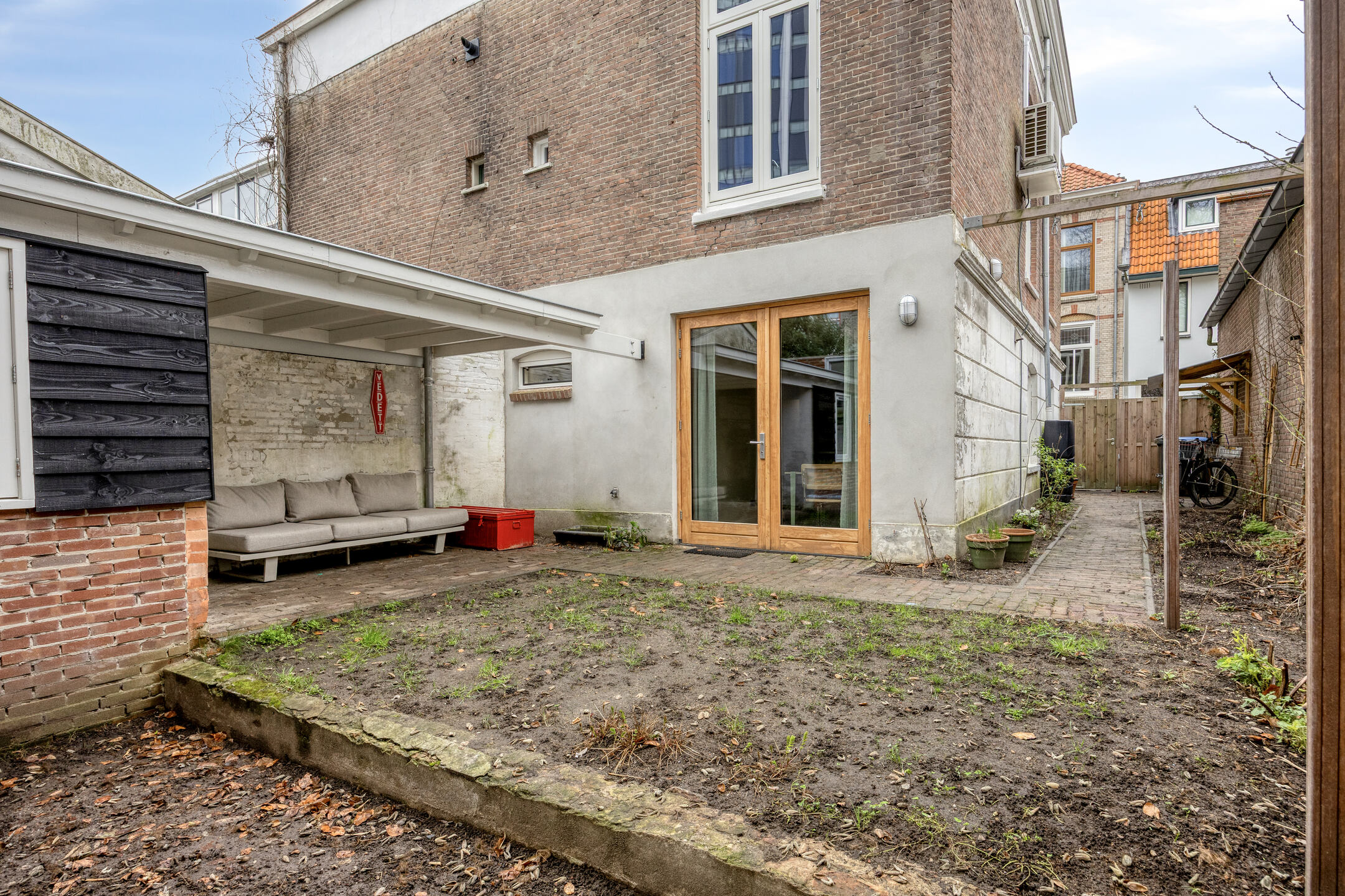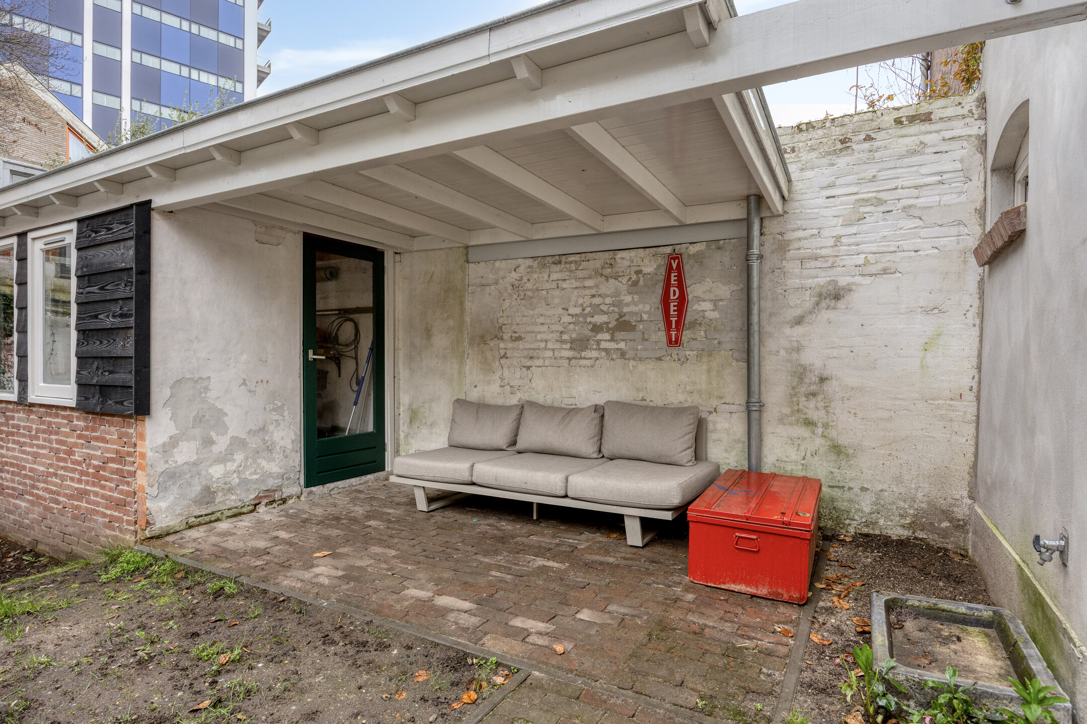Via de openslaande deuren bereik je de achtertuin, waar een sfeervolle overkapping zorgt voor een beschutte plek om het hele jaar door buiten te genieten. De tuin beschikt tevens over een praktische berging, bereikbaar via de overkapping.