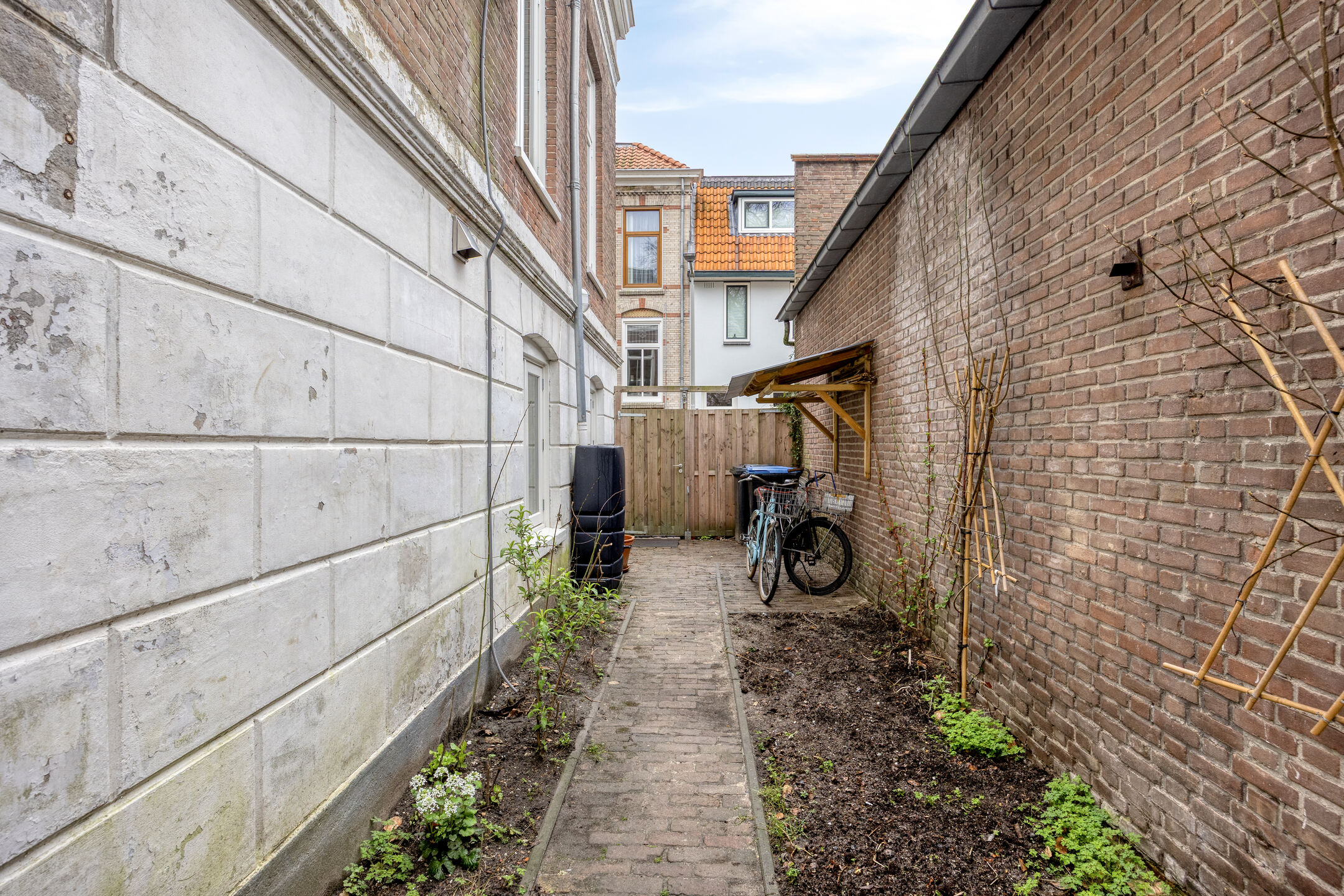 De achtertuin biedt een fijne, beschutte plek waar je in alle rust kunt genieten van het buitenleven. De combinatie van groen, functionaliteit en de overkapping maakt dit een verlengstuk van de woning.