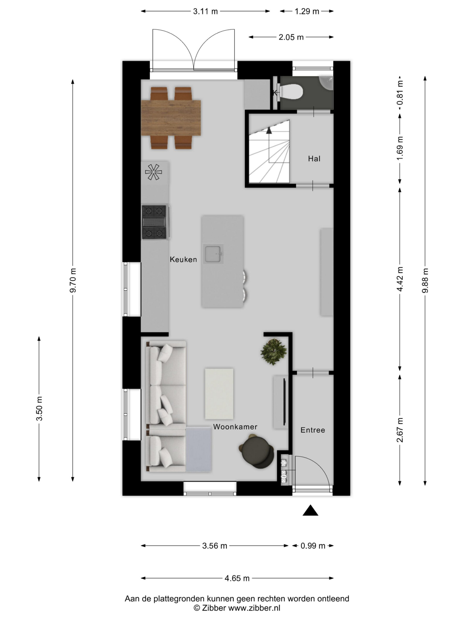 De entree leidt naar een verzorgde hal, waarna je wordt verwelkomd in de royale woonkeuken. Dankzij de grote raampartijen en openslaande deuren geniet deze ruimte van een prachtige lichtinval en een naadloze verbinding met buiten.