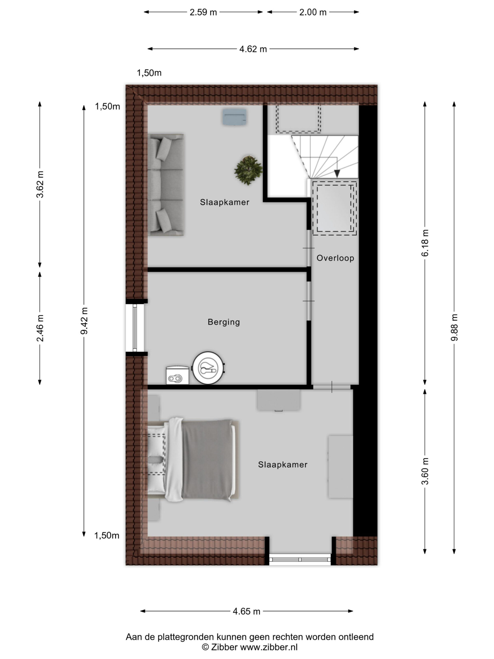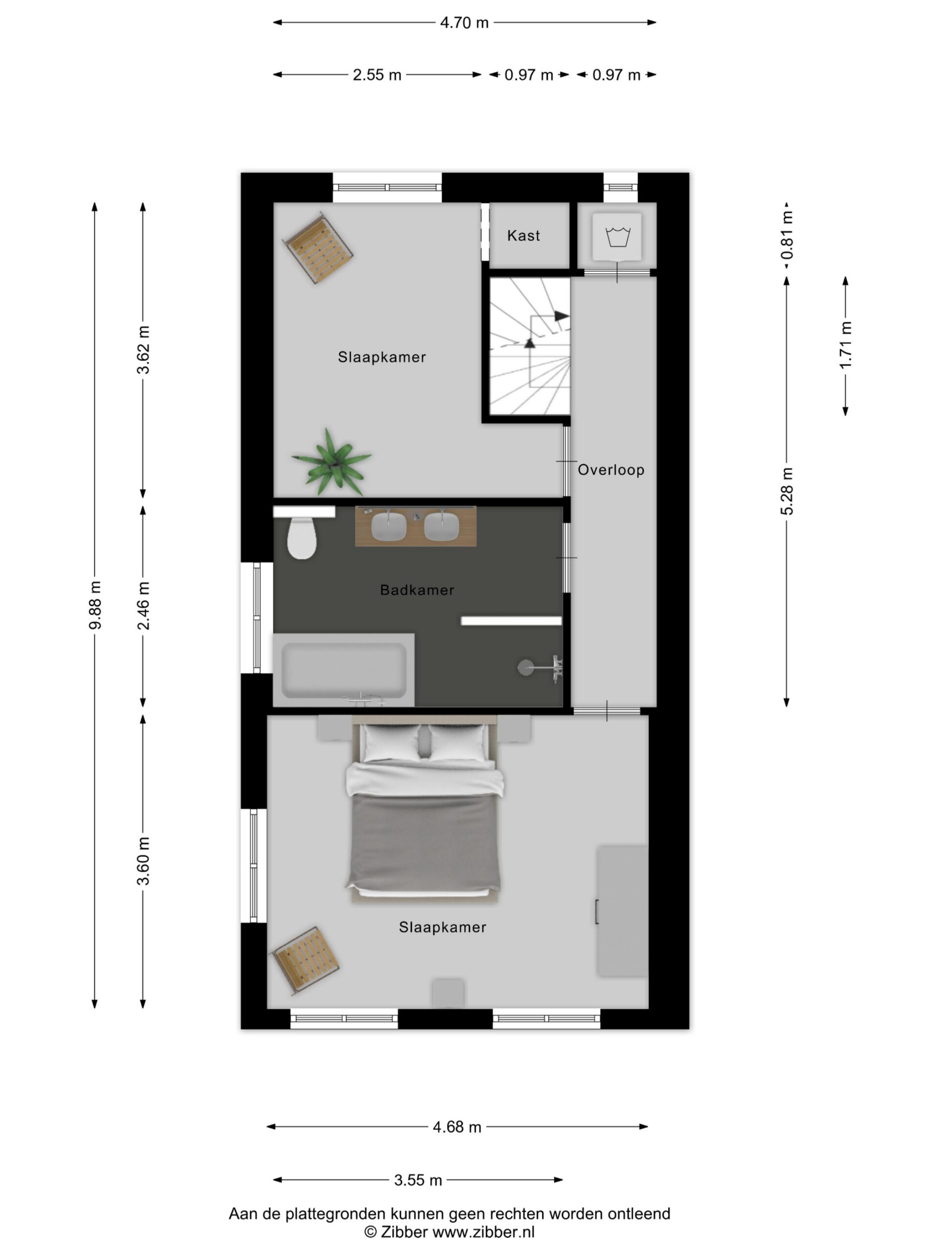 De tweede verdieping biedt volop mogelijkheden en kan geheel naar eigen wens worden afgewerkt. Hier bevinden zich een overloop, een slaapkamer met dakraam en een technische ruimte met de meterkast, elektrische boiler en de warmtepompinstallatie. Daarnaast is er een extra (derde) kamer die ideaal is als slaapkamer, werkkamer of hobbyruimte.