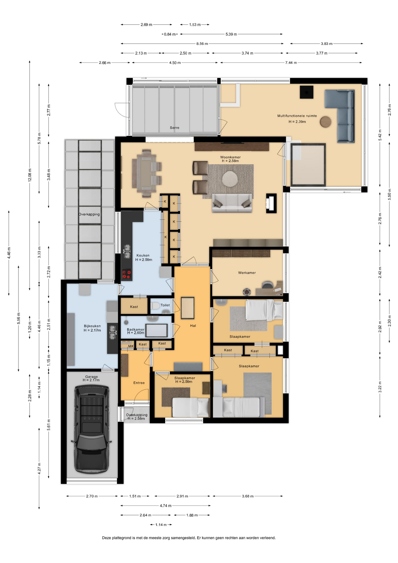 3 slaapkamers + werkkamer (of 4e slaapkamer)