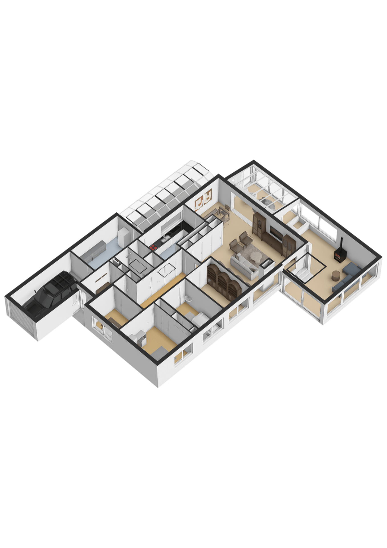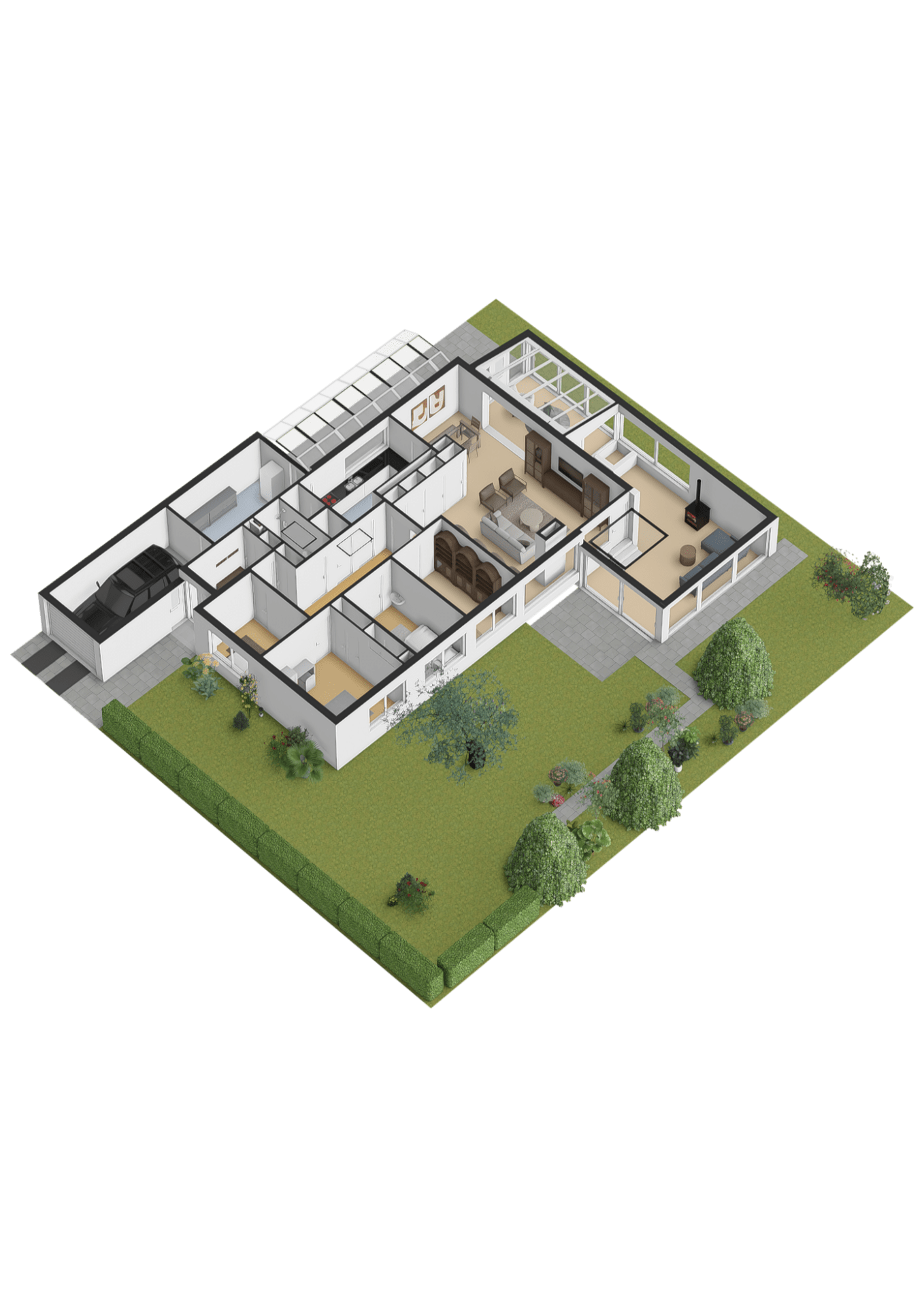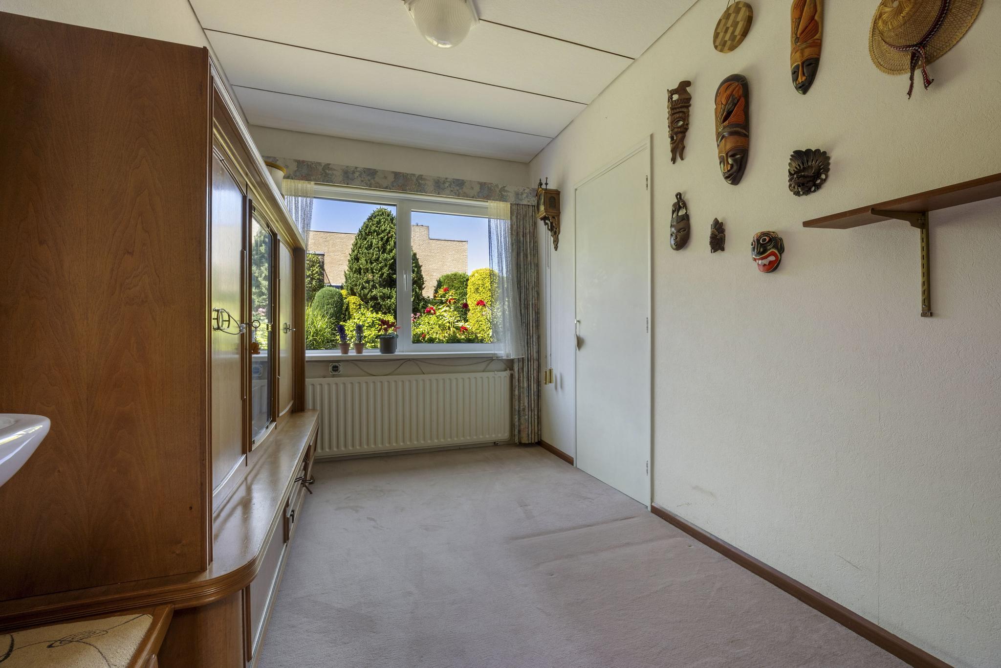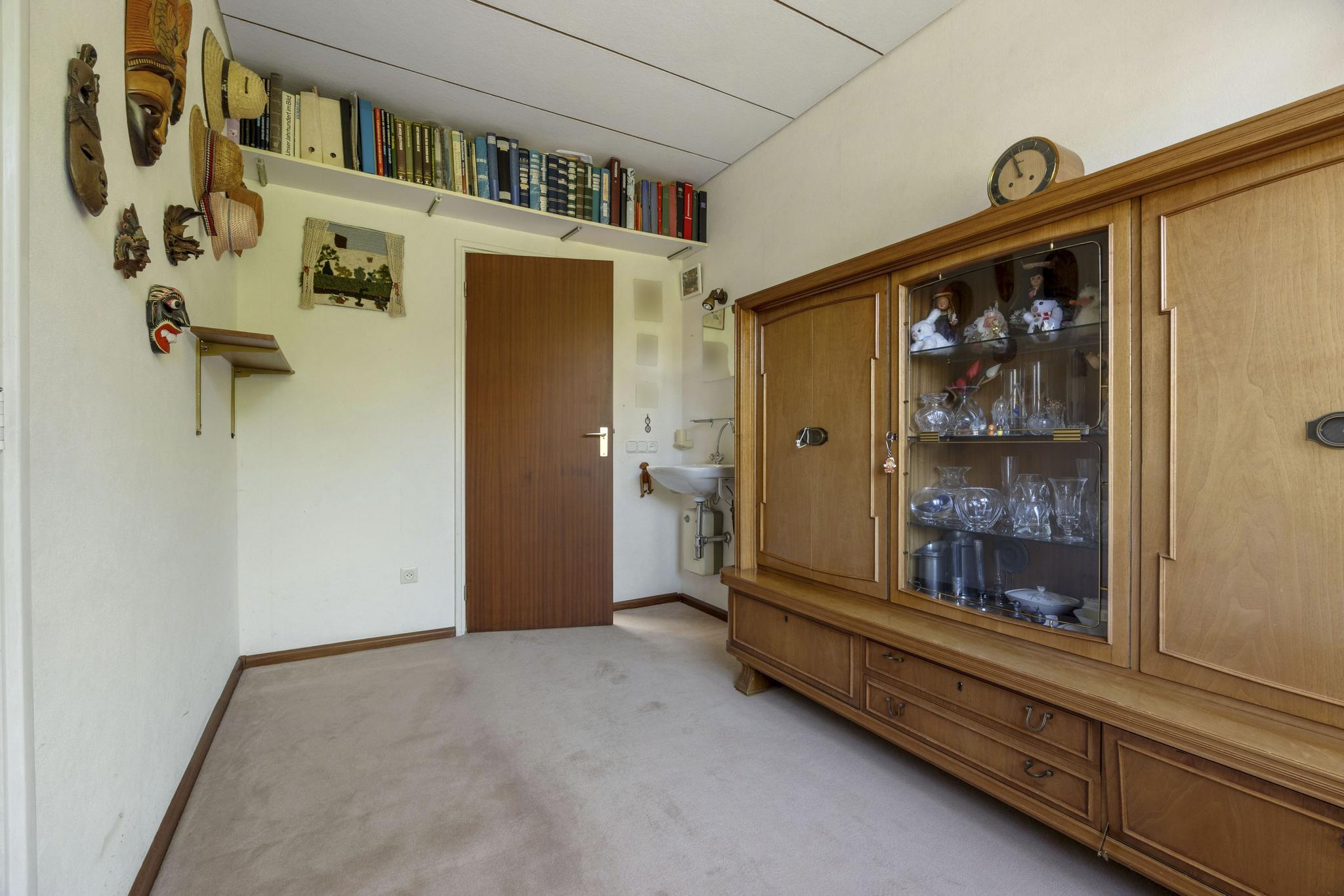 De bungalow heeft een prettige, praktische indeling. De ruime woonkamer met grote raampartijen zorgt voor veel lichtinval en een vrij uitzicht op de verzorgde achtertuin. De keuken grenst aan de eetkamer, ideaal voor gezellige diners of familiebijeenkomsten. Naast de keuken bevindt zich ook de bijkeuken, ideaal voor extra bergruimte.