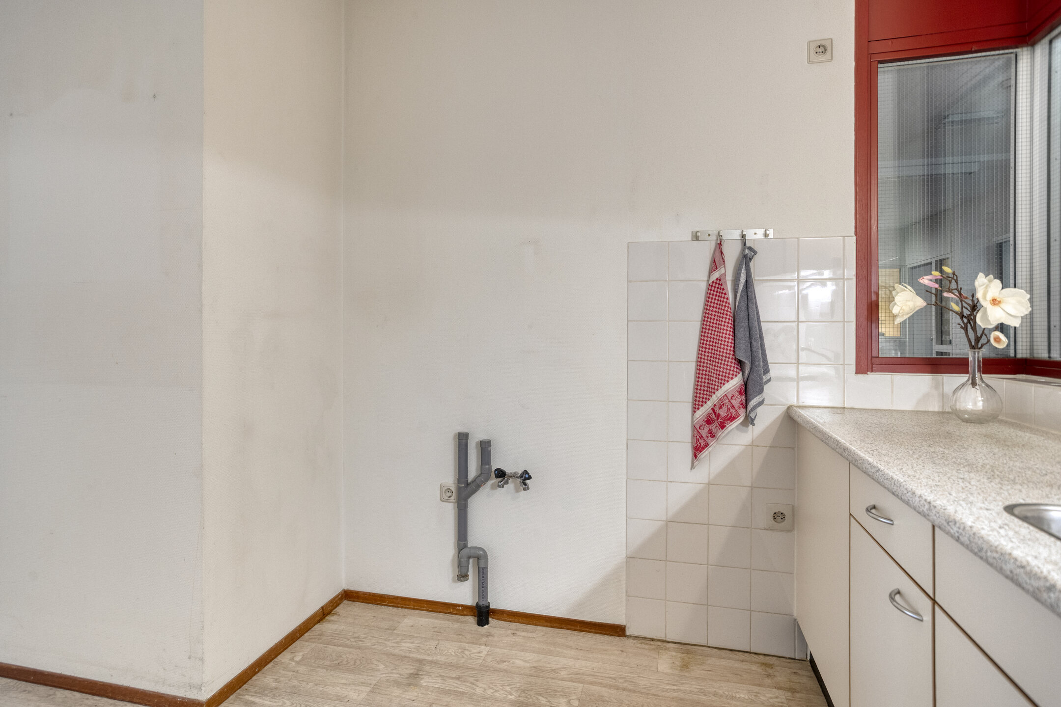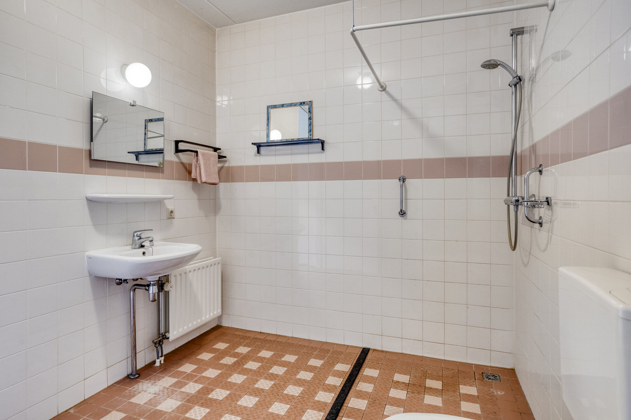 De 2e slaapkamer beschikt over een toegang naar de badkamer. De badkamer is voorzien van een douche en wastafel.