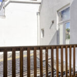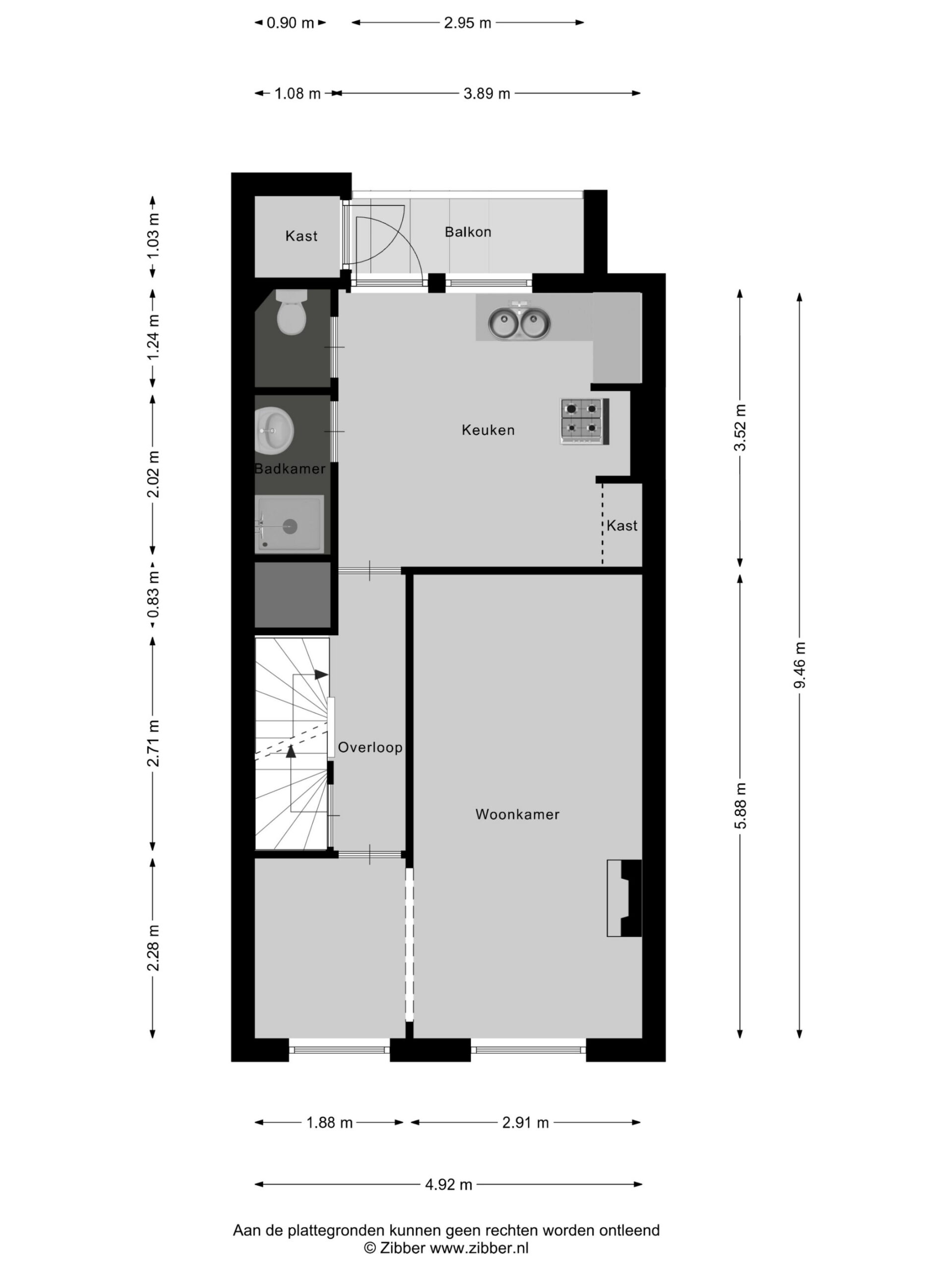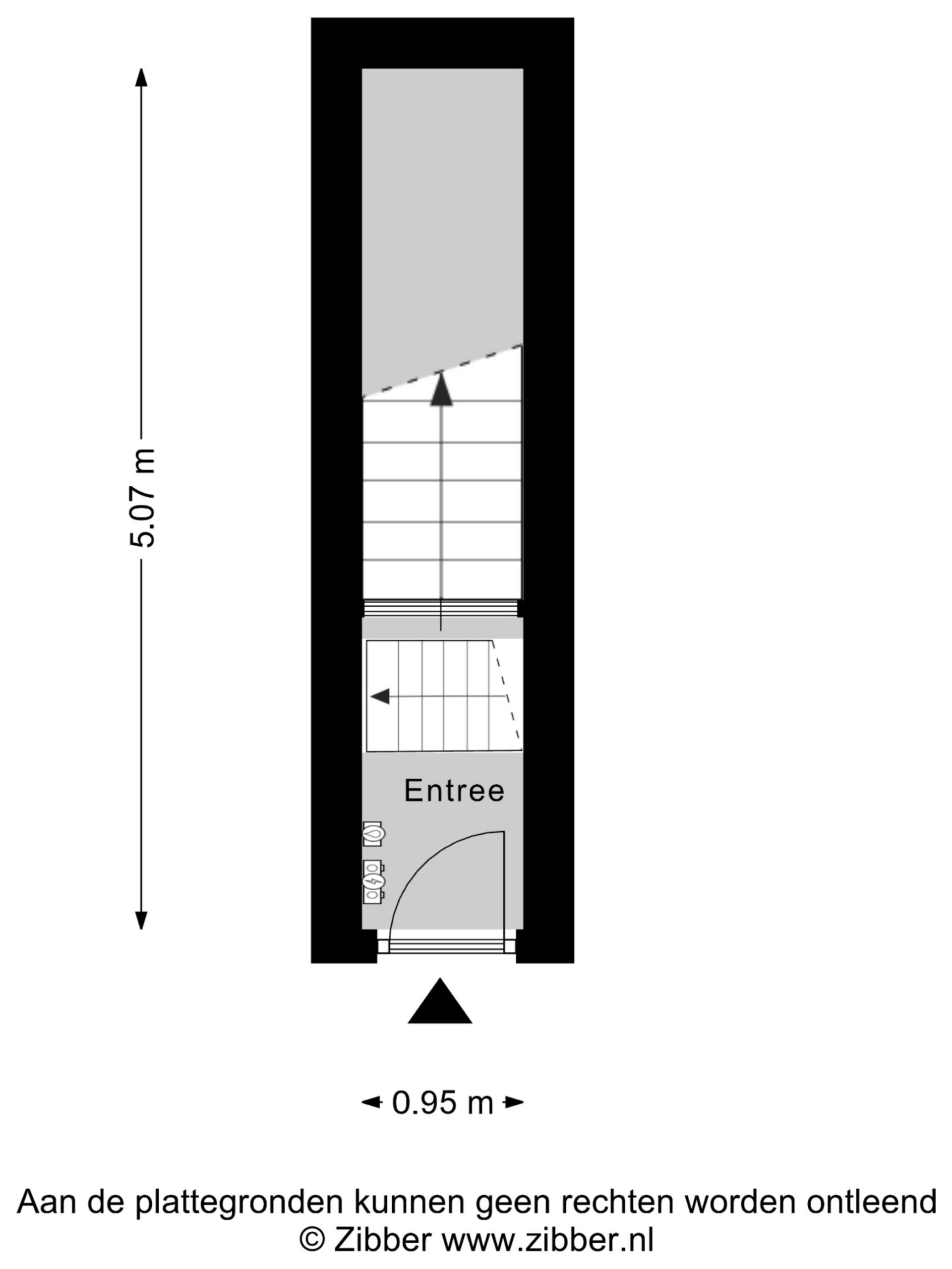 Je komt binnen via de eigen voordeur en betreedt de woning via een trapopgang naar de eerste verdieping.
