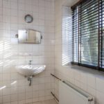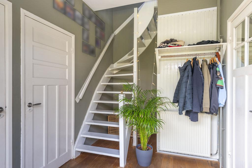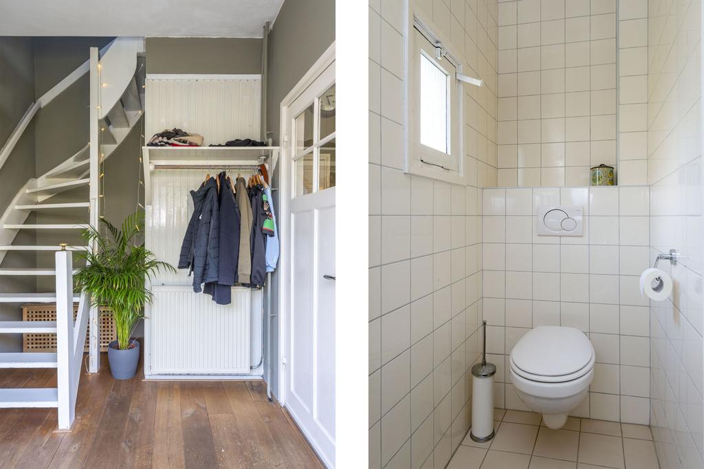 Entree, hal met toegang naar het toilet, badkamer, ruime bijkeuken, trapopgang naar de eerste verdieping en woonkeuken. De badkamer is voorzien van een vaste wastafel en ruime badkuip met douche en natuurlijk ventilatie. In de bijkeuken vindt u de aansluiting voor de wasmachine en heeft u toegang tot de tuin.