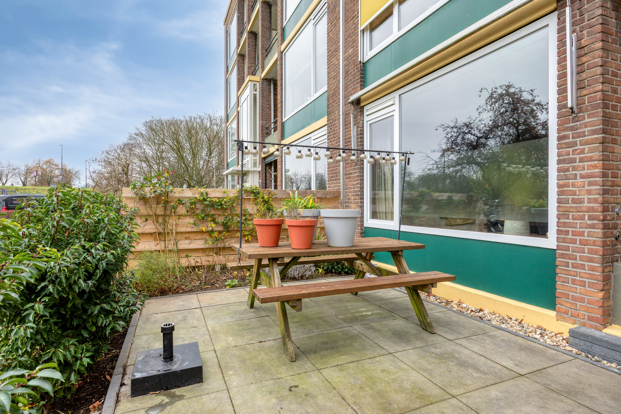 Boodschappen doe je in het naastgelegen winkelcentrum De Drieslag, waar ook elke woensdag een gezellige markt is. Fiets je iets verder dan kom je bij het zeer complete, overdekte winkelcentrum Kronenburg, lopend of fietsend ben je binnen enkele minuten in het centrum van Arnhem. Heerlijk wonen aan de voet van de Rijnbrug omgeven door groen? Dat kan in dit goed onderhouden en praktisch ingedeelde startersappartement.