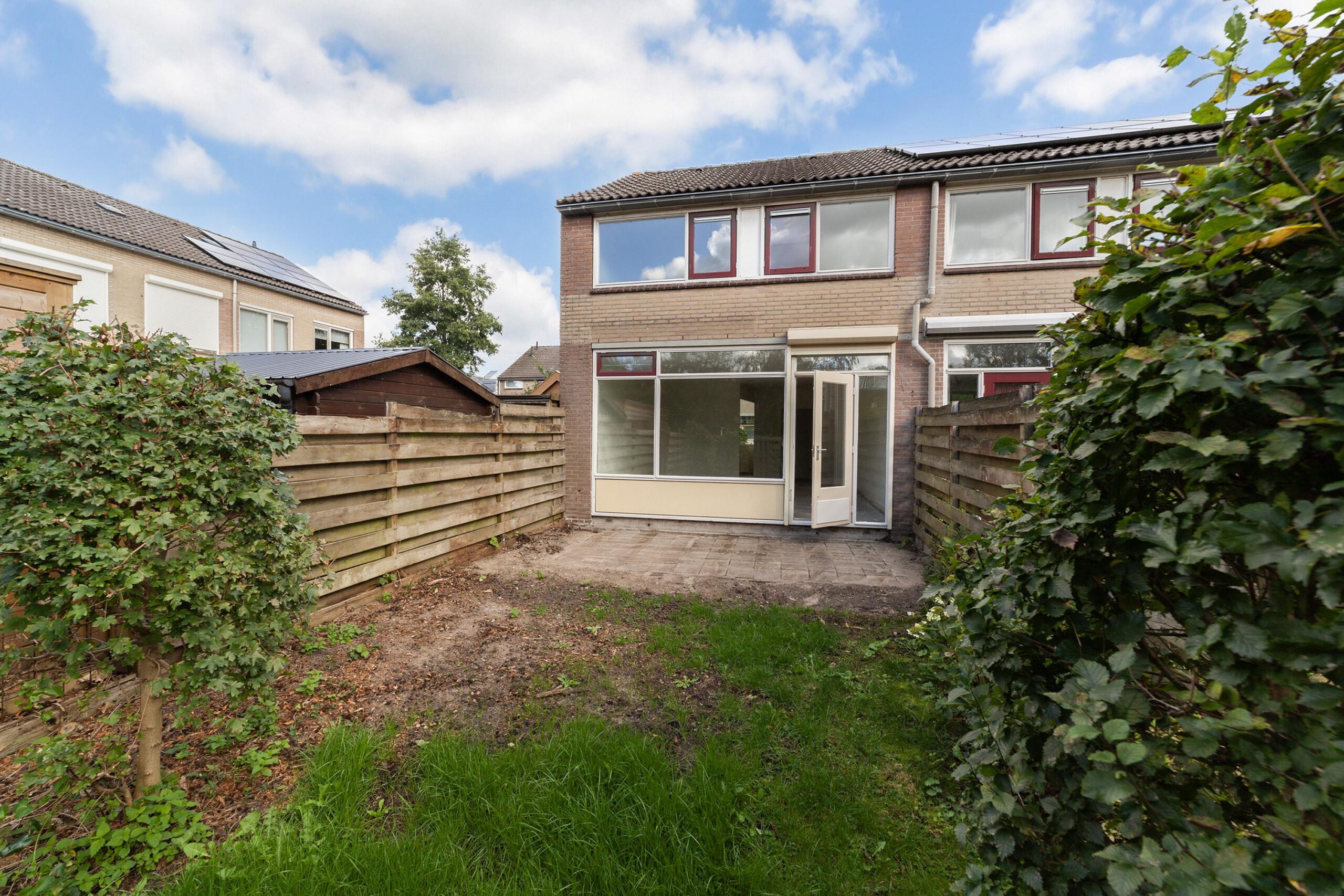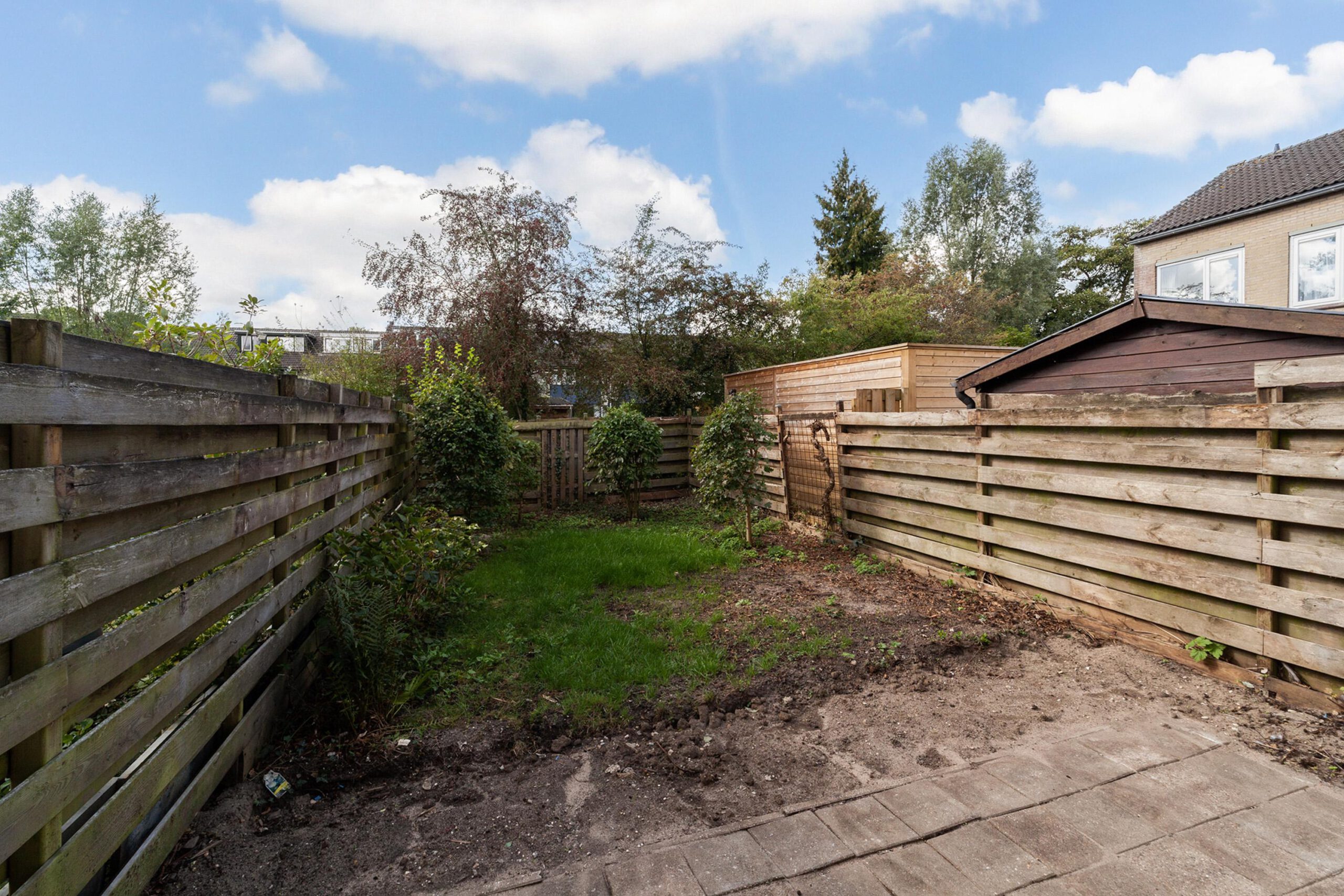 Diepe tuin welke bereikbaar is vanuit de woning. Tevens beschikt de woning over een aangebouwde stenen berging aan de voorzijde.