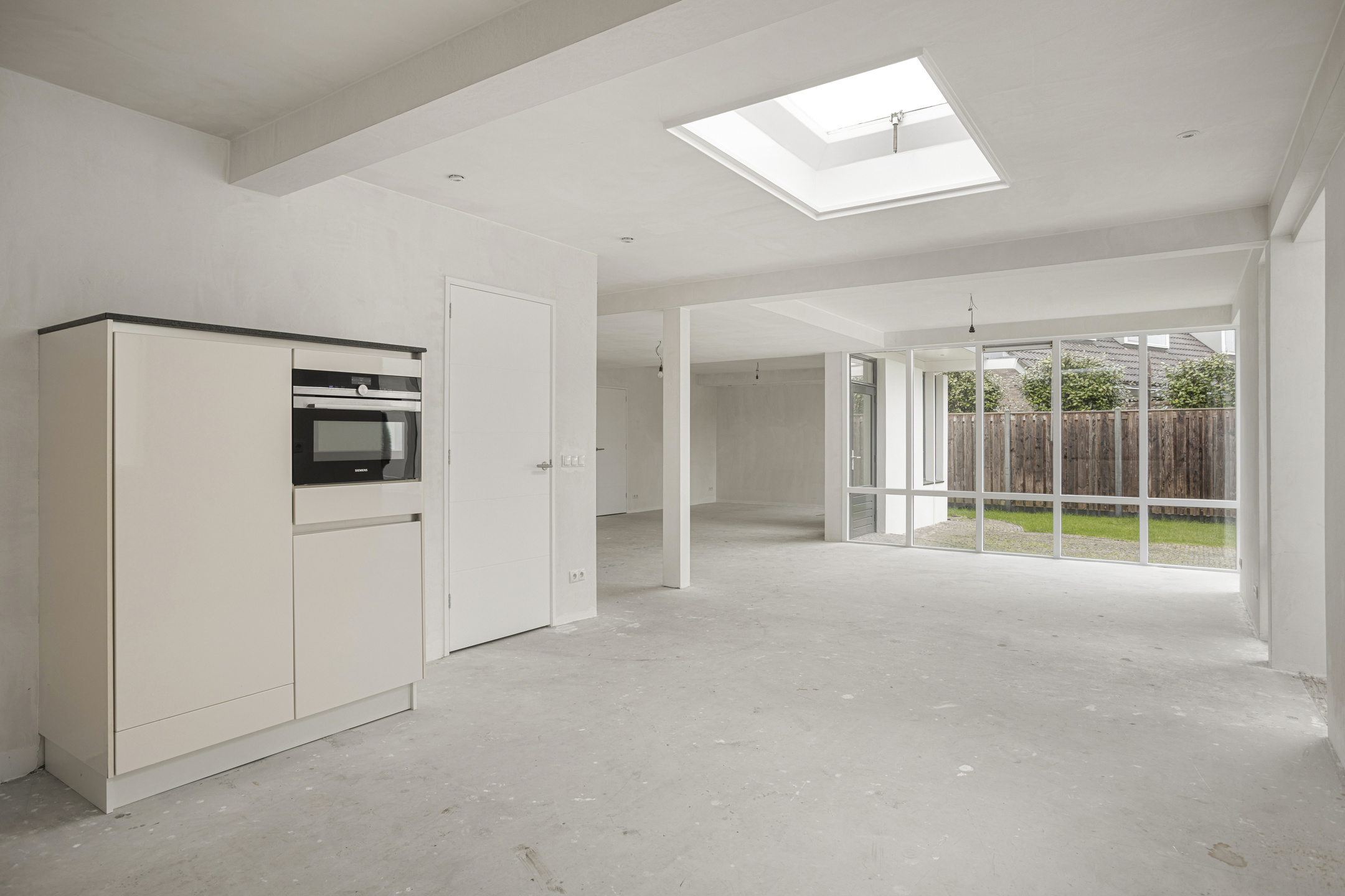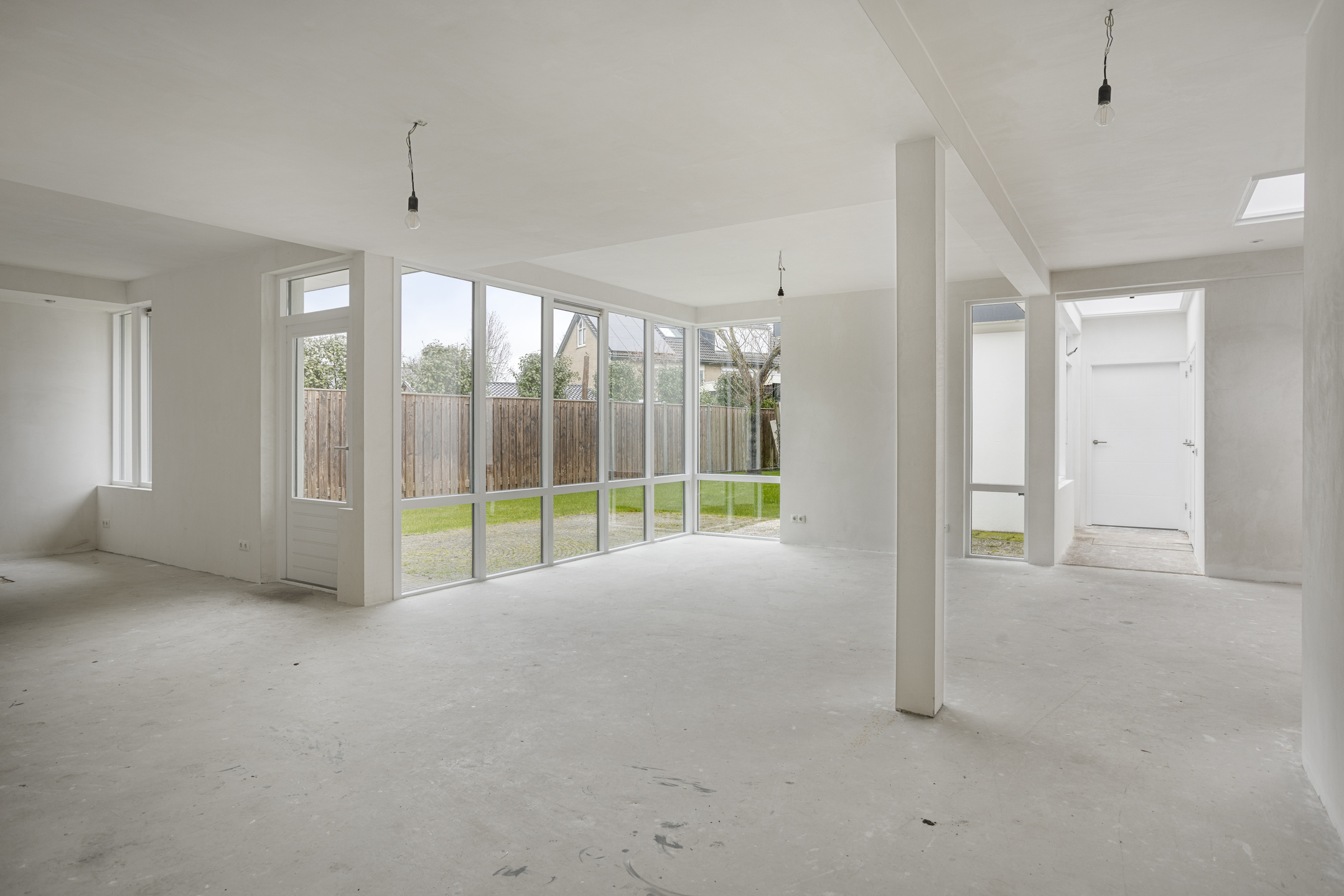 Bij binnenkomst in de ruime hal ervaart u direct de praktische indeling. Aan de voorzijde bevindt zich een ideale kamer voor een kantoor of logeerkamer. De woonkamer is heerlijk ruim en vloeit naadloos over in de open keuken, die is uitgerust met inbouwapparatuur.