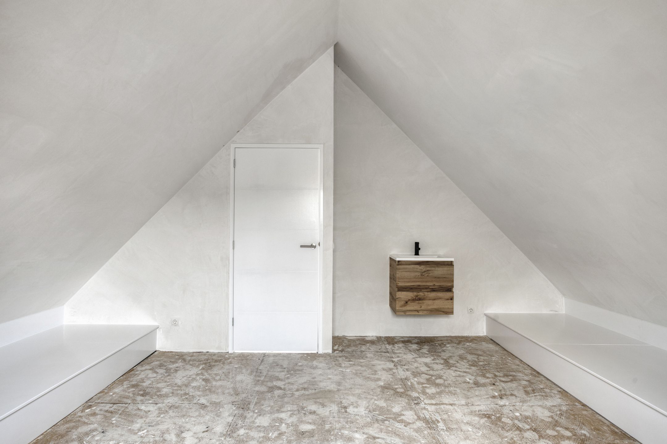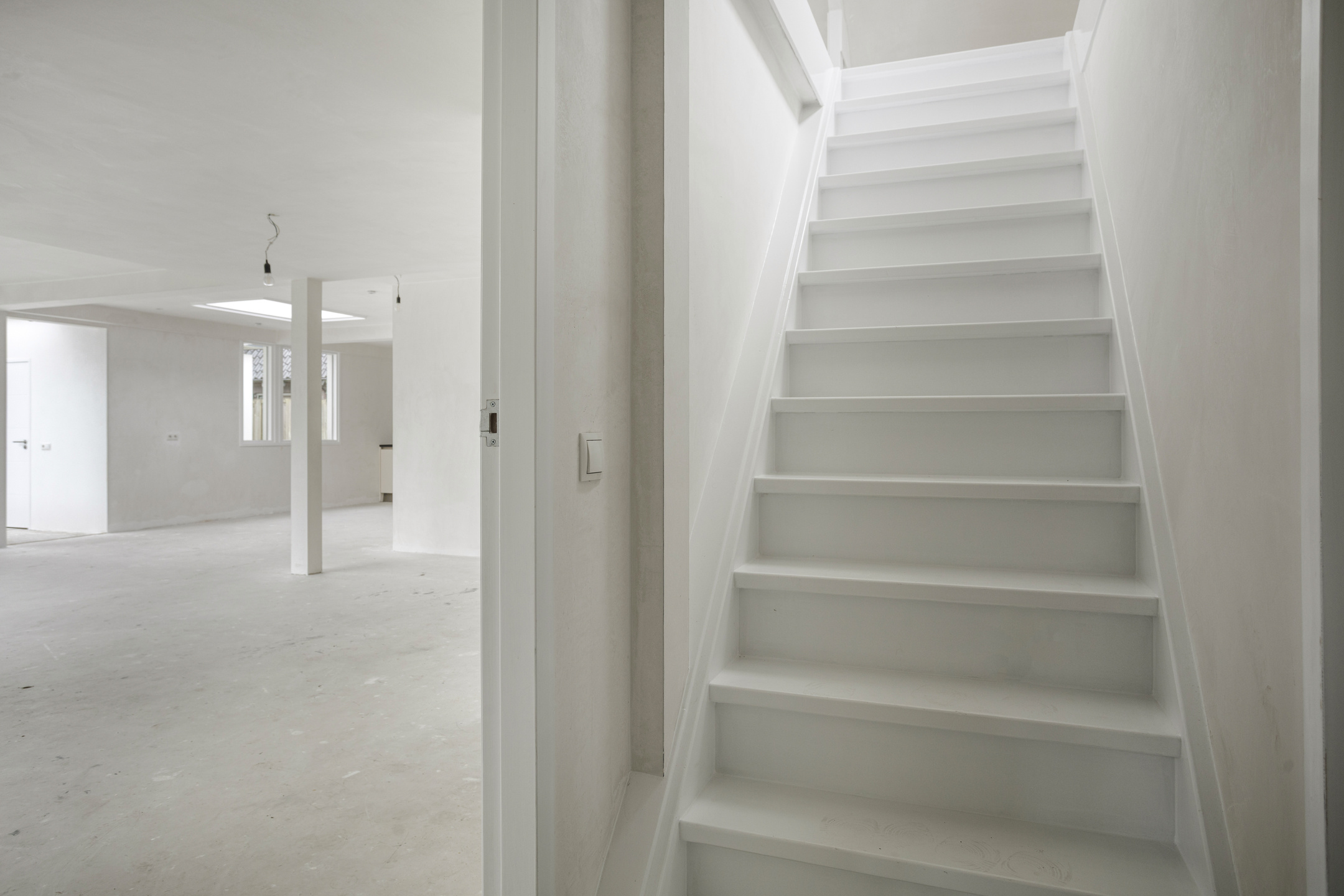 De eerste verdieping verrast met een grote, multifunctionele ruimte. Of u hier nu een extra slaapkamer, een atelier of een spectaculaire hobby-ruimte van maakt; de mogelijkheden zijn eindeloos. Er is hier zelfs al een wastafel aanwezig.