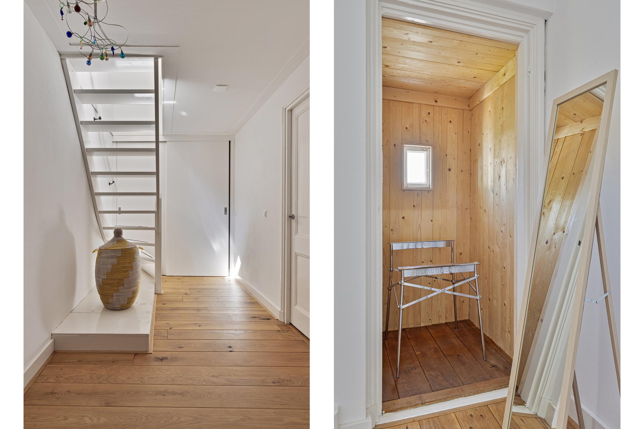 Vaste trap naar de derde verdieping. Fijne studeer of slaapkamer en toegang tot het geweldige dakterras met volop privacy en zicht over het prachtige Arnhem.