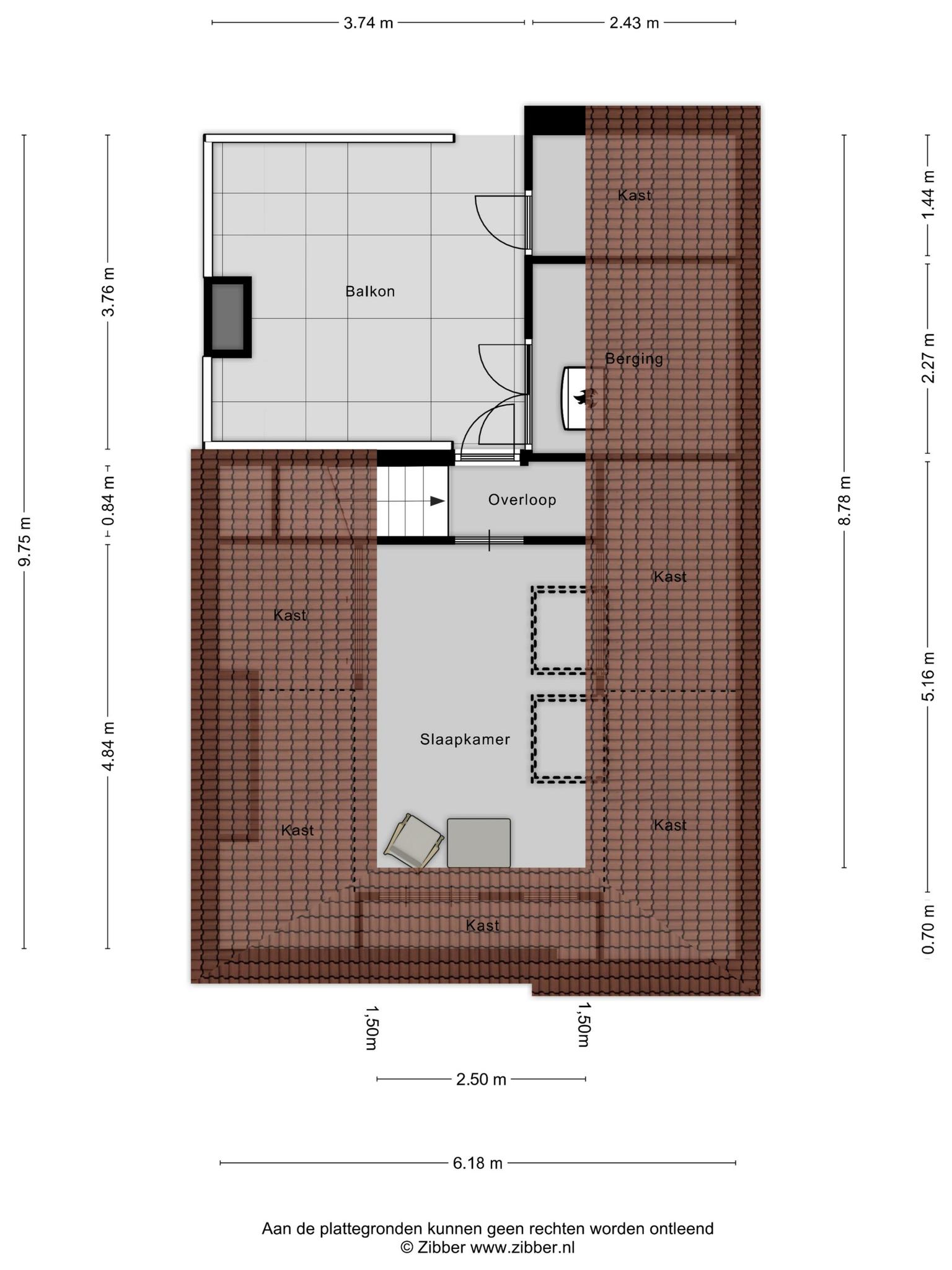 - inloopkast is eenvoudig terug te brengen naar een extra slaapkamer;