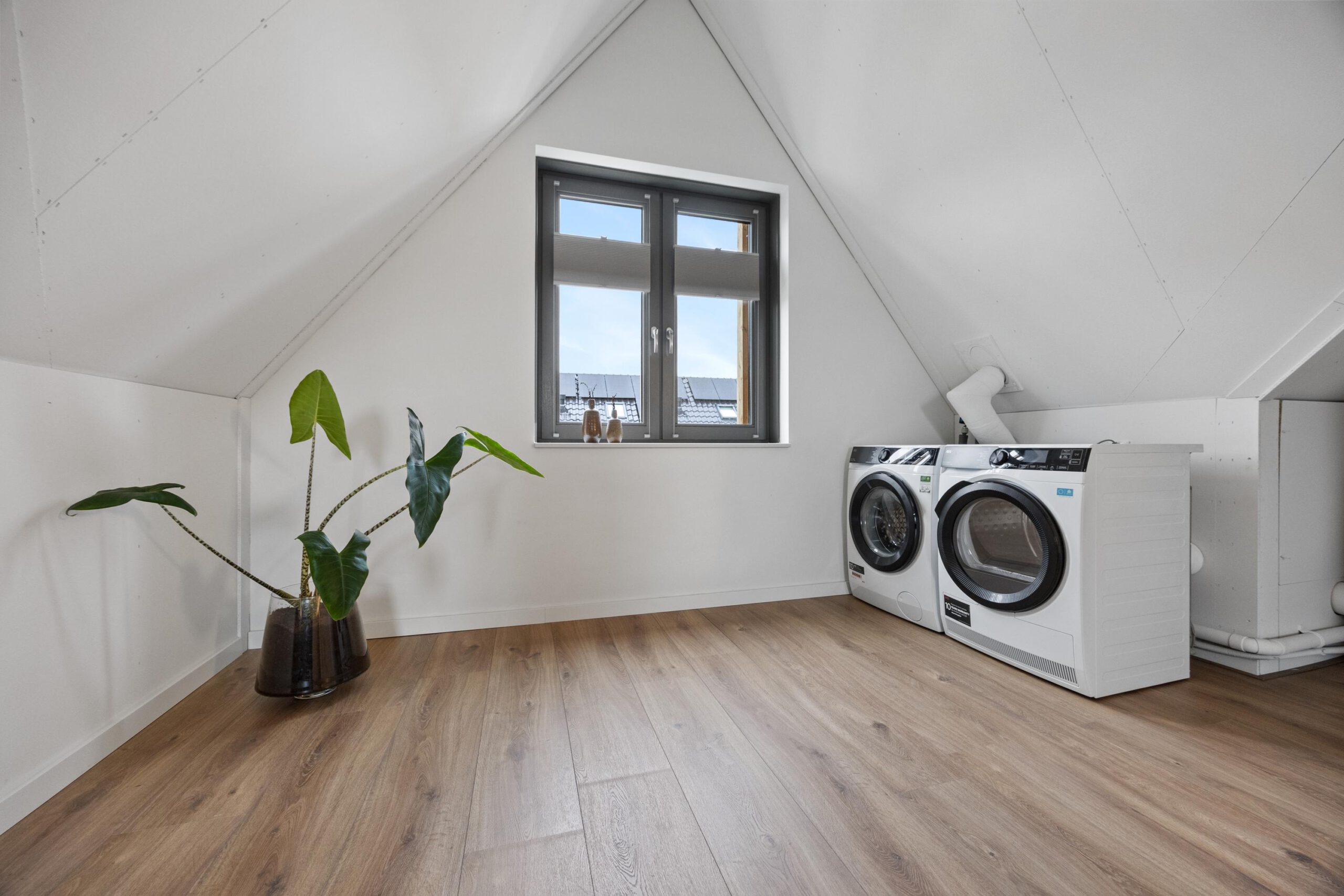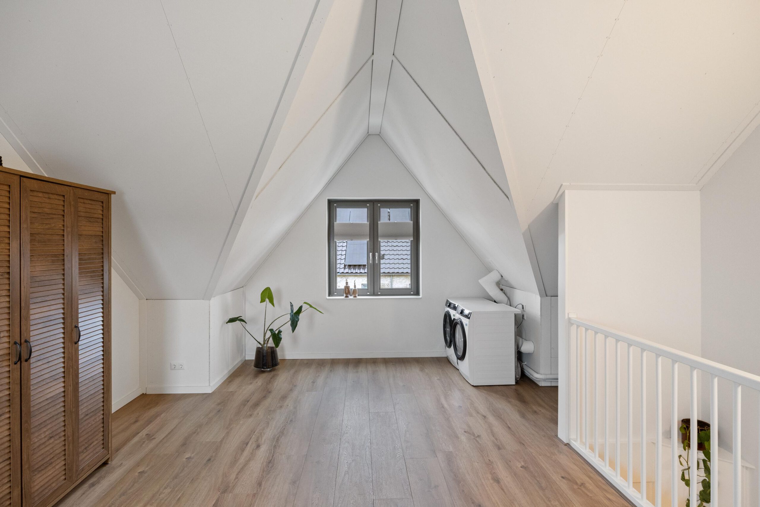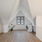 Prachtige open zolder met plek voor de wasmachine en droger. De ruimte kan uitstekend worden ingedeeld naar twee mooie slaapkamers. Middels de mooie kapconstructie ademt de zolderruimte een prettige sfeer.