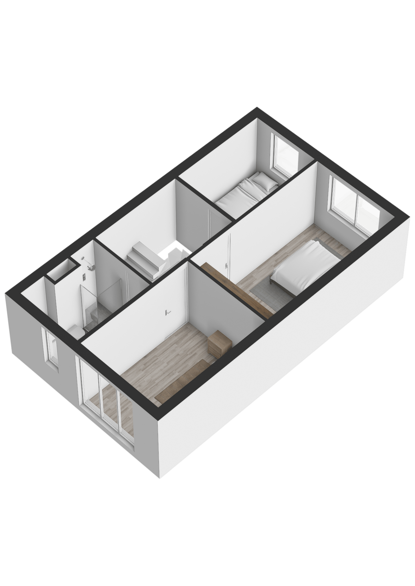 Ruime overloop, masterbedroom en daarnaast nog 2 ruim bemeten slaapkamers. De luxe badkamer is prachtig gestyled en is voorzien van een inloopdouche, bad, wastafelmeubel en een wandcloset.
