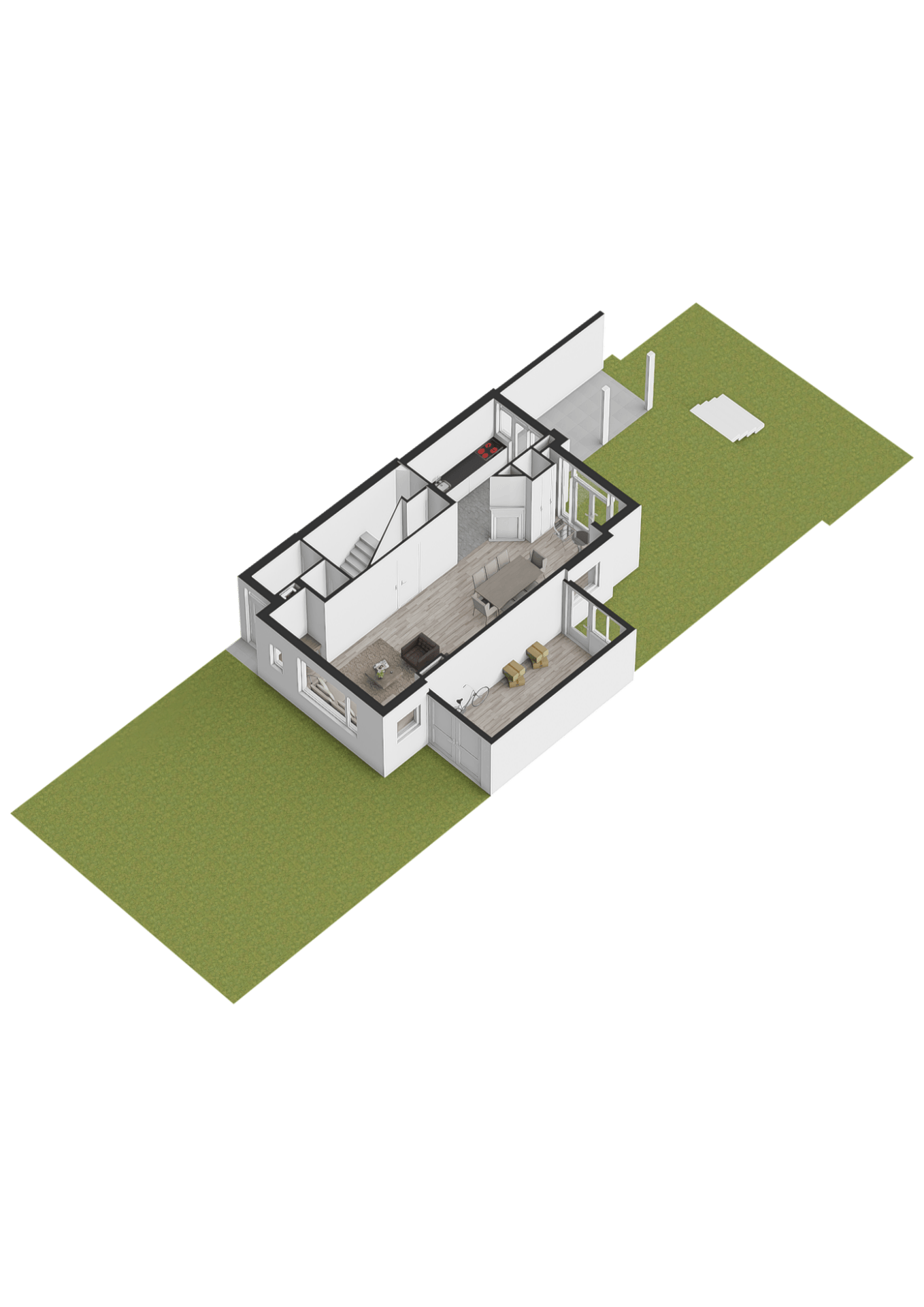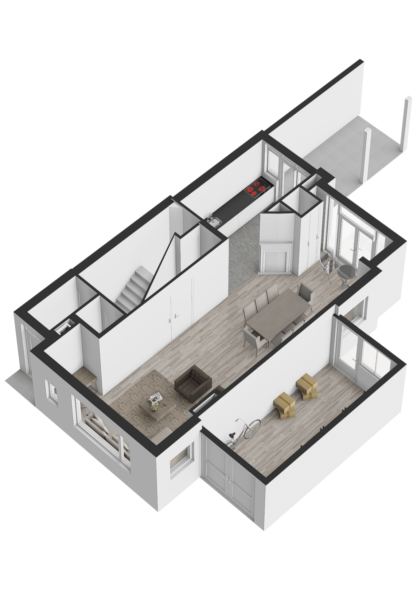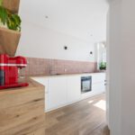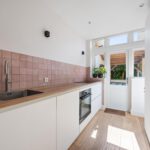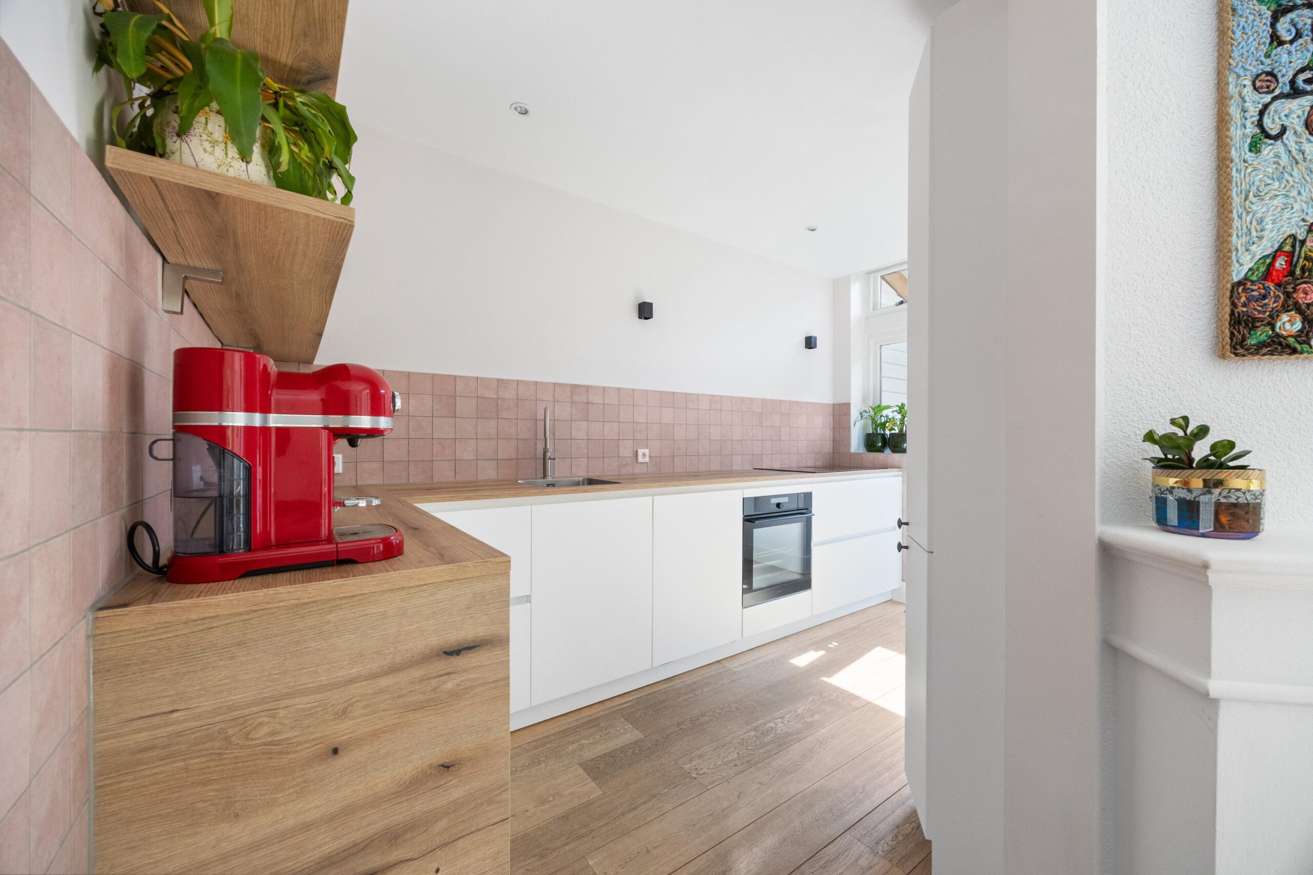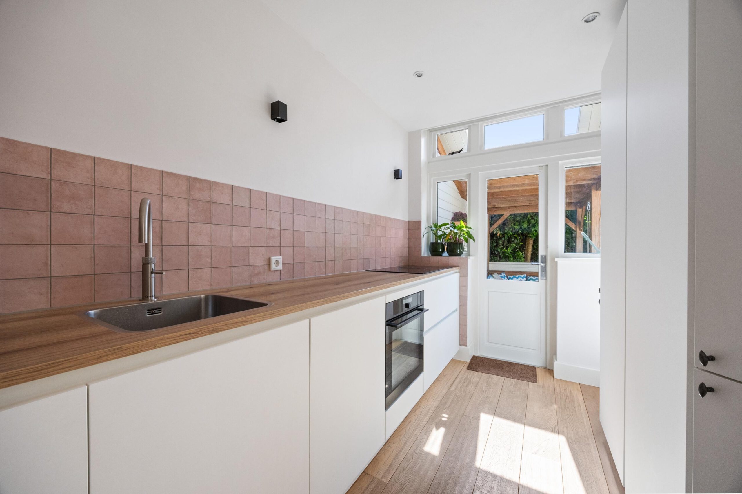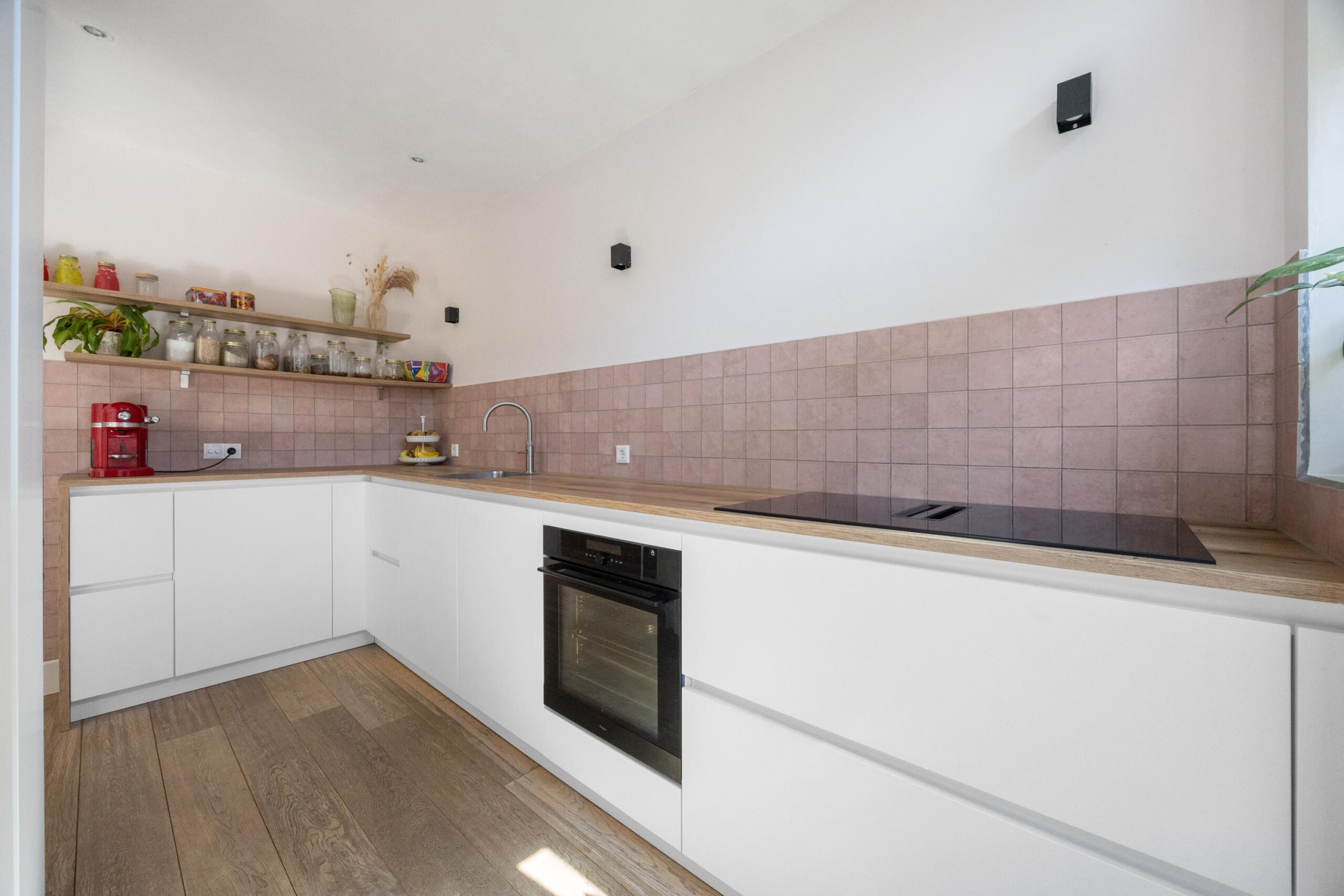 De ruim opgezette hoekkeuken bevindt zich eveneens aan de achterzijde en is van alle gemakken voorzien. Dankzij de open indeling en directe toegang tot de overkapping in de tuin is dit een ideale plek voor wie houdt van koken én het buitenleven. Onder de overkapping geniet je beschut van het buitenzijn.