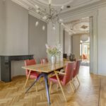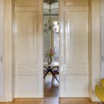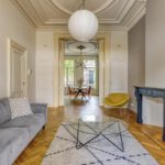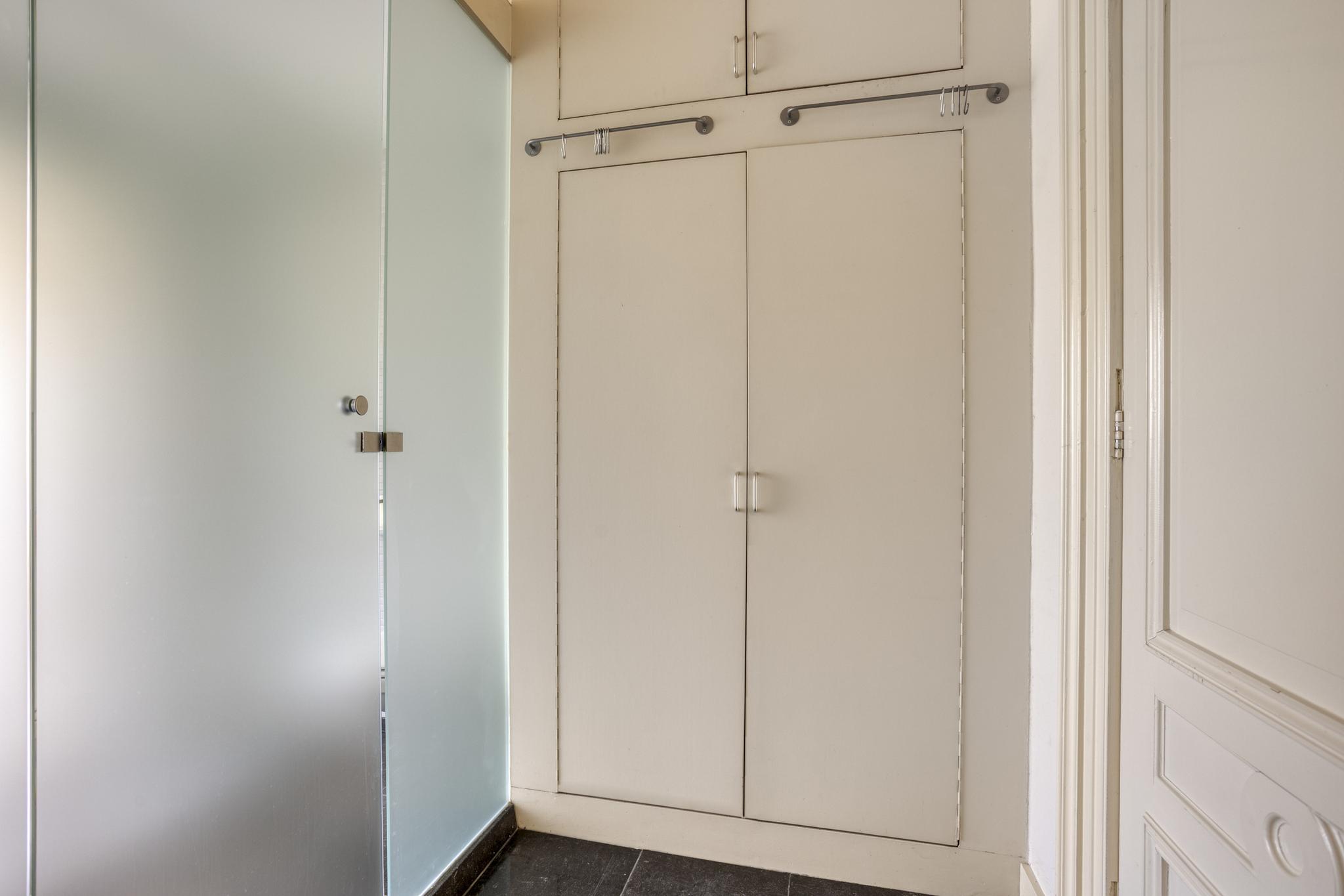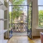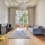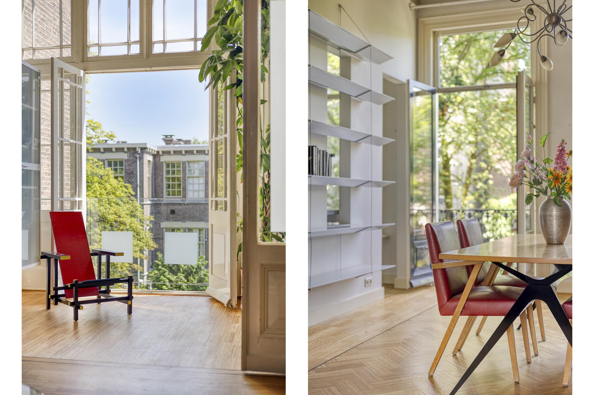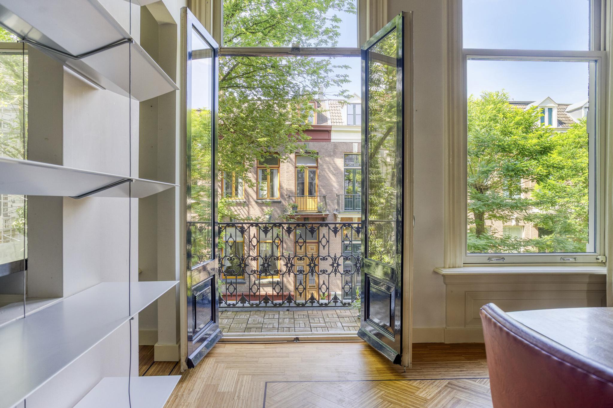 Royale kamer en suite met schuifdeuren, hoge geornamenteerde plafonds, vanuit de voorkamer stap je op het westen gelegen voorbalkon, half open volledig ingericht, authentieke schouwen.