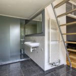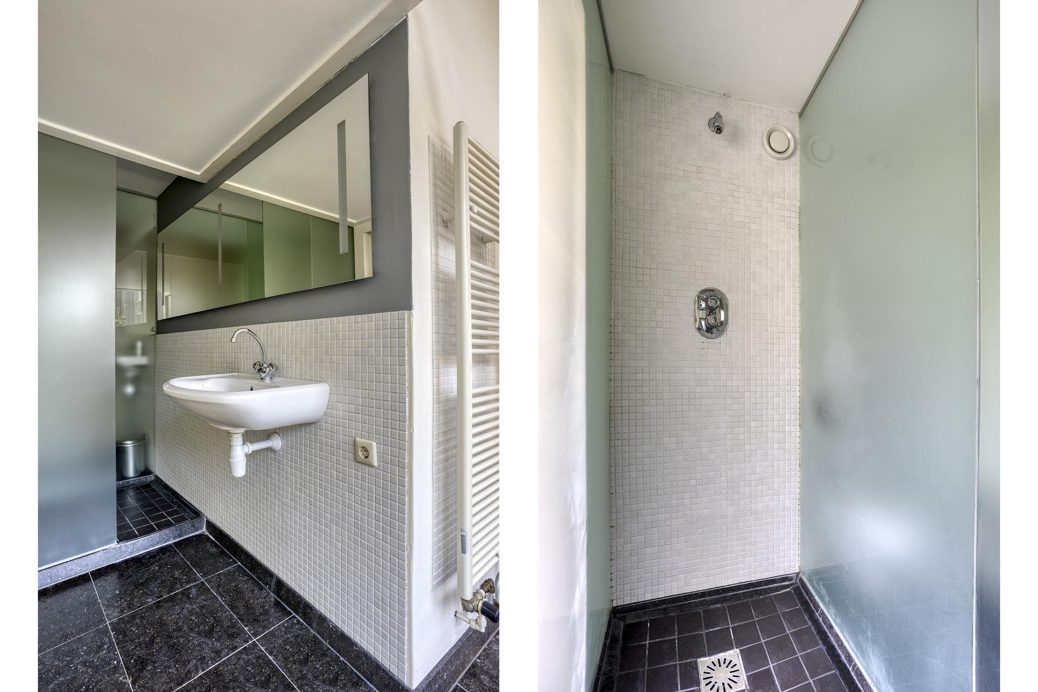 Royale hoogslaper, aangrenzende badkamer met douche en wastafel.