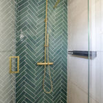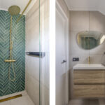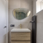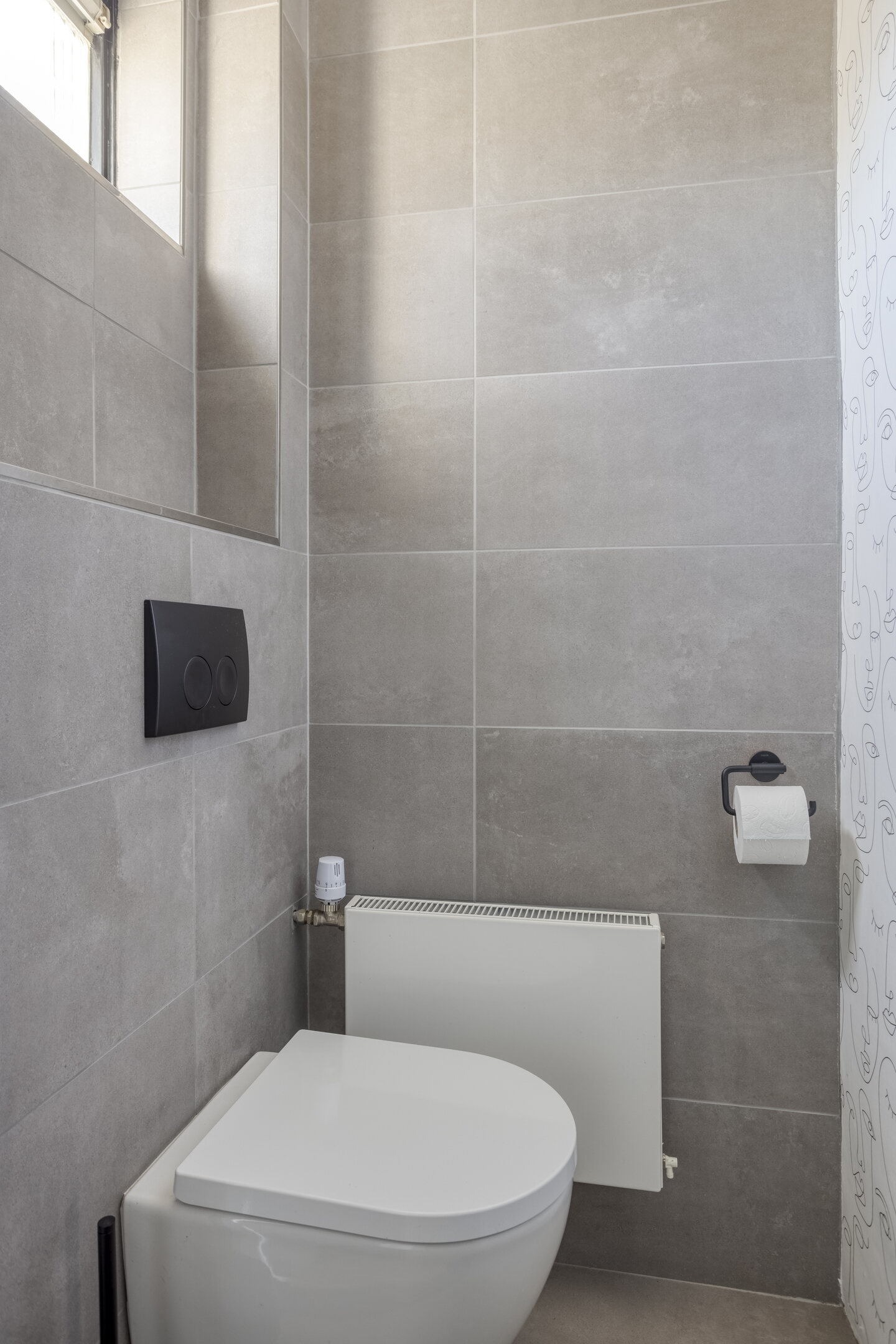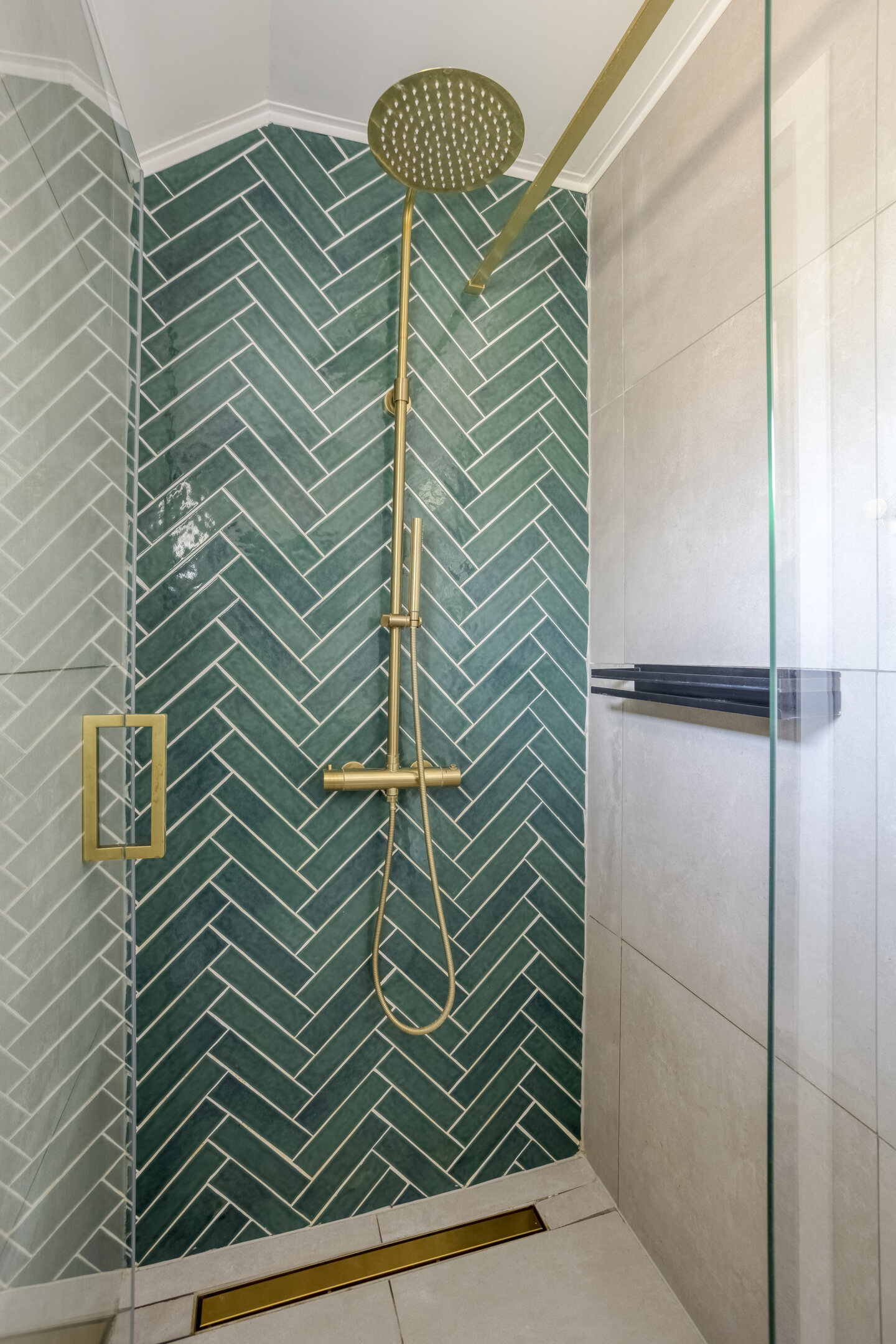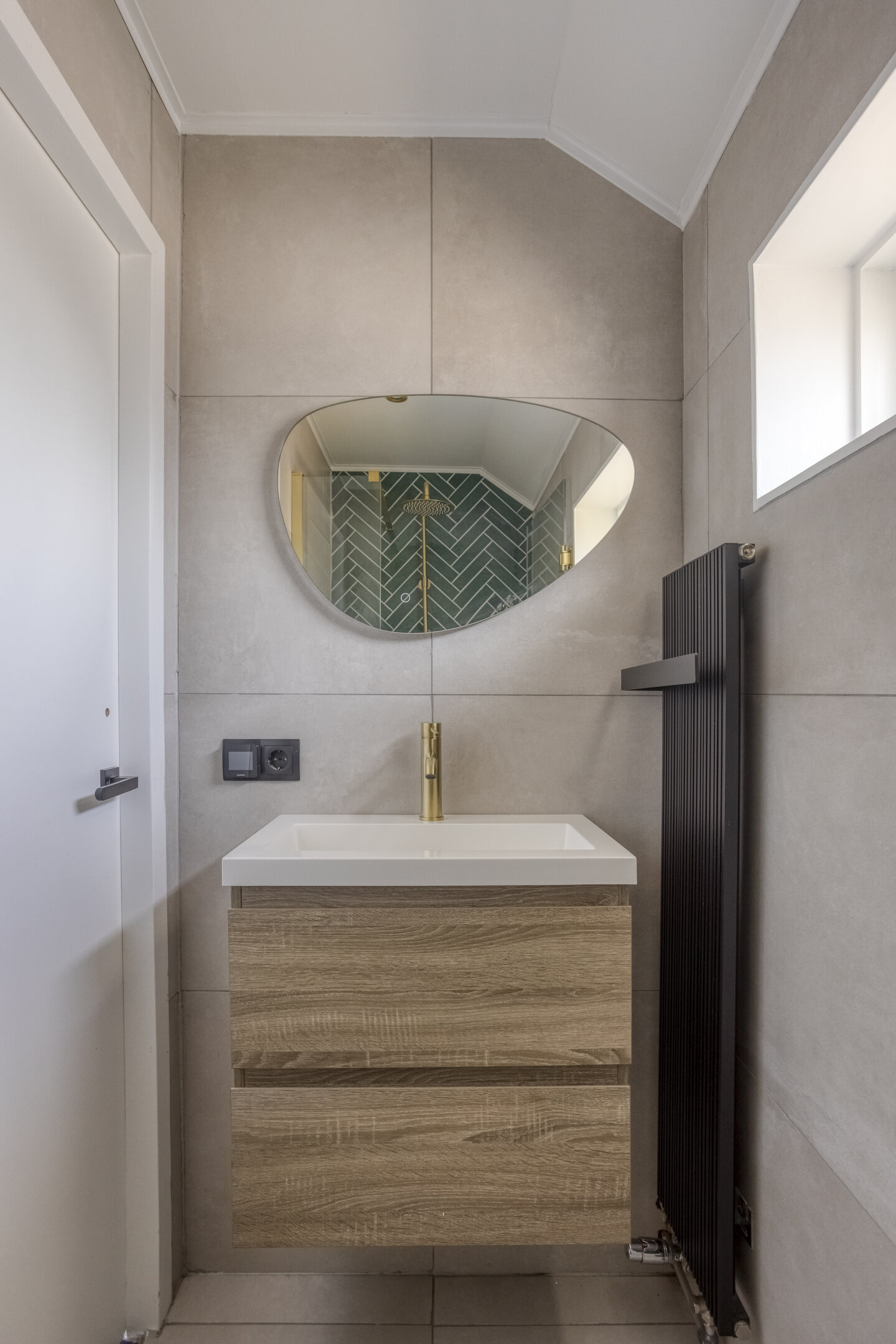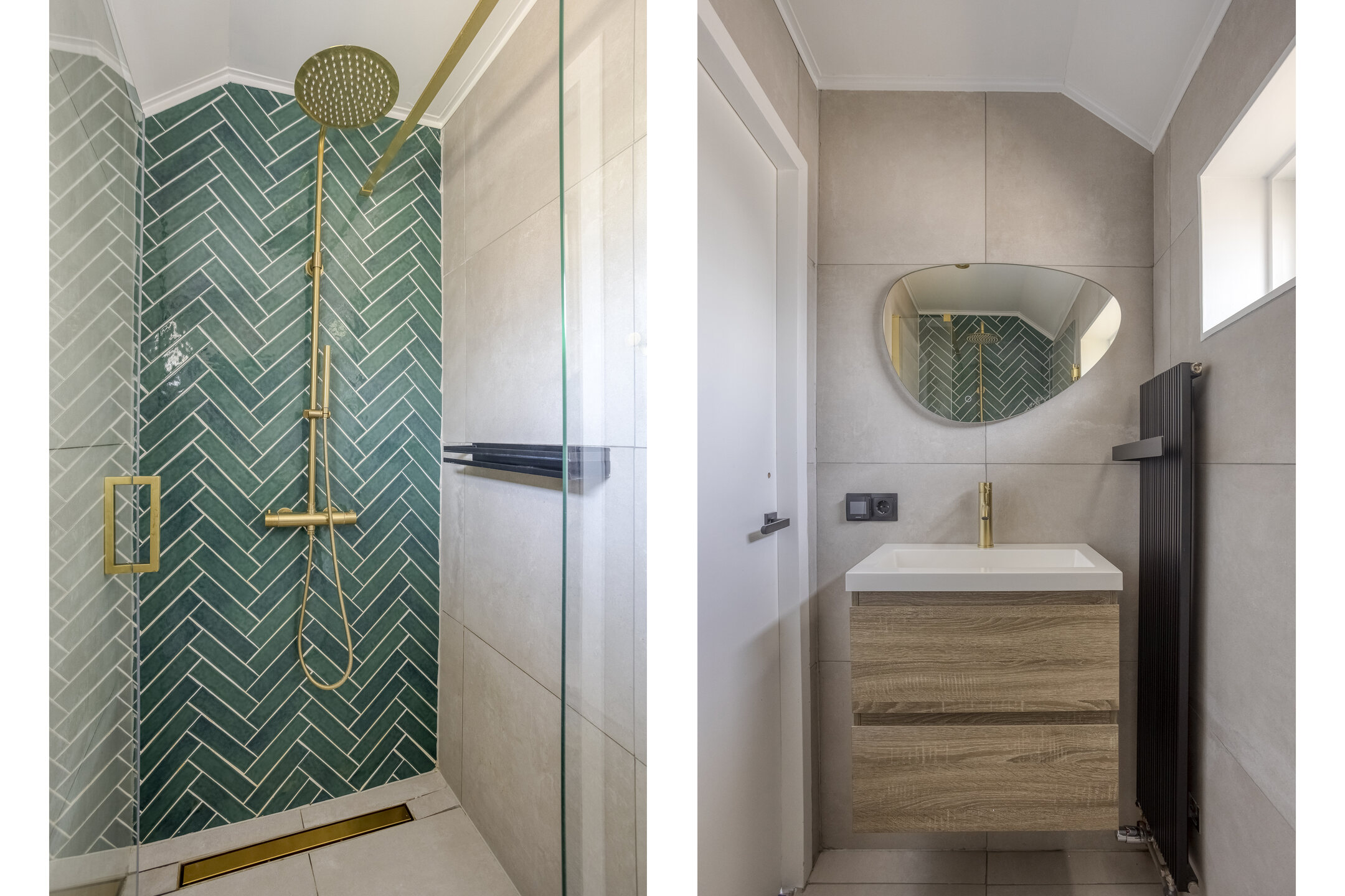 Overloop, 3 slaapkamers en moderne badkamer met wastafel en inloopdouche.