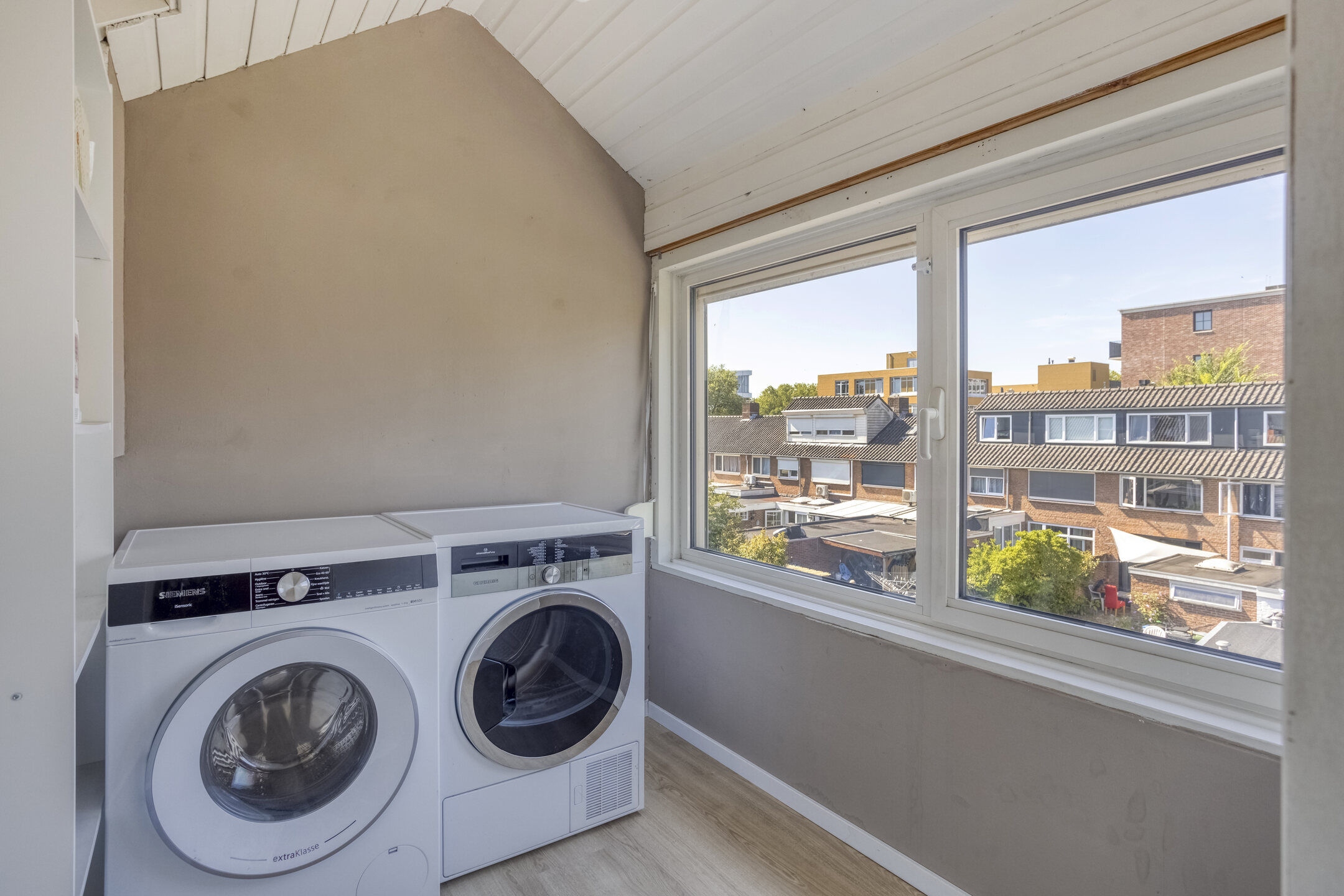 Overloop met Wasmachine aansluitingen, bergruimte en toegang naar de 4e slaapkamer.