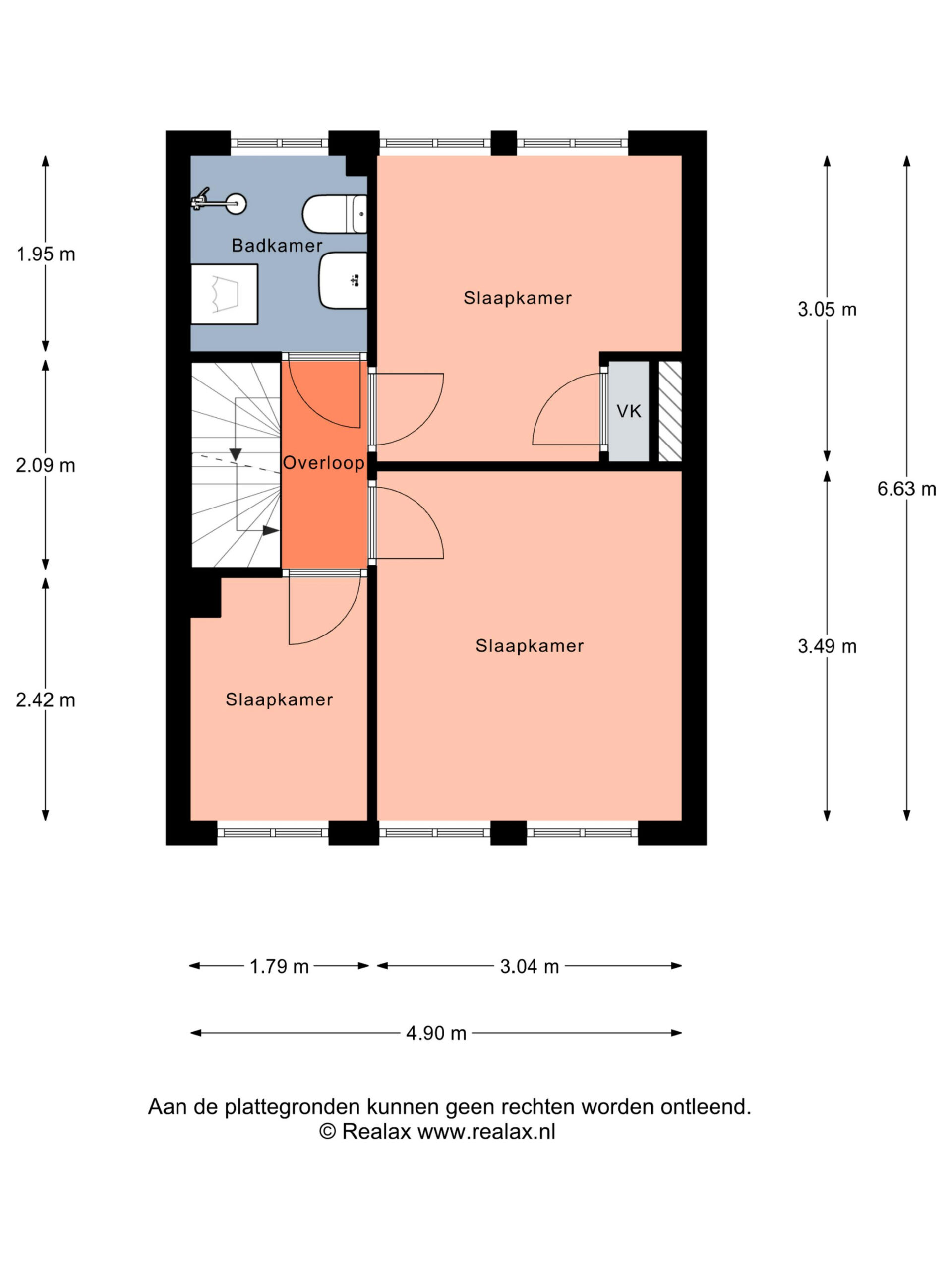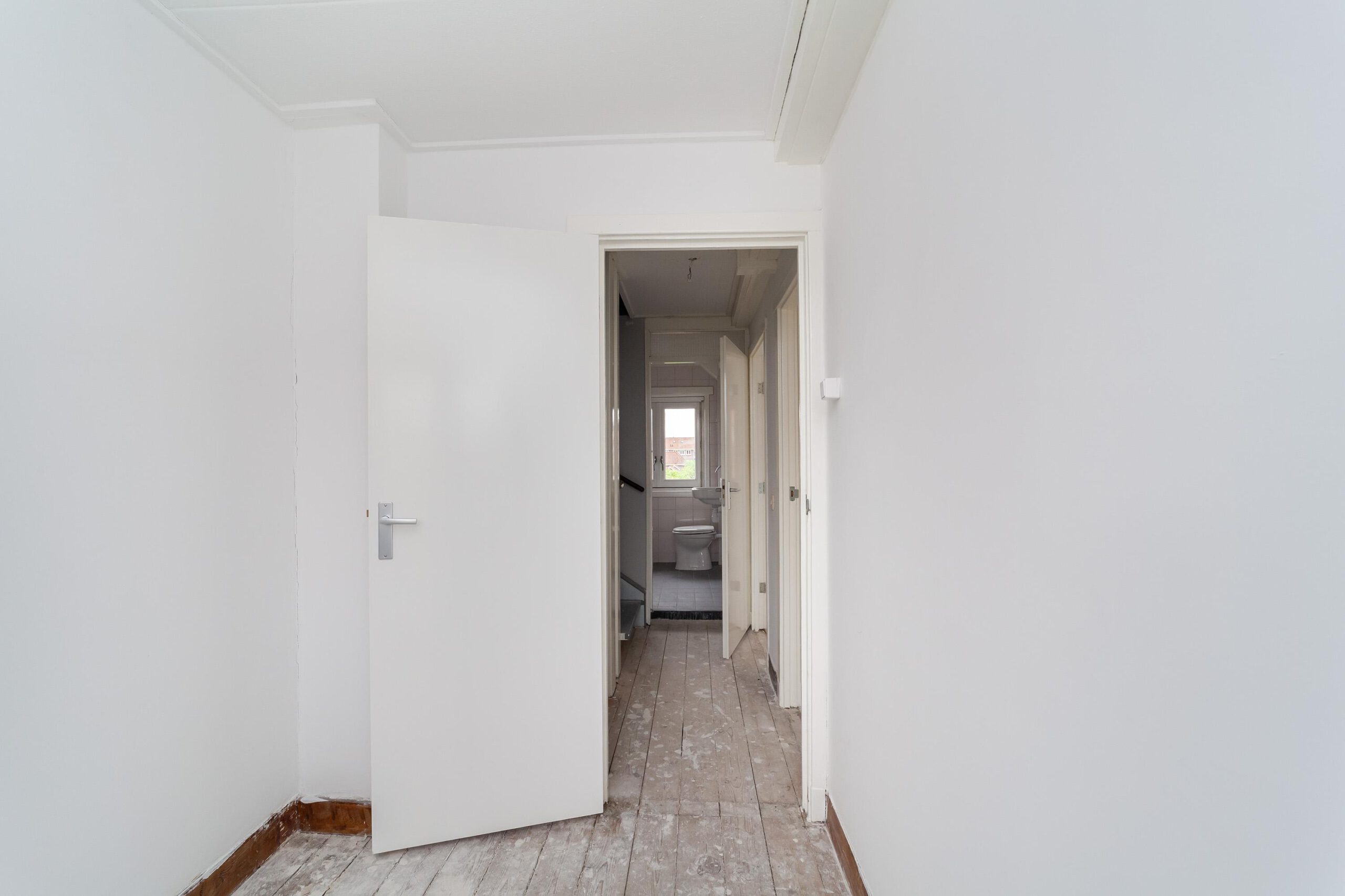 Overloop, 3 slaapkamers (twee aan de voorzijde en één aan de achterzijde met inbouwkast).