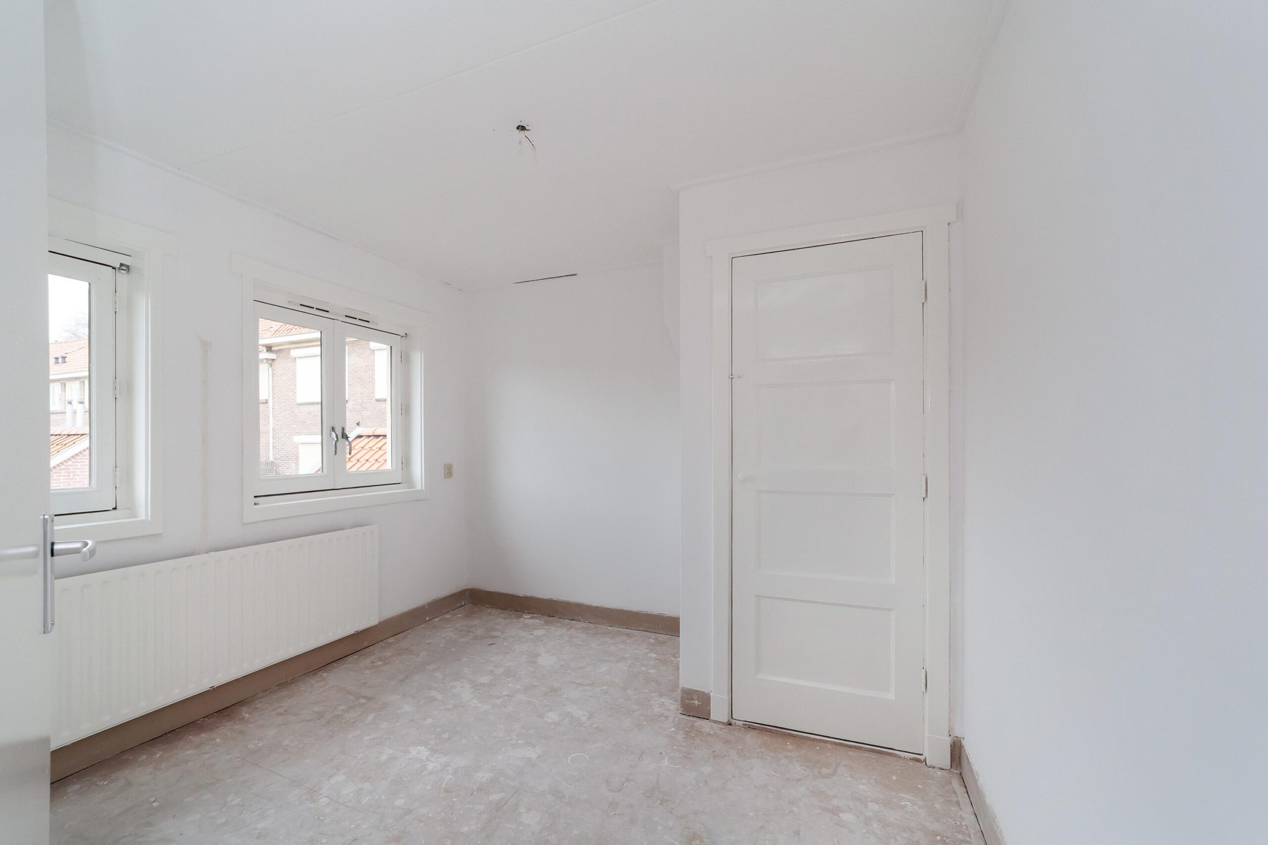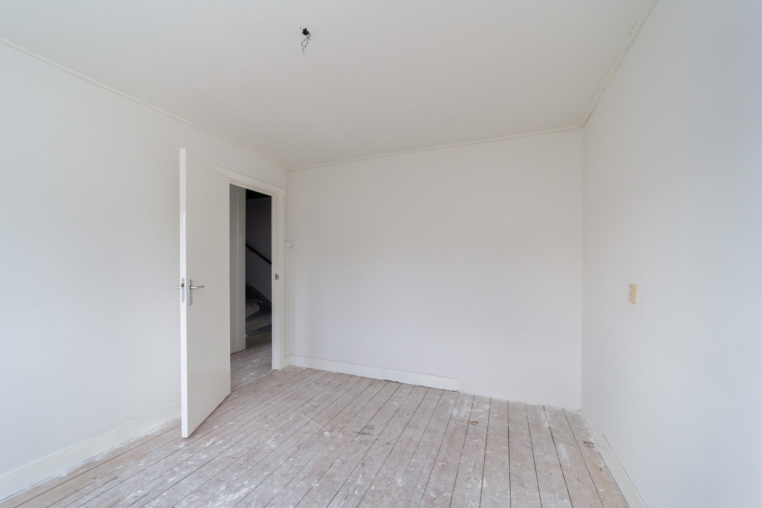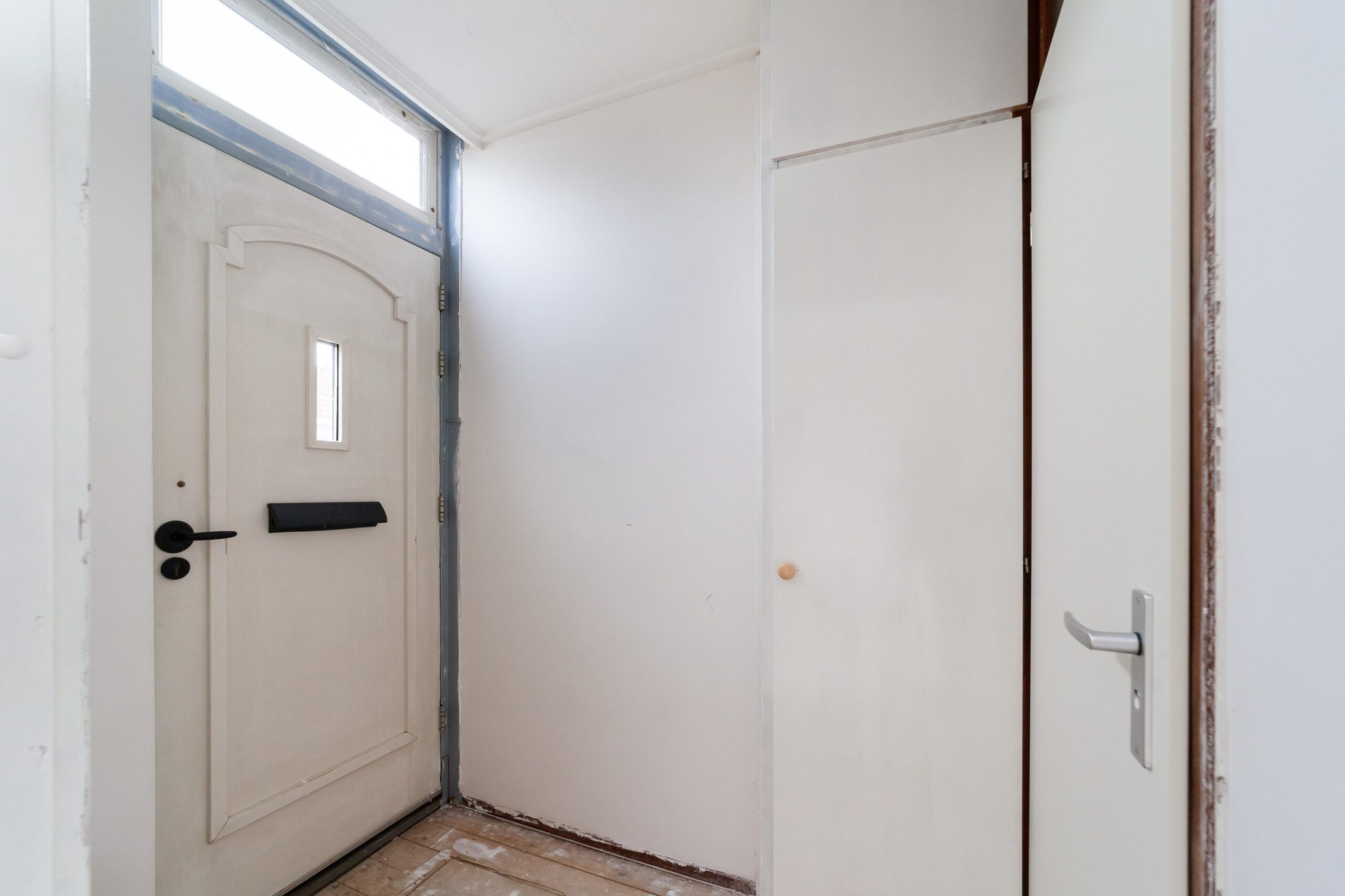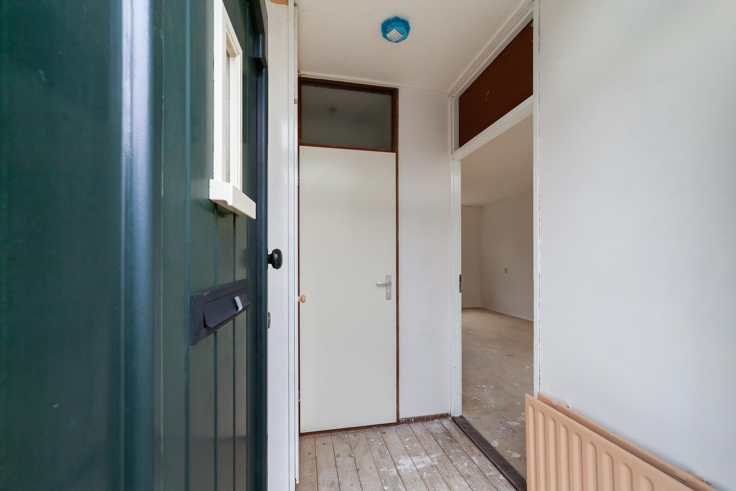Entree, hal met trapopgang, toegang tot de lichte woonkamer met ramen aan zowel de voor- als achterzijde, wat zorgt voor een prettige lichtinval. Aan de achterzijde van de woning bevindt zich de keuken, uitgevoerd zonder apparatuur.