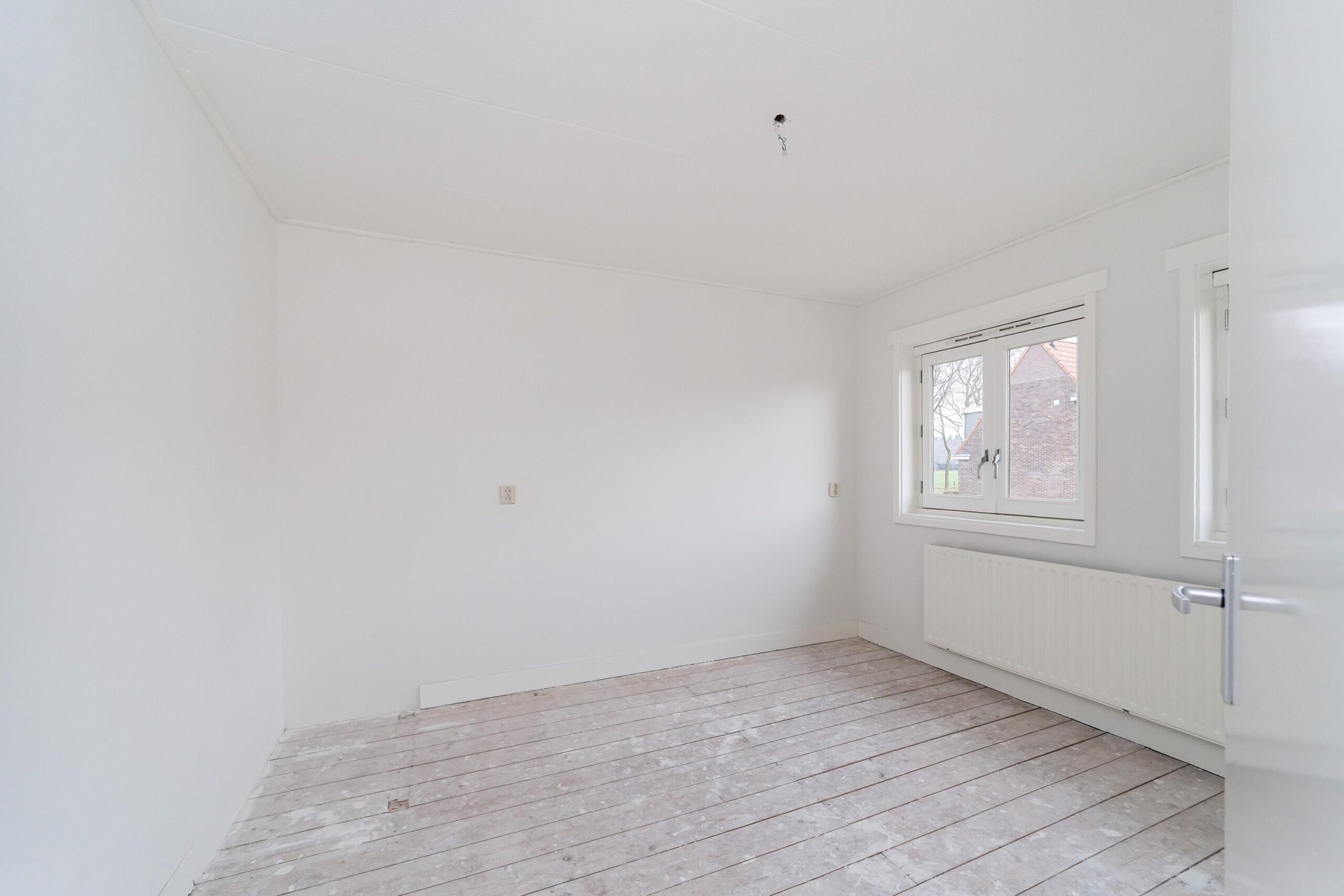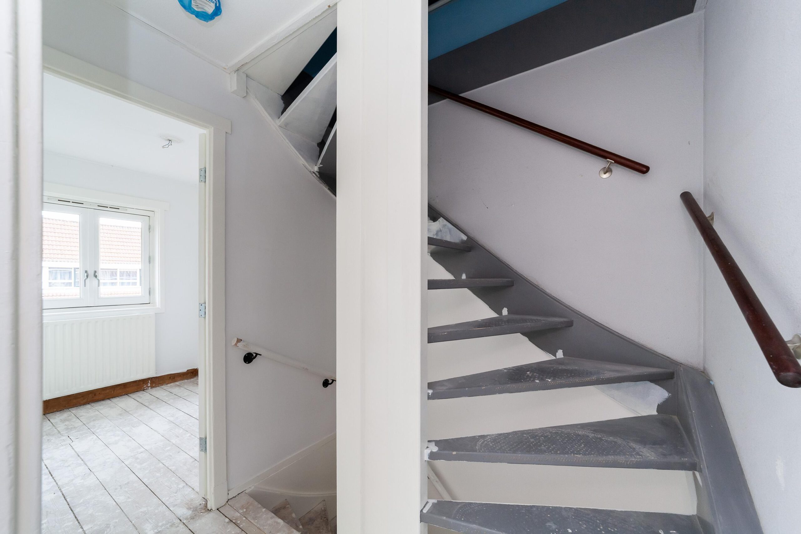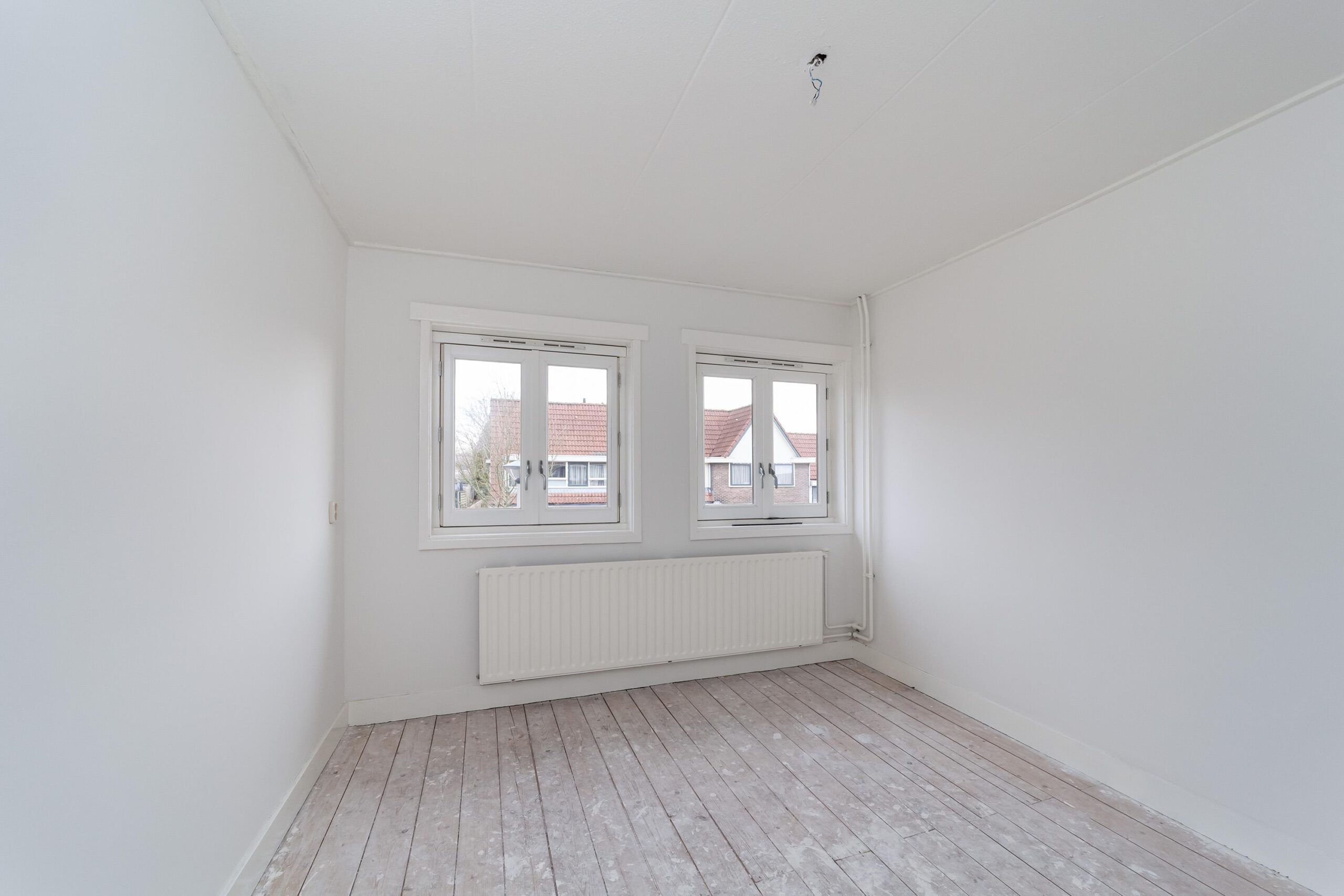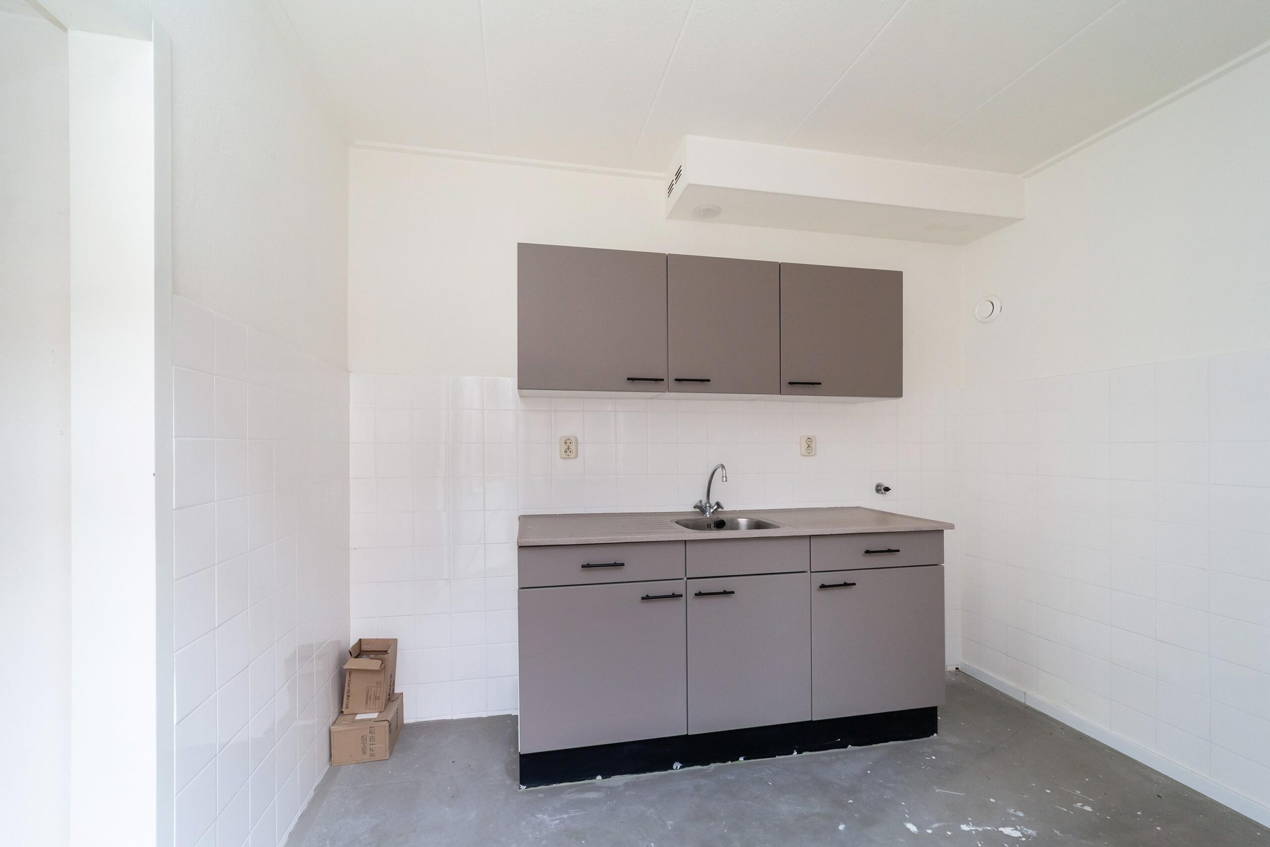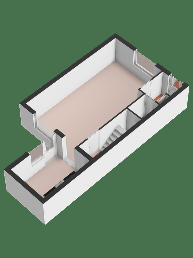 Entree, hal met trapopgang, toegang tot de lichte woonkamer met ramen aan zowel de voor- als achterzijde, wat zorgt voor een prettige lichtinval. Aan de achterzijde van de woning bevindt zich de keuken, uitgevoerd zonder apparatuur.