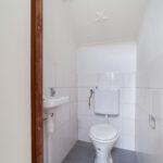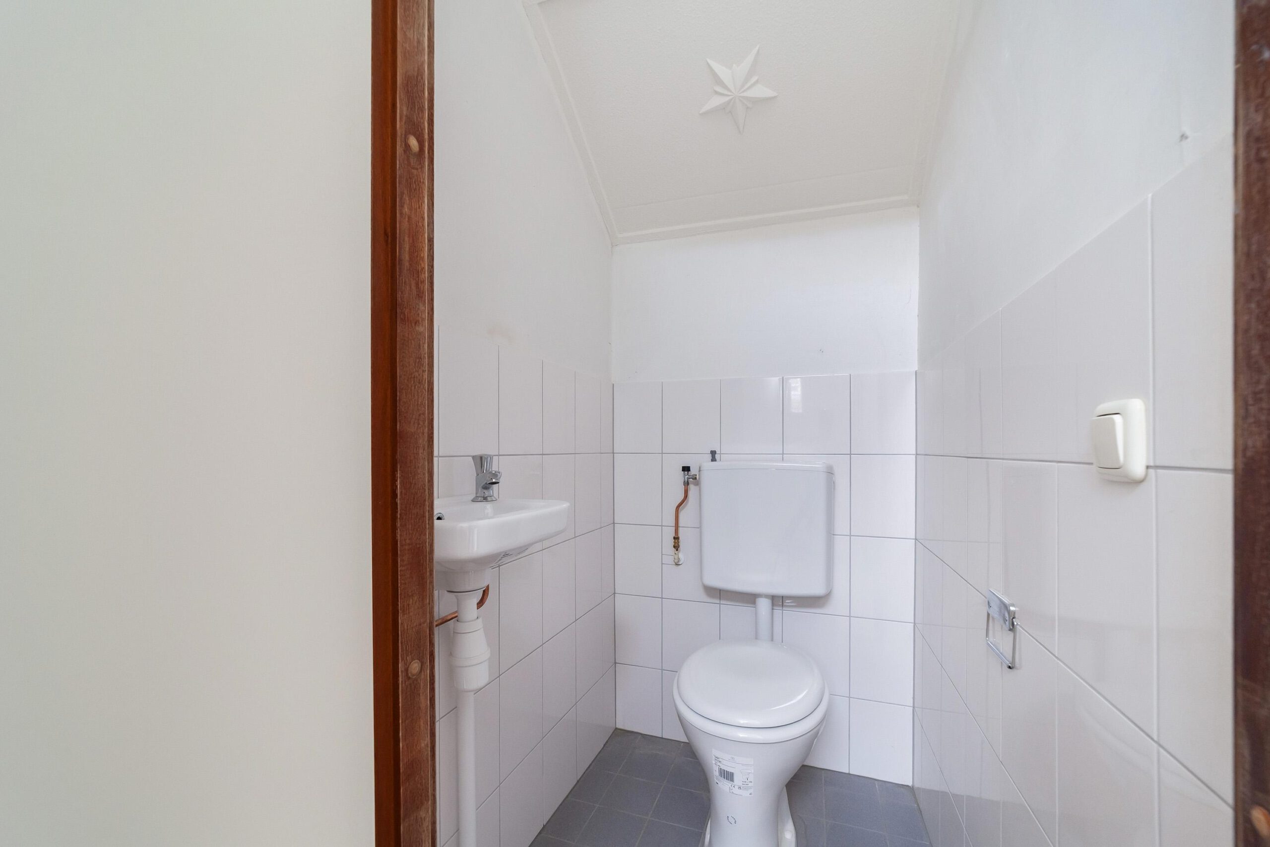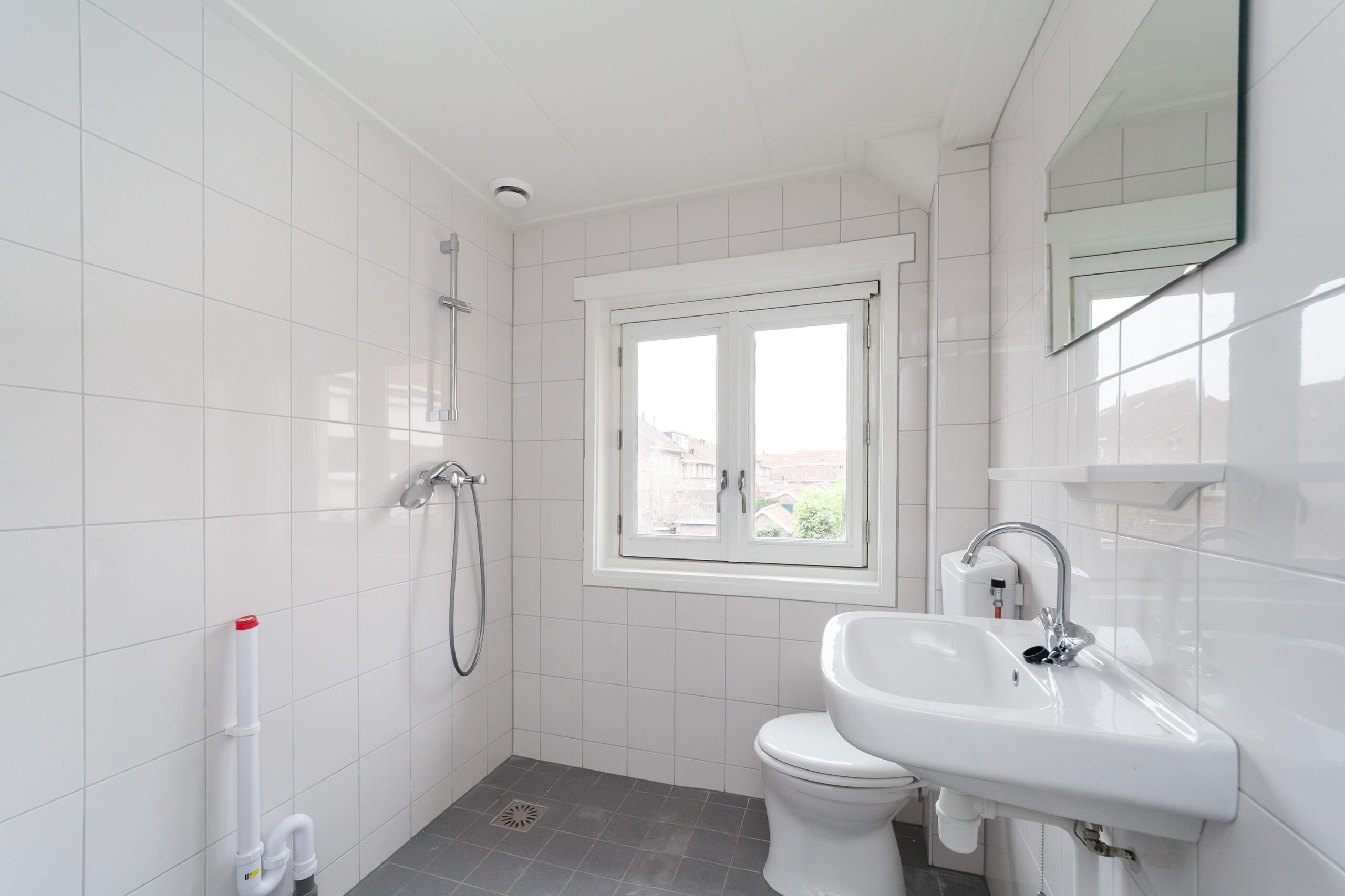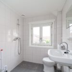 De badkamer is voorzien van een douche, wastafel, tweede toilet, raam en aansluiting voor de wasmachine.