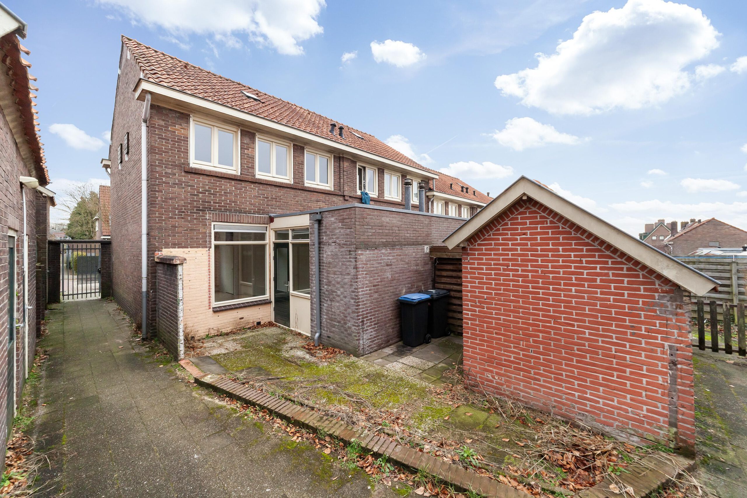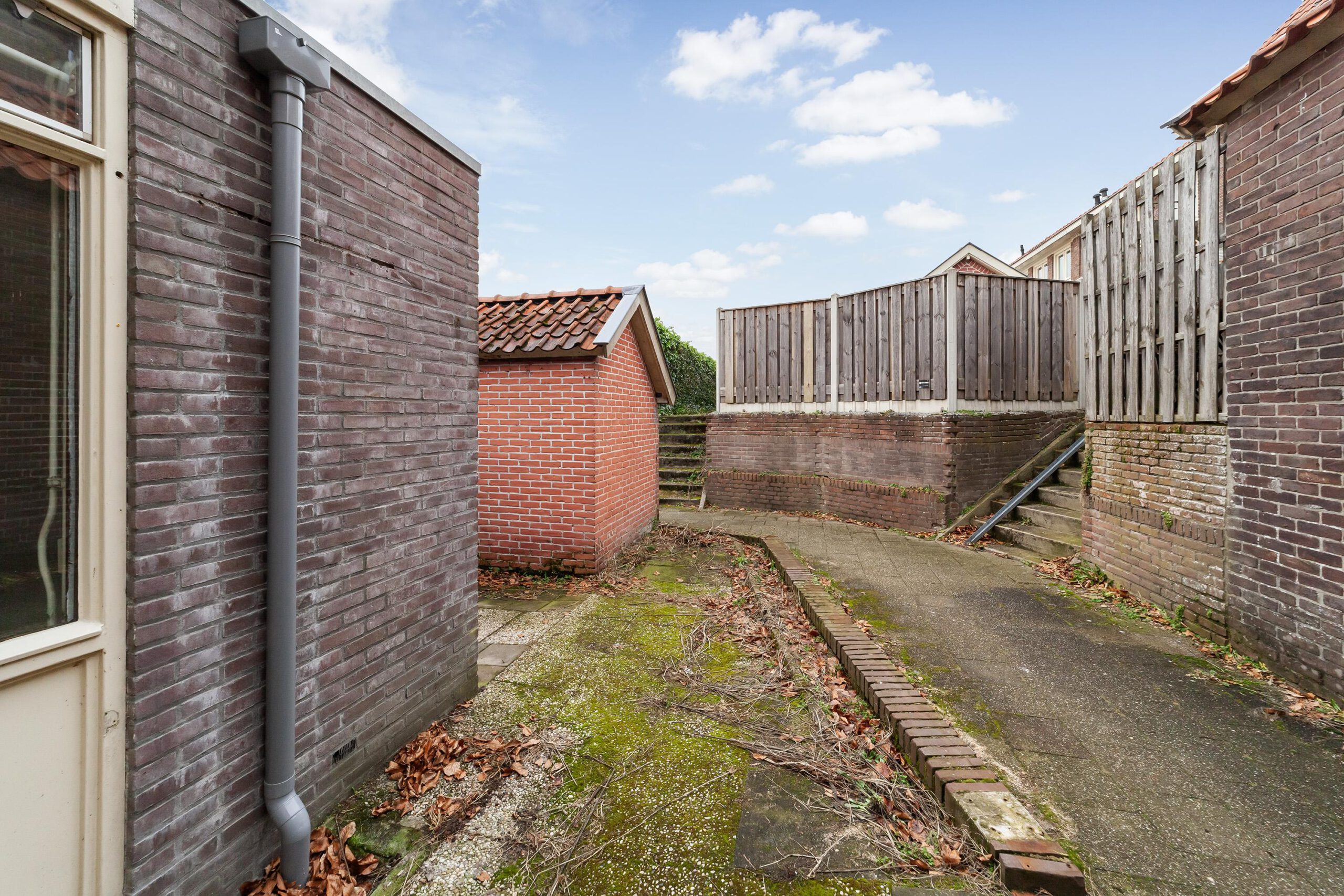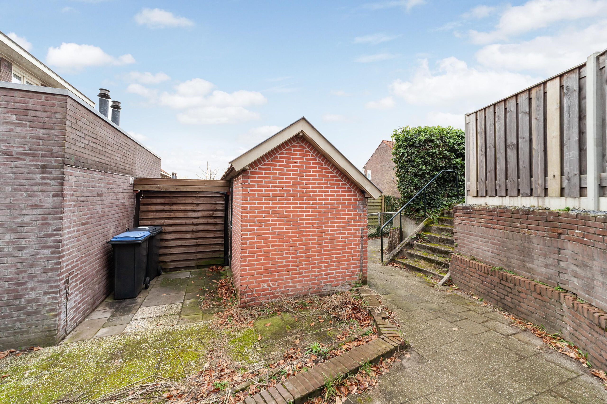 De tuin is via de tuin en achterom bereikbaar. Hier bevindt zich de stenen berging.