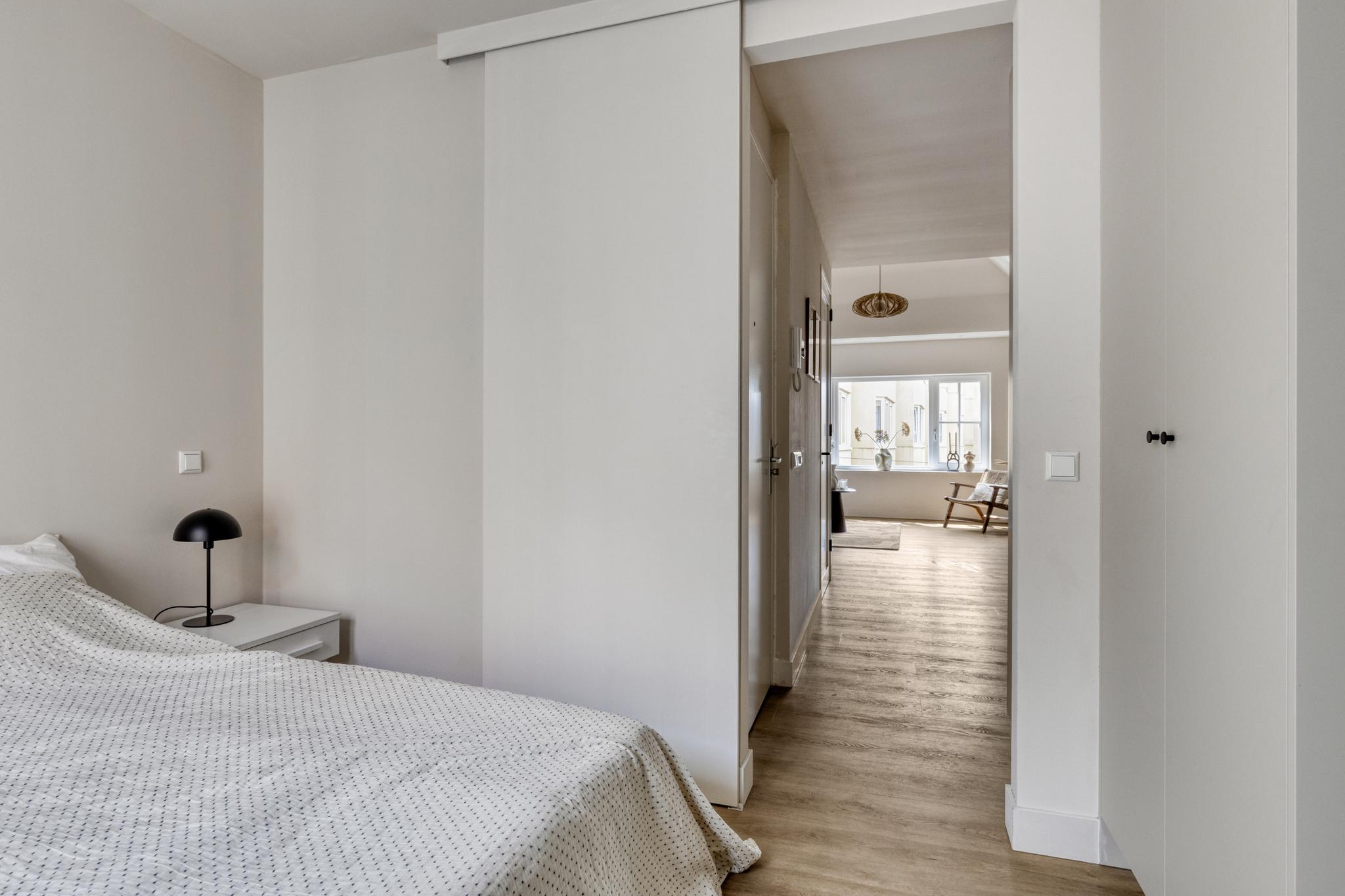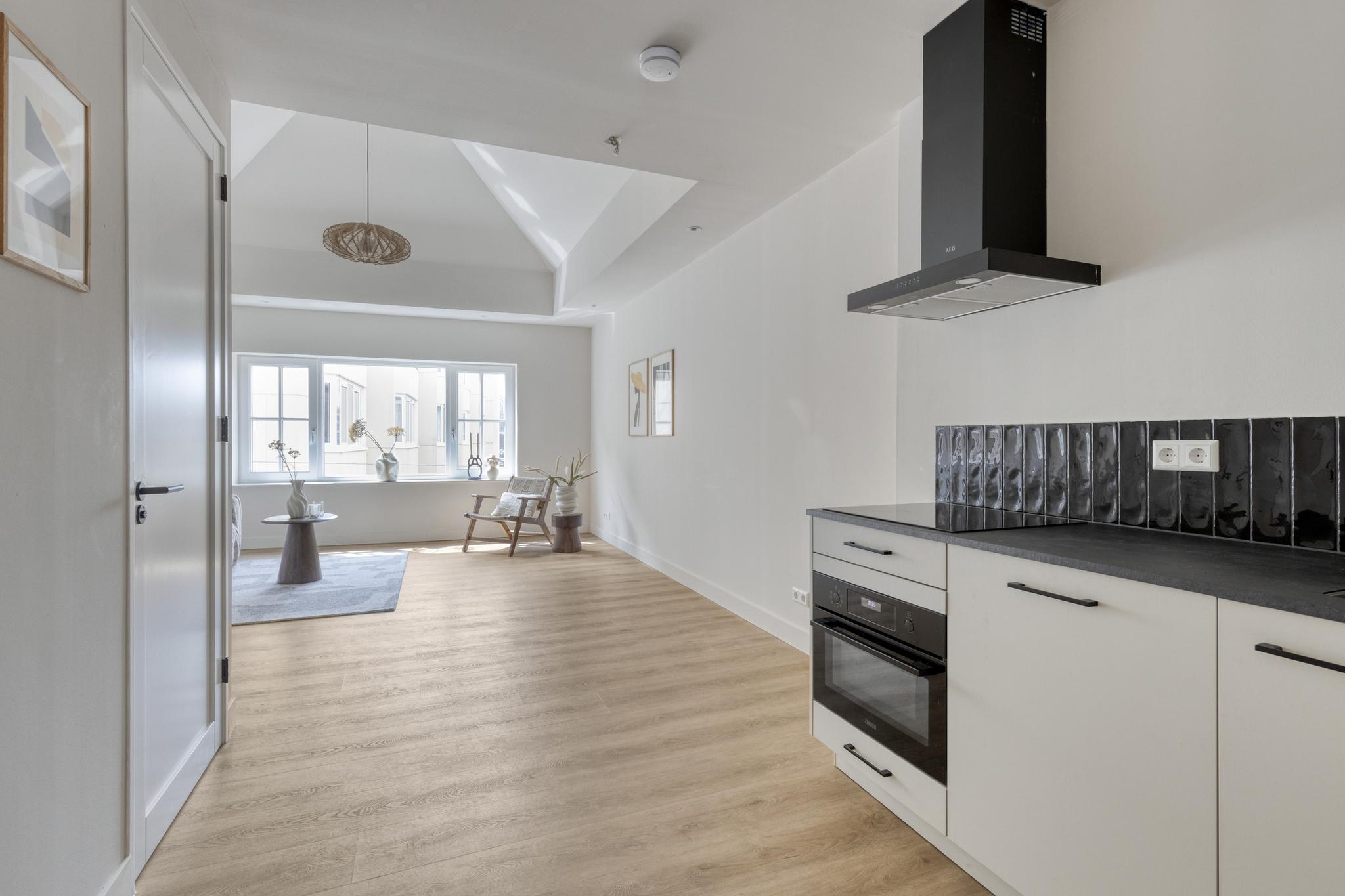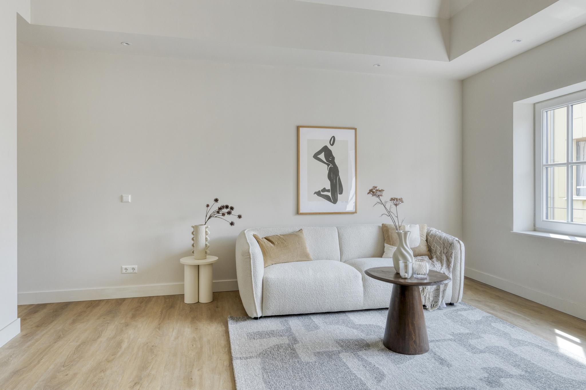 Tweede verdieping: Overloop, toilet en toegang tot de prachtige woonkamer met veel licht, prachtig hoog plafond en uitzicht op de mooie winkelstraat. Luxe open keuken in zandkleur uitgevoerd, met stijlvol antraciet keukenblad, en moderne inbouwapparatuur waaronder een inductiekookplaat, inbouwoven, afzuigkap en een inbouw koel-/vriescombinatie. Via de keuken kom je in de fijne slaapkamer aan de achterzijde gelegen voorzien van inbouw garderobe kasten. De slaapkamer is uitgerust met een badkamer en suite, volledig nieuw en voorzien van wasmachine aansluiting. De slaapkamer geeft toegang op het heerlijke balkon waar je kan genieten van de ochtendzon.