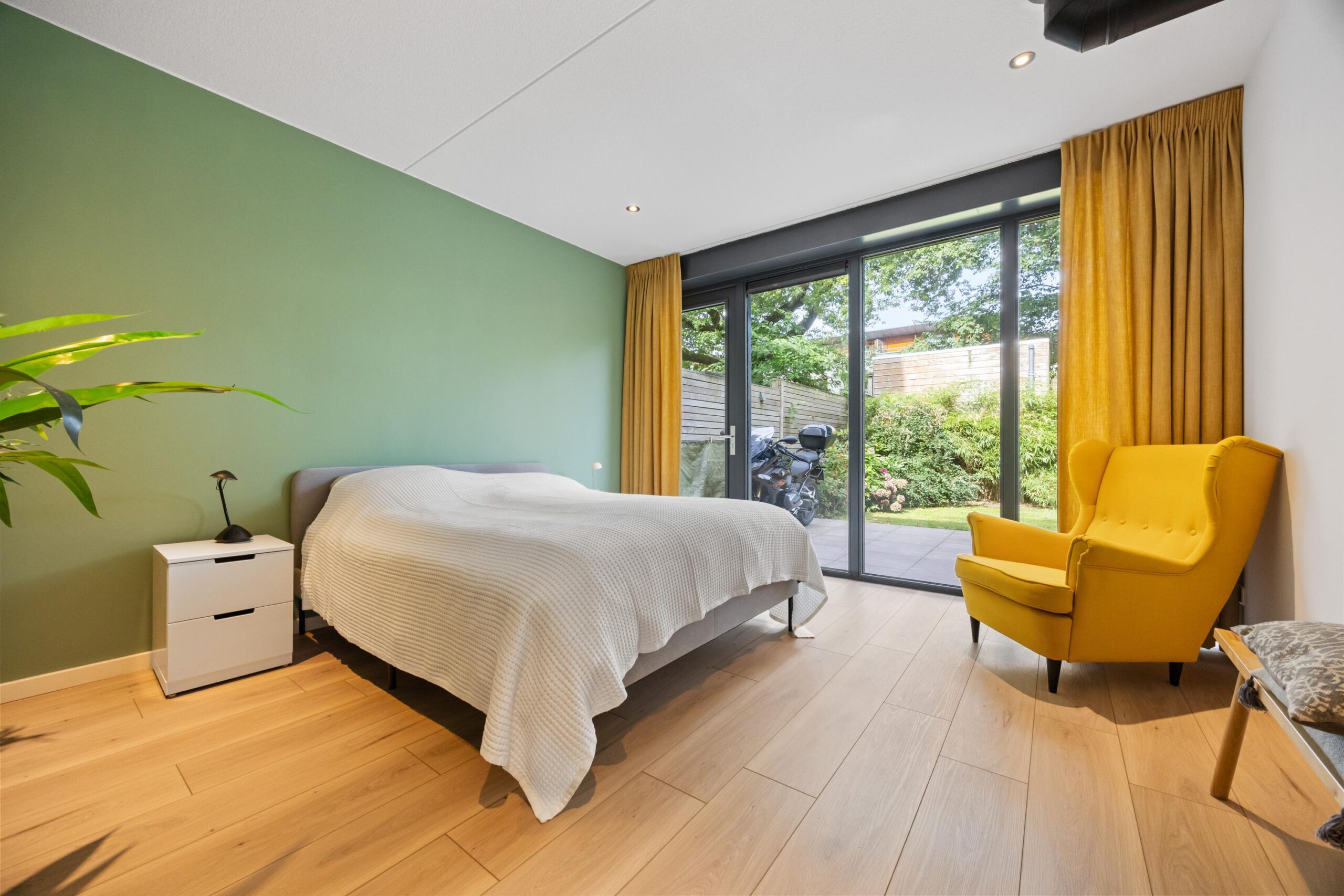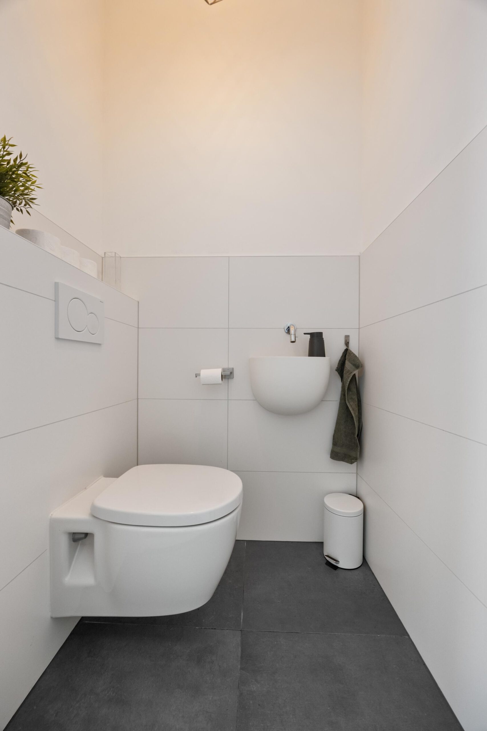 Tevens is er een toilet, berging met wasmachine aansluiting, slaapkamer met inloopkast en een ruime badkamer aanwezig. De zeer moderne badkamer beschikt over een vrijstaande bad, ruime wastafel, een inloopdouche en een solartube. De tuin is met zorg en aandacht aangelegd en aantrekkelijk in alle 4 seizoenen, deze zorgt voor een oase van rust en doet recht aan de kwaliteit van de woning. De achtertuin is gelegen op het westen, met groen, gazon, terras en vrijstaande houten